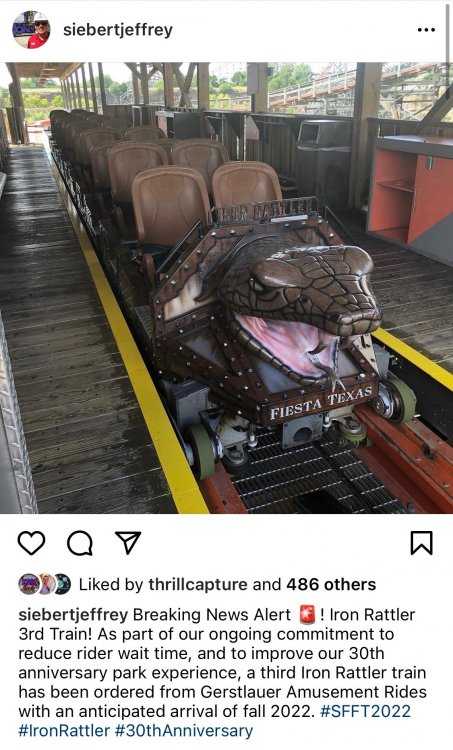 Jeffrey Siebert posted on Instagram that the park has purchased a third train for Iron Rattler. I presume this is for maintenance reasons, so two trains can operate year round. Knott's made a similar move in 2017-2018 when they purchased a third train for Silver Bullet even though it can only run two. Great move! Also, this means Six Flags made a purchase from Gerstlauer. Never say never...