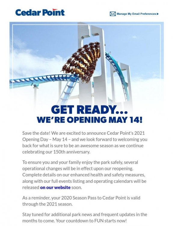 Hopefully the park will be able to remain open from May all through the end of the year. That's still a decently long season.
