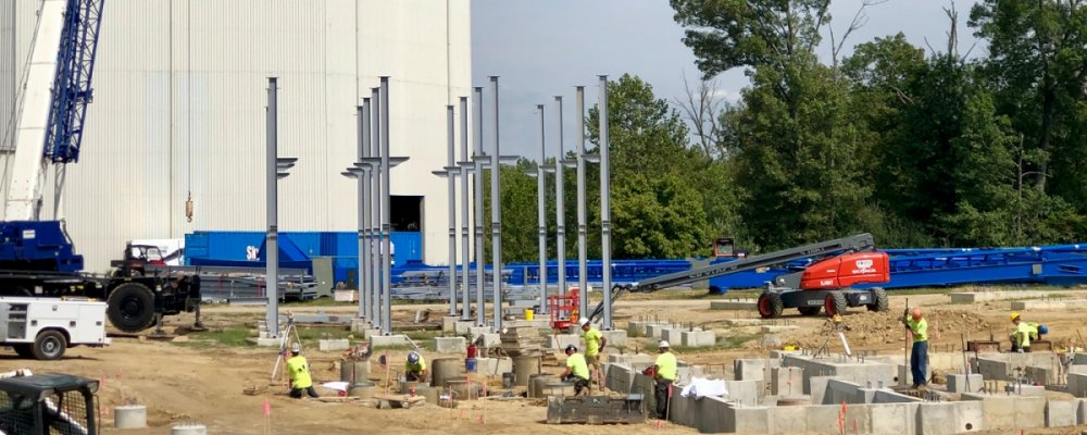 Vertical construction has started with the transfer/maintenance platform. Photo posted on the KI Blog two days ago. I'm sure some more work has been completed since then. Might I also add that I LOVE the color blue for this coaster. It's going to look fantastic in the skyline. -