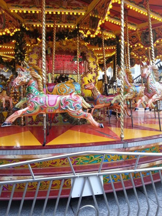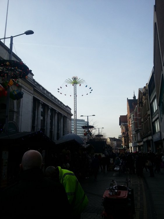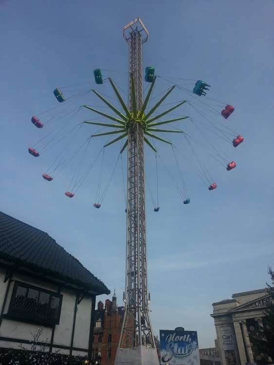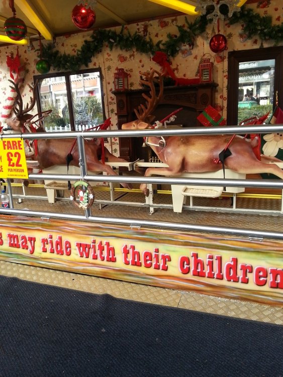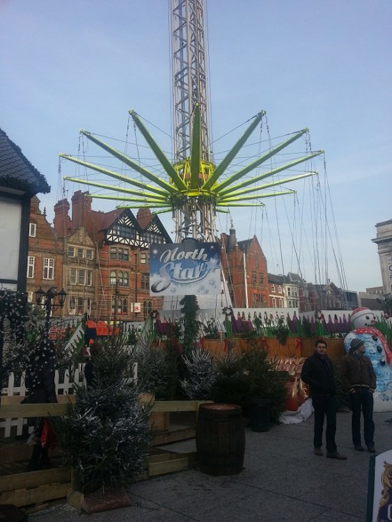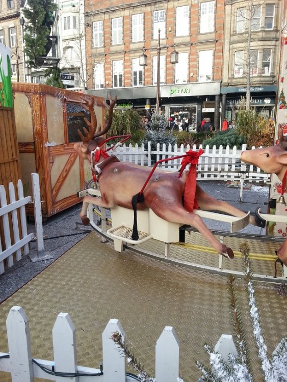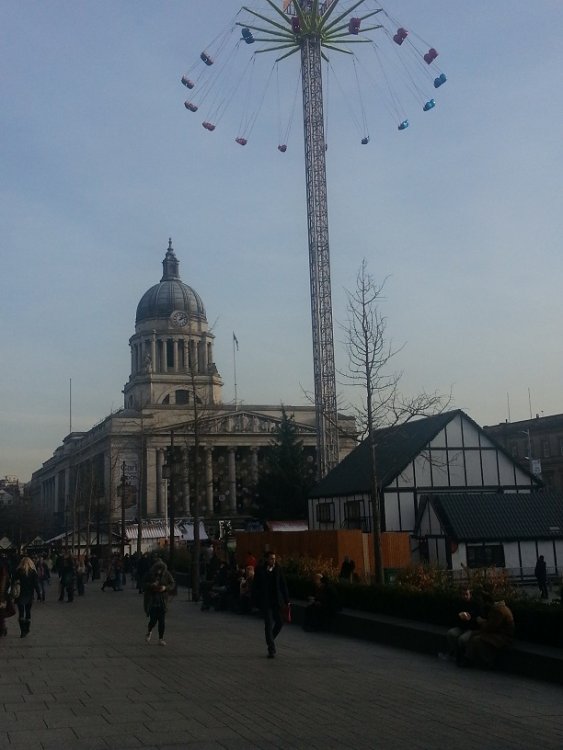 Well, you know Christmas is coming when the downtown decorations are up, the smells from the market stalls catch your senses, and Paul McCartney's 'Wonderful Christmas time' is playing and echoing around the street. I thought I'd share a few photos with you all, that not only made me chuckle, but made me wish I was a kid again! A beautifully cold day in Nottingham, hundreds of people lining the streets doing their shopping, and an exceptionally small but surprising fairground in the middle of the town square just popped out of nowhere as I turned the streets - and I couldn't resist walking through. To my surprise, there was a quite tall, and fast, Star Flyer. Bearing in mind it's around 0 degrees (celcius), I thought I'd give this freeze machine a miss for today. But the beautiful merry go-round was worth a go, and provided a few laughs for me and my family. Many stalls of different foods and nik-naks filled the street, and I even got to taste an ostrich burger (which was delicious I might add). The Cadbury hot chocolate stand was popular, with the option of having a 'flake' coming out of the top. How could I resist a flake? The Reindeer Steeplechase (see what I did there?) was amusing to say the least. Could you imagine Blackpool replacing the horses with Reindeer for Christmas? Mwaha... and as for the Friar Tuck themed bar, well, that was the perfect end to a nice wander around this Christmas Wonderland. I hope you enjoy the photos that I managed to take, apologies for the lack of quality. 'A Christmas Wonderland'. With a classic carousel to start off with. I couldn't resist. So the tune that was being played from the merry go-round was a sort of polyphonic carousel-like version of 'Circle of life'. Always got time for a ride or two. Town hall with Xmas decorations. Looks nice indeed. The tree is up! But the lights haven't officially been turned on yet! The Star Flyer from a distance. Do you think this ride is compensating for something? It looked bloody freezing up there! I wouldn't want to get stuck on this. Bearing in mind how many are stalling lately, I wouldn't be surprised if it happened. Human icicles anyone? Looks quite majestic with town hall in the background. REINDEER STEEPLECHASE CREDIT. *giggity* I can't name all of the Reindeer. There's Rudolph, and erm, Dancer, Prancer and erm... Dave? Santa may need these back pretty soon. Giant snow globe alert! Result! Petty my phone died before I could take any pictures from inside. Had myself a lovely Newcastle Brown Ale and a mince pie. Hearty hearty food. Jolly jolly and all that. I hope you enjoyed the few photos I took!