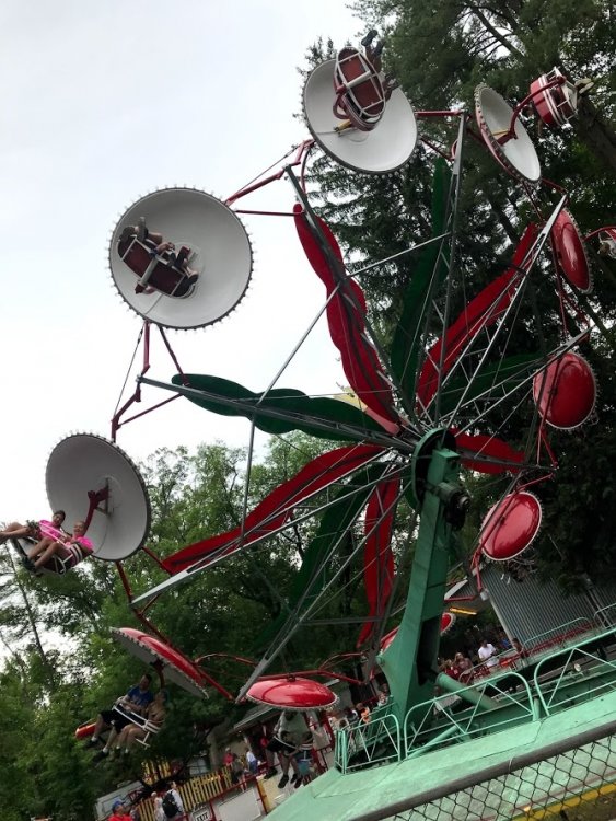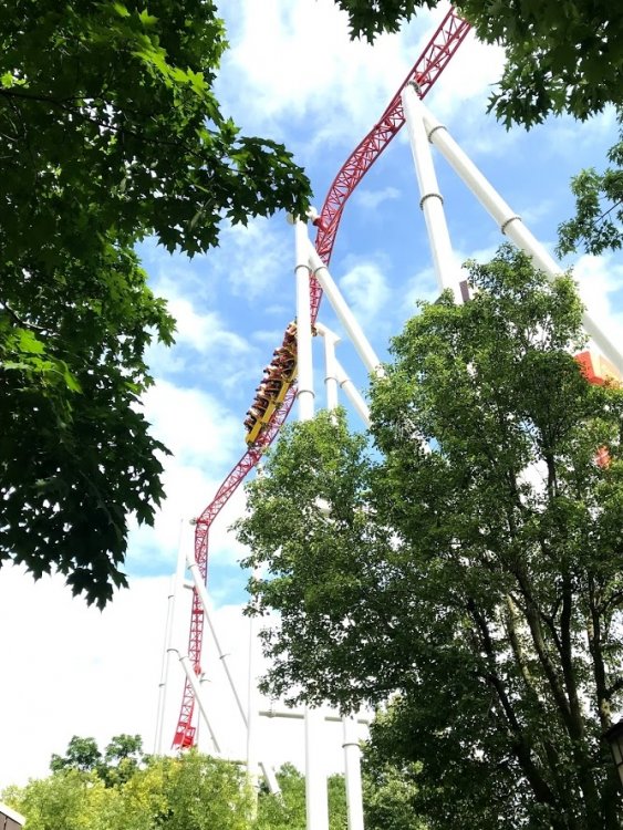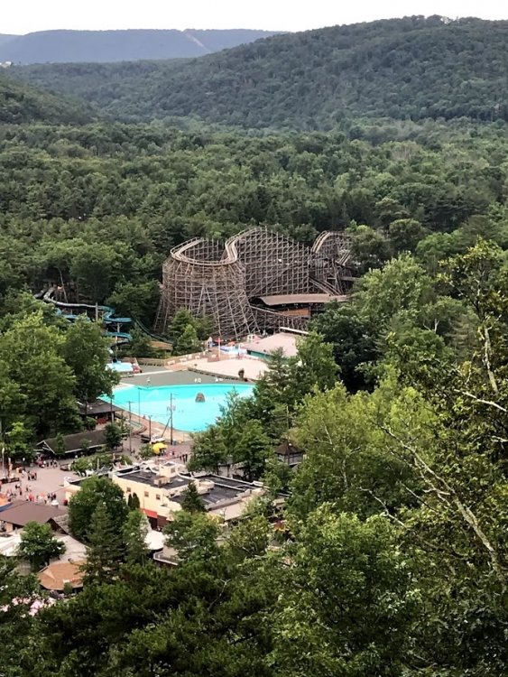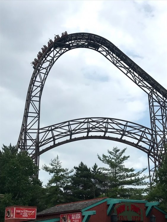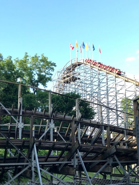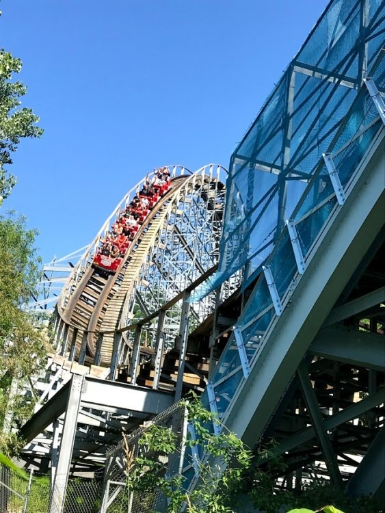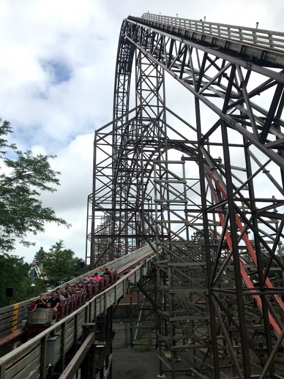 Day 5 – Waldameer Park The 4-hour drive from Danville to Erie had me racing against the clock to beat an incoming storm. So I did just what you’d expect a California driver to do around all the Pennsylvania slow pokes and matched the speed of traffic while getting lost in my thoughts listening to the Joe Rogan Experience. This meant I walked through the entrance at Waldameer at the exact time the rain started POURING. But this time I was prepared with a waterproof jacket and my feet were already taped up and practically mummified in gauze, so I avoided a repeat of my Kings Dominion experience. That “Good Eating Outside Theme Parks” thread actually came in handy big time as I simply got back in the car and made the drive down the hill under Ravine Flyer to Sarah’s where I dined on chili dogs and chicken strips surrounded by about three or four kids’ soccer teams. And the food was great! I figured I’d probably be there for a while, but almost as soon as I had eaten, the sky opened back up and I saw a train soar over RFII’s bridge, so back I went. I also went across the street to Shickalay’s for some IPAs later on. I think Philrad or somebody mentioned that one. Good advice! It doesn't look like it from these pics, but we had major rain here early in the day. Waldameer is like a smaller Knoebels in some ways. Similar in scope and as far away from “corporate” as you can get, but it lacks the remoteness, ambience, good food, and quantity of attractions. You know, that’s really not a flattering description at all and it sells the park short. I had a great time when I went last in 2014 and made Ravine Flyer my 199th coaster, and I did again this year just the same. There's a few worthwhile non-coaster attractions like the ARM-Larson drop tower, a Music Express, and the skyride, plus a few others I didn't do this time. It’s still no Knoebels, but what they do have is an incredible Gravity Group that was easily the best wooden coaster on the trip (I had to get in just one more jab at Phoenix )! Ravine Flyer II If this woodie were anywhere else, there’s a pretty good chance it would run like crap. This layout asks those clunky PTC trains to do things they just shouldn’t be able to. It’s much like Voyage in this regard, only half as long. The park apparently still takes great care of it because it runs like a dream. You start out with one of the all-time great lifthill views and from there on its either long, sustained airtime moments or sudden directional changes all the way. One of my favorite parts actually comes right after the first camelback in the form of a sharp left-right transition that pretends its airtime. You get another great lake view on the crest of the far turnaround, then three more hills with strong floater air before climbing back up out of the ravine. It’s here where I find my biggest criticism. RFII is a very front-loaded coaster. The first half is as good as you’ll find on anything, but the second half ranges from “still pretty good” in the front car to almost kind of “ho-hum” in the back. It spends much of the second half making banked turns over flat land on the main park level, and only dives into the ravine once more, but without any airtime. Instead, you plunge down after a 90-degree banked turn. I see why this element seemed very cool when it was built in 2008. Wooden coasters in general just weren’t doing all the crazy banking stuff yet. But now it’s just kind of there. Others may disagree, but if Waldameer ever decides to reprofile any parts of this, that turn is what I’d zero-in on. Tweak it to rise up a little higher and bank it slightly less with a sharp pull-over to give one more pop of air on the way down before the ride ends. Or we could just forget all that because Ravine Flyer II is still a top 5 U.S. wooden coaster. 9/10 Steel Dragon I don’t know what it is about these Maurer spinners people like, because every time I ride one, I don’t spin a lick. I totally forgot to write about Laff Trakk at Hersheypark and it was the same story there. And on Undertow at SCBB. Be it by myself or in a full, evenly balanced car, I might as well be on a wild mouse given the type of ride experience I always get. And I find this true for all Maurer spinners, not just these SC2000 clones. It took me 3 or 4 rides just to get friggin’ Winjas to spin better than an empty playground carousel in a light breeze. Whatever, I already had the credit so one lap just to remind myself was enough. 4/10 Comet Don’t let the seemingly paltry rating dissuade you, this right here is the king, the granddaddy, the apex predator of kiddie wooden coasters. I don’t know if it’s the “biggest” one at all, I just know that it has these weird, fun little airtime pops with buzz bars and it all takes place under a nice canopy of trees. It’s actually a lot of fun and worth re-riding to try out different seats. This isn’t your average Woodstock Express. 5.5/10 -