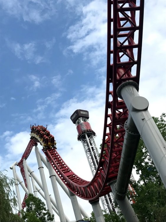 Look at the rider in the back-right seat. It shows just how open and exposed you are on Skyrush, just one of its many outstanding qualities. Days 2-3 – Hersheypark In Part 1 I said that I thought Kings Dominion had a top 5 U.S. coaster collection. I don’t know exactly where I’d place KD's, but I can confidently say that I think Hersheypark has the second best lineup with Cedar Point’s still at #1. They have three elite Intamins, an underrated and intense B&M, two well cared for classics in SooperDooperLooper and Comet, and a pair of GCIs (fine, three), at least one of which is still pretty good. I had been here once before during Skyrush’s opening season in 2012 when it instantly became my favorite coaster, but that day got cut short by an evening storm. Unwilling to risk that again and knowing how re-ridable the coasters here are, I decided on two full days, something that in the past I’ve only done at CP. The rain followed me up from KD the day before, so this proved a wise decision. On day 1 I rode everything except Laff Trakk, Wild Mouse, Trailblazer, and Sidewinder with no waits longer than 15 minutes, including an immensely satisfying 10 consecutive rides on Skyrush, all by 5pm before the rain hit. With another full day ahead, I took that as my cue to head to my hotel and then Uber over to Troegs, one of the best craft breweries I’ve ever been to and one that just happens to be minutes away from Hersheypark. I had heard about this place from other TRs, but I wasn’t prepared for how awesome it actually is. I enjoyed four of their beers and gladly would have closed the place down if I was willing to go back to the park hungover the next day like I once did at SFDK, but that wasn’t an experience worth repeating. Beer, food, atmosphere, and service at Troegs are first rate. I can’t recommend it enough. Here was my drink tally for the evening: Dreamweaver Wheat, Cultivator Helles Bock (my favorite), La Grave Golden Ale, and Crimson Pistil IPA. Not a below average beer in the lot. Now at Hersheypark, the service and operations were adequate. Not industry leading or anything, but comparable in most ways to a typical Cedar Fair park and a cut above the usual Six Flags. Their in-house food offerings aren’t great, but they have so many third party vendors in the park it doesn’t matter. Just stick to Chick-Fil-A, Moe’s, Nathan’s, or Chickie’s & Pete’s and you’re set. Fahrenheit I was a little underwhelmed by this in 2012. Sure it was fun and has a great layout, but I remember thinking it rode more like a tame B&M than an Intamin. Not the case in 2018! Sure it’s no Maverick, but this coaster pulls some solid g’s throughout and has serious airtime on the drop, exiting the Norwegian Loop, and on the bunny hop. I loved Fahrenheit this time and rode it more than all but Skyrush. I’m still surprised we haven’t seen more Intamins in the mold of this one. 9/10 Skyrush Still solidly my #1 coaster. I like them as overpowering as possible and I still haven’t found one that eclipses Skyrush in this regard. Plenty of people are turned off by the sheer violence of the airtime and transitions, but that’s what I love about it. It had been so long since I last rode it that the extra “airtime pump” halfway down the first drop alarmed me in a way I haven’t been in years. And if you can manage to keep the lapbar up just a little, there’s no greater coaster ecstasy than soaring over that first ejector camelback. Now I’ve heard all the complaints and they aren’t unwarranted. As another poster stated, enjoying Skyrush takes active participation. You cannot just sit back and enjoy the thing like Millennium Force or Expedition GeForce. You have to ride with a strategy, and boy do I have one for you! In the same vain as the “Mean Streak trick,” or the “Magnum trick,” I present to you the “Skyrush trick…” Now this trick is designed to help your thighs cope with the awkward lapbars and crushing airtime and it’s a little different from other tricks because it begins one year from the date you plan to visit. Here’s how it works: With your gym membership handy, start a 2x weekly routine of the following: (1) Incline leg press - 4 sets of 10 reps starting at 180lbs, but preferably as high as 360lbs by year’s end. (2) Leg extensions (this will really help your quads, but also jack up your knees if you aren’t careful) – 4 sets de-escalating from 20 reps, to 18, 15, and 12 reps of at least 60lbs, but preferably as high as 110 lbs by year’s end. (3) Step-ups - 3 sets per leg of 10 reps, holding a pair of 20-35lb dumbbells on a surface at least 24 inches high. (4) Leg curls – 4 sets of 10 reps starting at 70lbs, but preferably as high as 140lbs (this one won’t actually help you with Skyrush, but you don’t want your legs to look disproportionate). That’s all there is to it! You have now Skyrush-proofed your thighs! Okay, so that’s asking kind of a lot and maybe you don’t have the time. I get it. So here’s what you do instead: After the ride op checks your restraint and you’re headed up the lift hill, scoot forward about 2-3 inches in your seat so the lapbar comes down on your upper thighs instead of mid-thigh, then sit up straight just a little off the seatback and brace your hands on your knees in the turns (this will mitigate the vibration). Some of you might be thinking that doesn’t sound appealing either. I get that too. But as stated, getting the most out of Skyrush requires active participation. It’s like a game for me. I even took it one step further. I’d ride on the wing seats and then plant my inside foot on the floor beneath the middle seats on all of the pullouts to stop the lapbar from coming down further. Yep, that’s my Skyrush. 10/10 Storm Runner Even with minimal waits, they ran two trains using both sides of the dual loading station. So far so good, but the park also had this infuriating policy of chaining o