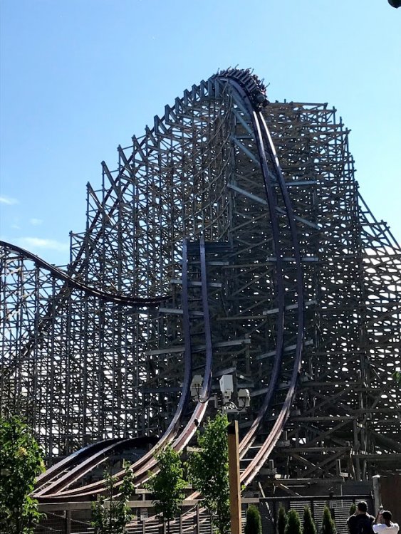 Day 4 – Knoebels A theme I keep returning to in this TR is comparing how particular coasters rode in 2018 to previous visits, and how many of them seemed substantially different from my memories of them. Other than Cedar Point, the repeat parks I hit on this trip are all ones I haven’t been to in 5-6 years. When you’ve ridden close to 200 more coasters and nearly doubled your total count in that time, it only makes sense that your standards and preferences will shift a bit. That shift can be an awesome thing when a coaster like Fahrenheit catapults 30-40 places up in your rankings, but it can also kind of suck when one that you thought was untouchable suddenly drops. That happened to me with one of the all-time sacred cows of the enthusiast community, Knoebels’ Phoenix… But I think I’ll leave that thread hanging for a moment while I talk about a bunch of other stuff that people will probably skip right over, like the International food court. You know a park has done something right with their F&B offerings when you stop thinking about rides altogether to instead ponder how to budget your time and money between various counter-service outlets that all serve like five different things you just have to try. “Yes, I think I’ll sit down and eat my San Francisco turkey melt from one station, then I’ll stand in line at another station and eat my burrito from a third station while I wait for that second station to finish frying my alligator nuggets… OMG I forgot about the pizza! Oh, right, it’s only 11:30 in the morning, I still have time to digest all this first, then go to Cesari’s later around 3:00, then maybe once more around 7… no, make that 6 so I’ll still have room for ice cream or a funnel cake at 8… Yeah, that’s doable.” And I’m rarely ever the kind to just pig-out at theme parks (unless it’s Epcot), but at Knoebels I can’t help myself. My first Knoebels trip was the second half of day on which I also visited Dorney Park. I was so wrapped up in Phoenix and Twister that I didn’t spend as much time as I should have riding all their other great attractions. I think the only non-coasters I rode back then were the Flyers and Black Diamond. This time I hit those two as well as Paratrooper, StratosFear, Haunted Mansion, Power Surge, and the chair lift. And they were all great. Flyers are still my favorite and I couldn’t believe how crazy the program they run on Paratrooper is! Never seen one run quite like this. Phoenix I was all about that Phoenix kool-aid in 2012. I vividly remember airtime on every hill after the first drop, the smell of the tunnel, my eyes watering during night rides, and strong laterals on the flat turns that took me by surprise. But this year it just wasn’t the same. So what happened? I don’t really know. Is Phoenix overhyped? Nah, too many respectable posters on here who visit way more often than I do still swear by it. Maybe it’s I who has changed and only the Skyrush's of the world can truly wow me. God I hope not. Or maybe I just happened to catch Phoenix on a less than optimal day. Even the best wooden coasters are still temperamental. Now I didn’t dislike it or anything, but the airtime felt muted and even at night on a slick track after some rain, the corners of my eyes stayed dry and I didn’t feel any real air until the “airtime buffet” return run. Phoenix is still a borderline top ten woodie based on this visit, but it definitely dropped a bit since I previously had it at #3. Hoping for a return to form next time! 8.5/10 Twister You might think a mildly disappointing experience (only by its lofty standards) on Phoenix would hang like cloud over my day at Knoebels. Maybe it would have… if I didn’t have the time of my life riding Twister! Now this is the kind of wild, intense wooden coaster experience I’m looking for! Legend at Holiday World is one of my favorite woodies for the way the lateral g’s it pulls threaten to shear your train clean off the rails and Twister is right up there with it. The park has clearly put a lot of effort into maintaining and improving this coaster. There’s a new steel support tower propping up the highest turn plus lots of bright new wood spliced in all over the track and now it runs like a dream (or as close to a dream as a turn-focused ride running heavy PTC trains can be). The track makes what almost feels like a flat s-curve at the bottom of the first drop and I swear that somehow it’s the smoothest part of the ride. There are a couple of jolts elsewhere in the layout but they’re all during a quick transition or moment of airtime. And speaking of airtime, the big second drop gave stronger air than I got at any point on Phoenix. As for the laterals, the trademark helix isn’t even the strongest element on the ride. After the helix winds around to the left, there’s a sudden directional change and a crushing uber-lateral right turn. Straight track with surprising burst of air follows, and then you dive to the right once more through a concrete tunnel that absolutely howls during night rides and is packed with even harder lats. Depending on the seat, you might even get one more good pop of air before hitting the brakes. By the end of the day I had ridden Phoenix 8 times and Twister 13. It also vaulted into my top ten woodies. 9/10 That bleached blond with dark roots look is so 2015 Ghostrider.... Flying Turns This thing was fully built, but not operating back in 2012. That was during a stretch of several years when Flying Turns had the distinction of being perhaps the greatest new-build SBNO coaster in the entire world! No need to rehash Knoebels’ efforts to finally get the ride open here, I’m just glad I finally got to ride it. It’s obviously meant to be a high-end family coaster and is far smaller than the outwardly similar, yet very different Intamin or Mack bobsled coasters. Since its capacity is so low, it had by far the longest line in the park and