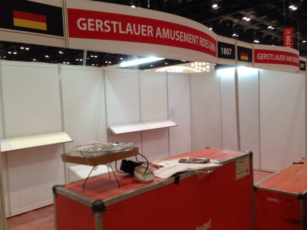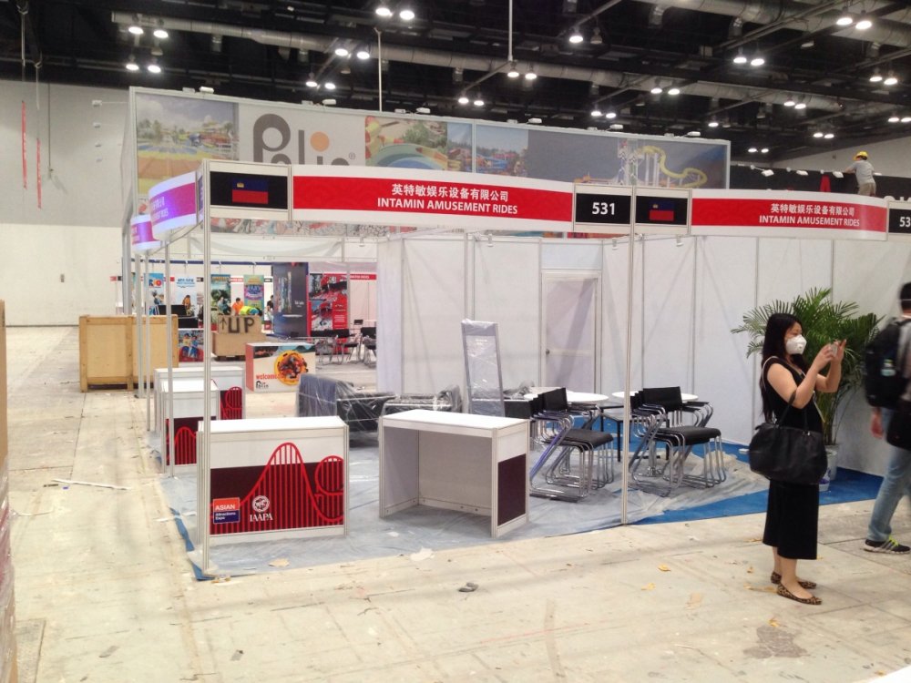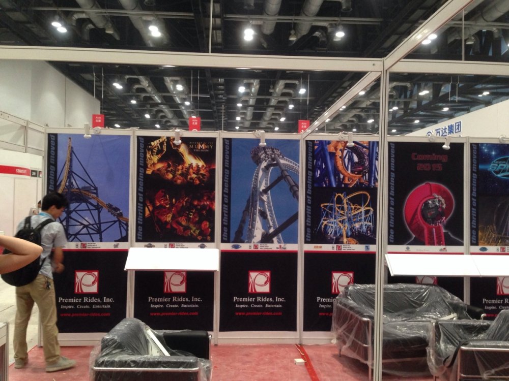 I will be at IAAPA Asia during the whole show time. Please feel free to post here if you have any questions to ask the manufacturers and I'll try my best to ask them. Of course, all these questions have to be "nice", things like "what happened to FoF's LIM", "why is Hades360 so unbearably rough, crappy and not friendly to insurance companies", "What will happen to Cudafall" and asking Gerstlauer"which do you think is better? Maurer or Mack" are not considered "nice". Most important Note: RMC IS NOT HERE, Vekoma is probably representing RMC but as for now, Vekoma's booth is still empty. Triotech has a huge booth that shows two ride systems and they are really friendly. Premier's booth is almost done, possibly the fastest among all the exhibitors. Chance Rides is here but the booth is still empty. Here are some photos I took this morning: B&M booth. Nothing snappy is happening anymore but seems like Banshee is doing great. Triotech's booth. PAX! More Wild Train and Formule 1 please! Premier booth! Mack's booth is almost done, they have a lot of German snacks at the back that will be provided to the guests. Hello Triotech, WMG is a great start and wish you guys have a bright future! Hello Premier Rides, you guys never disappoint! Love love love every ride I've ridden from Premier. They are working so hard! Triotech is getting ready for their IDR's first show after IAAPA Orlando's world premiere.