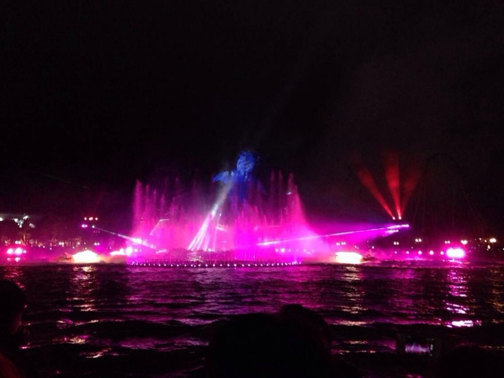 One of my classmates visited the park yesterday and it wasn't as packed as the day I visited. FOTR's line was around one hour with two train operation. The giant aquarium's wait time was around 40 minutes and she thinks it's somehow an uncomfortable ride. She thinks the theming of the park is very good and everything runs very smoothly for a new park. Good job, Chimelong! Photo posted with her permission. Nemo! This is their night time show. We were shooting the POV of FOTR so we missed it. Look how fantastic it is! -