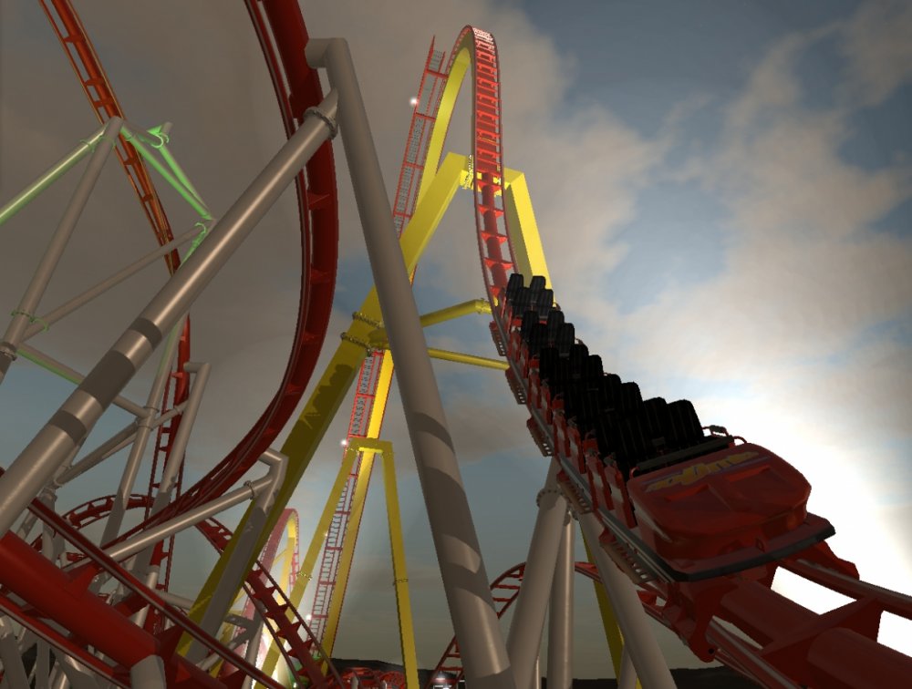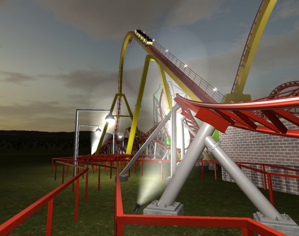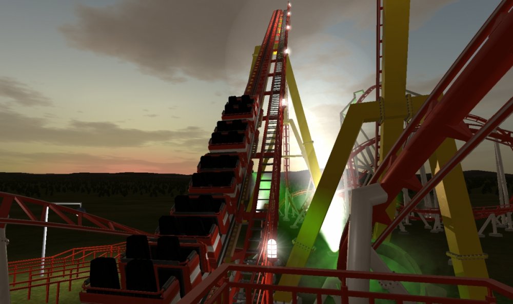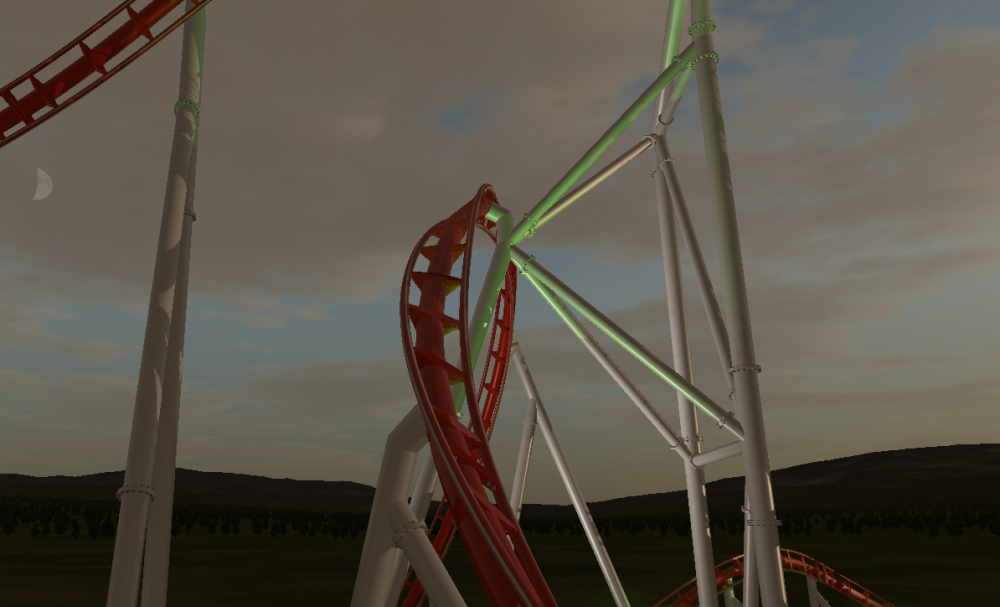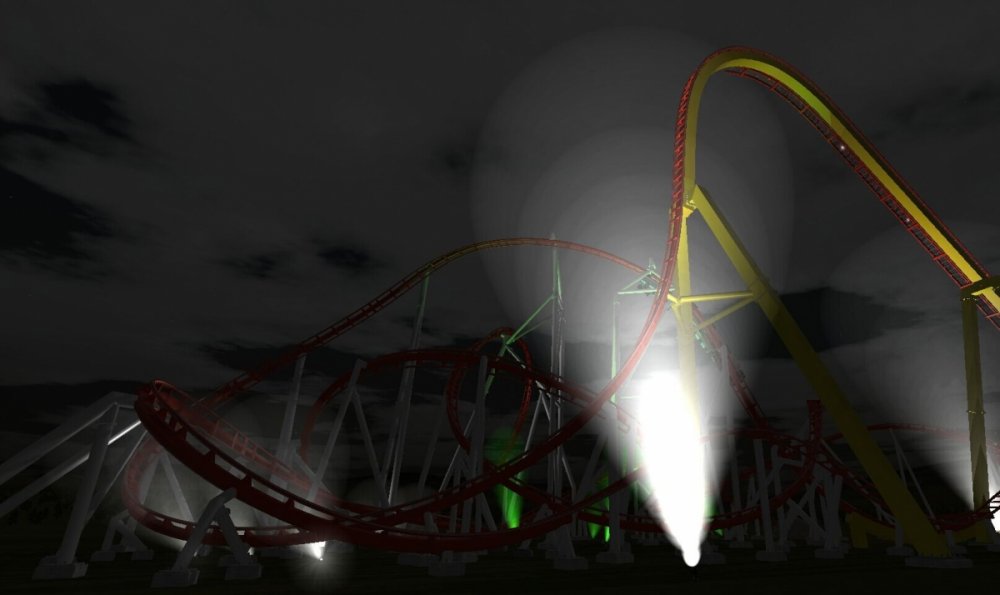 I've created a coaster system with my own track and train. On NL2, Schwarzkopf classic looper is the closest system that I can use to represent this system. Donnerbahn is kind of a mix between Mega-Lite and Infinity Coaster with a new element called Immelmann Floater Dive which gives you a combination of ejector airtime and crazy lateral. Hourly capacity can reach up to 1200pph with three train operation, station design is similar to that of Millennium Force so sufficient load and unload time is guaranteed. 12 airtime moments, 3 overbanked turns, 2 inversions, 2 trick tracks, an underground tunnel and 9 crazy twists are all packed into this compact structure and you won't get a second to catch your breath after the train pulls you down the 100ft tall, 87 degrees first drop at 53 mph. Length of the track is only 3039 ft so imagine how insane the ride is! As my first NL2 release since I joined NL2 this Janauary, this coaster was originally planned to release on March 31st. But after I started with this project, I realized March 16th will be Edmonton Mall Mindbender's 30th Birthday so I changed the teal and grey color scheme into Mindbender's red, yellow and white then made a few modifications here and there. I will post at least one photo everyday on this thread until the release date. The track will be available on both TPR Game Exchange and NLE, TPR release will be 5 hours earlier. Please tell me what you think about it! Your review means a lot to me.