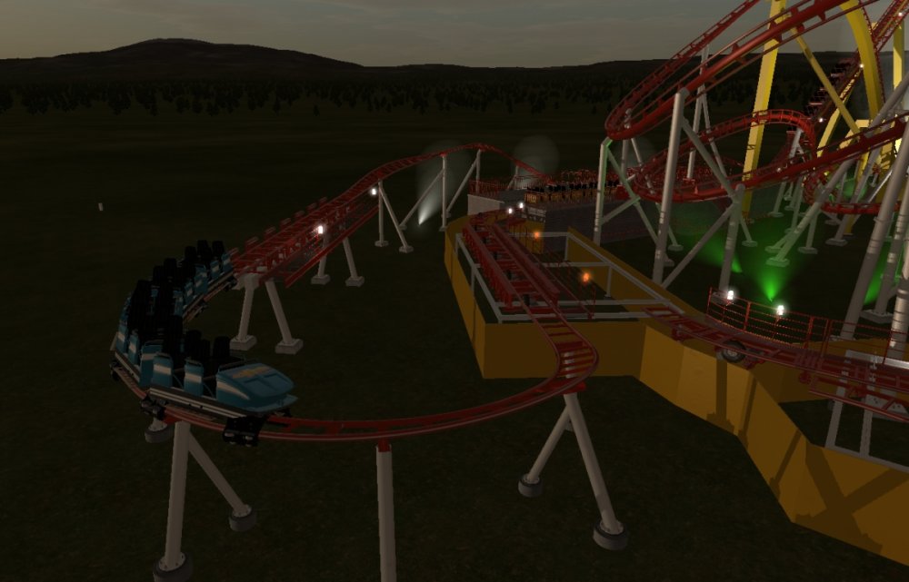 Here are the photos for today!! Right now I am creating queue lines and other details around this attraction. Come back for more exciting updates tomorrow!! Overall layout of the coaster Wave Turn! This is part of the new element. Twisty! Brake and maintenance area Airtime!! Want some intense airtime? More twistiness! -
