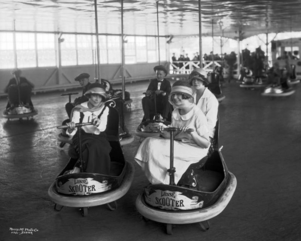 Old pictures of Lakeside are intriguing. I know what Lusse Auto Skooters are, but I found a picture of an earlier version of Lusse Skooters at Lakeside that I had never seen before. The attached picture is thought to be from the 1920s/1930s. For more vintage Lakeside pics, check this out: https://history.denverlibrary.org/gallery/lakeside-amusement-park -