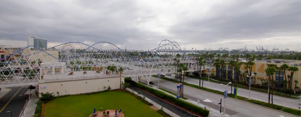 On tonight's episode of "The Biggest Loser" they quickly showed a roller coaster which seemed like it was in the middle of a city. It was a steel blue coaster with white support beams and reminded me of Millennium Force. If I would have to guess where it was located, I would have to say somewhere near Malibu, CA because that's where the biggest loser ranch is apparently located. Any ideas on which coaster it is?