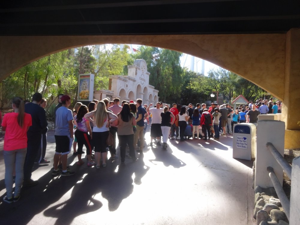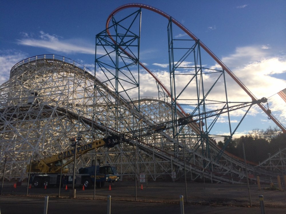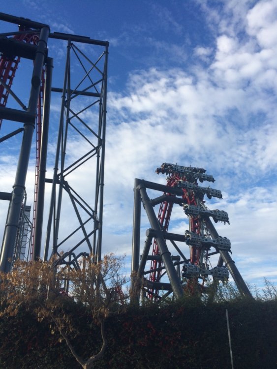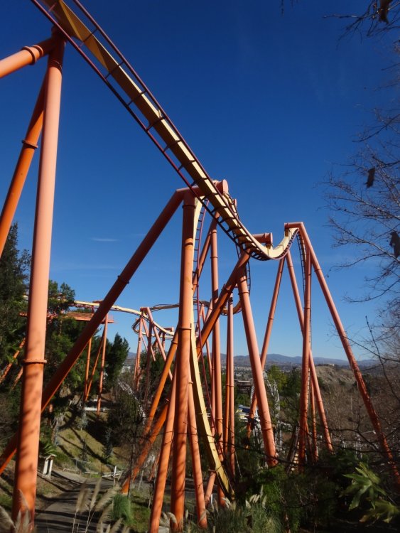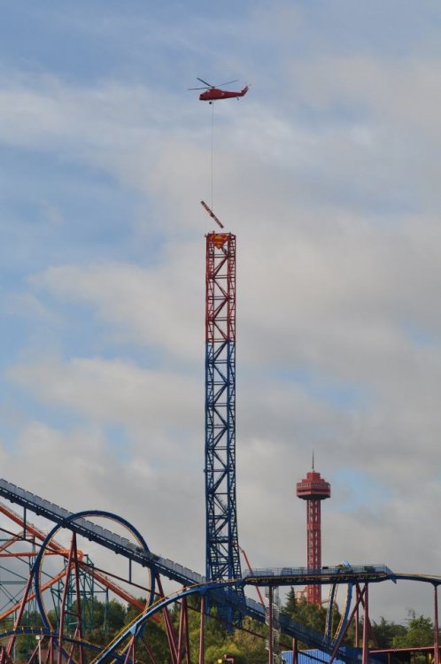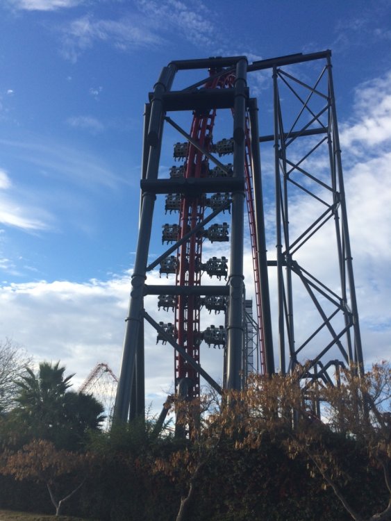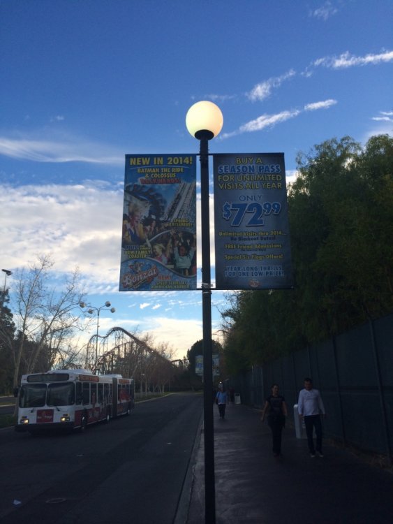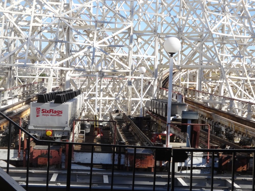 ^Line could get shorter later in the day. Here's a small update ^Update time No one else wants to get in early. 2nd train of the day and no line! This was probably the longest Full Throttle's line was all day X2's line after opening. The ride opened about 15-30 min. after the park opened thus no lines on practically every other ride in the park. Tatsu had no line and was running much faster than the last time I rode it. Nothing to report on the exterior. Inside though most of the interior is being removed. I wonder if the park will demolish or remodel the former Log Jammer station considering Mooseburger Lodge right next door is getting a remodel. Over by the tree some work has started on something. New entrance to Bugs Bunny World possibly. So yeah the park has started work on something. I always enjoy the trees around the park this time of year. Clearing for new coaster 19 this was the former location of a small train ride (the larger train is over in Whistle Stop Park so its not really a loss. Both the train and Tweety's Escape have been removed all that's left is to remove the concrete. Oh and some trees have been chopped down in the surround area. This former Dippin' Dots location right next to the removed train will be demolished to make way for new coaster 19. Tweety's Escape has been removed ...and moved over by Road Runner Express. All the midways where empty all morning. Also a lot of cracks in some of the midways have received some new asphalt all that's left is to color match the asphalt to the area. DC Universe received some plants and such for the center planter. Both the entrance plaza and Riddlers plaza received some new flowers from what I could tell. Batman was the only ride running one train but was a walk on for most of the day. Colossus has some backwards trains ready to run (still running forwards though). Anyone know why there's a crane in front of Colossus? Its the same type of crane that sits behind Full Throttle but there was another one sitting in front of Colossus it may already be gone but saw it while riding. Scream had no line all day and surprisingly running very smooth at least the recently refurbished train was, the other train not so smooth. Superman was surprisingly running both sides for most of the day. Apocalypse, 2 layers of new wood and 6 layers of old wood. Don't pull your lap bar down (after the op's tell you not too) so the entire train has to be rechecked, saw it so many times yesterday. ADMIN EDIT - I'm going to add a few more photos that Joey took today as well... View from the parking lot. Enjoy it! Looks like the 2014 park maps haven't come in yet. Typical SFMM merchandise. Not much has changed here. Looking forward to new slides at Hurricane Harbor this year? I am! "Sorry folks, the Sky Tower is closed. Moose out front should have told you..." But look what IS OPEN!!!! X2 is back to life! It's been a long time since we've seen this. How many of you went out to ride today? Looks like the lift chain is back up and running! Some signs for this summer's new hotness...