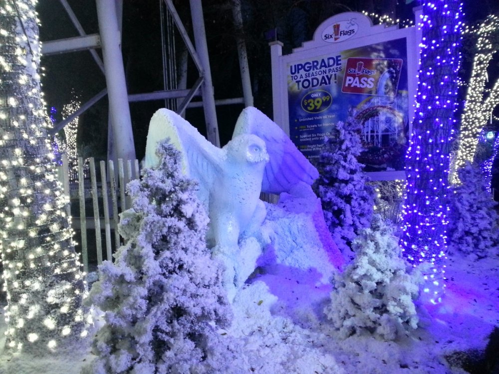 Went to the park for the first time this Sunday while I was out in CA for a short family wedding trip. I didn't know what to expect since I had always heard a lot of people bashing SFMM. I went in with an open mind and I really enjoyed myself. I did get a gold flash pass since I had to catch a flight later that evening. It was my first time using it and it was great. I also thought the operations were fantastic. I did think there would be horrendous dispatch times but everything was really quick yesterday. Ninja and Apocalypse were the only rides running one train. Riddler's Revenge was closed for the whole day. Scream broke down a few times throughout the day. Other than that everything was working and running great! I also thought the Holiday in the Park was very well done. I wish there was more of it, especially the area around Tatsu, but it all looked great. The little light show in the DC Universe section was a nice addition as well. Nothing that would blow your mind but a sign to me that the park is trying to do things right. I was shocked with the fake snow they were making near the entrance, it really was a nice touch. Now my thoughts on the coasters. Revolution - love the look of the trains, hate the OTSR, nothing great about the ride, same as everyone else's comments. #12 Viper - I enjoyed Viper, I was expecting to get the crap beaten out of me but I thought it was actually pretty smooth. #8 X2 - Rode front seat, it was an interesting experience. I wanted to hate it because I felt like it wanted to shake me to death, my knees and calves were hurting from banging against the seat, but it is unlike anything else I have ridden. It was intense, I enjoyed the sound track that went along with it, love the first drop facing straight down! #2 Tatsu - By far the best flyer I have been on. (Superman - SFOG, Firehawk, Nighthawk) Really enjoyed it. #6 Ninja - I thought Ninja was okay but to me it wasn't near as good as BBW. It was enjoyable though. #10 Superman - What a great ride, really had a lot of fun on it. #3 Apocalypse - I thought this was fun, but it was very forgettable. #11 Green Lantern - I was expecting to hate this one but I enjoyed it. Did not flip around on it as much as I thought it would. #9 Batman - The most intense Batman I've been on, and most likely the most intense B&M I've been on. It was absolutely hauling a$$ at night. #5 Scream - Finally got on this at the end of the day, little bit of rattle but I enjoyed it. Rode this twice in a row. I hated that horn that they play when you dispatch. #7 Goliath - Smooth, fast, fun. The helix was really intense, loved it. #4 Goldrusher - It was fun at night being in the back row and having no idea where you were going. #13 Full Throttle - Love the hangtime on the loop, that was great! Back seat over the loop was some great airtime, too bad the ride has to slow down...#1 All my shots of TC came out really bad, that is why I do not have more of them. Epic Airtime hill! Can't imagine how awesome that will be! Love this shot! Some Holiday decorations during the day I love how Tatsu flies above the park! Mrs. Claus reading the Night Before Christmas! This is that iconic shot (well in my mind) that I had always been wanting to capture! Some of the Holiday in the Park Lights! It's snow!! More snow!! I should have stopped and filmed this but I had to run out and catch my flight.
