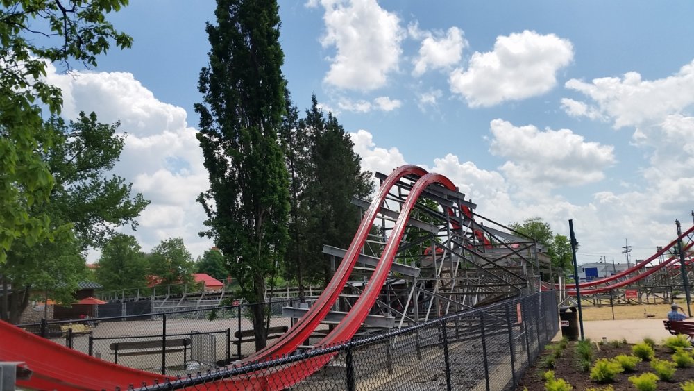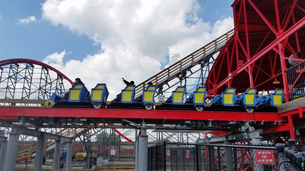 Just got back from my first visit to KK of the year. I have to say that the park looks great! Even from last year, it looks a lot cleaner, it looks like they are really trying to make this a nice park. All the staff were friendly. Even though it was a very slow day Storm Chaser and T3 were running 2 trains. Lightning Run had very slow operations with one train, but the staff over there always takes a long time to get through everything. Storm Chaser, T3, and Thunder Run were walk-ons or 1 train wait. Got on Lightning Run twice. I forgot how balls to the walls that ride is. Love it. T3, rode it once which is one too many...awful, awful ride. Worst SLC I've been on. Thankfully the new restraints prevent head banging, but this ride is just not good at all. Rattles all over the place. In pictures I hated the all red but in person it looks very nice. That's all I'll ever do with that ride anymore, just look! Storm Chaser....WOW! I have officially lost my RMC virginity. Smooth, fast, airtime, twisty, loved it. I rode it 7 times in a row but this is a ride I could be on all day. The restraints are very comfortable. I enjoyed the front more than the back. Thought the front gave a lot better airtime, I loved the feeling of just hanging on that first drop. The back was great too, favorite part being the first drop in the back. The ride does let up at then end but who cares, fantastic ride. Kentucky Kingdom has a real winner here. Also, going up the lift and have a 747 passing by for landing is seriously awesome! I'll post just a few pics since there have been a lot better pictures posted previously. My first RMC! Let's see if it lives up to the hype. This was the line the whole time I was there. I'll take that any time, any park, any ride. This part of the park will be really nice if they clean up all the extra footers. Lots of red. Great air here. Butt doesn't touch the seat until the bottom of the drop. B&M would call this an inversion wouldn't they? Airtime! More Airtime! This is a great way to start a coaster. Loop-de-loop! Weee! Nice to look at.... ...awful to ride. This part of the park looks really great! A little upskirt for ya. Just hanging around... Fearfall. Small but a lot of fun! Love that drop! Twisty! -