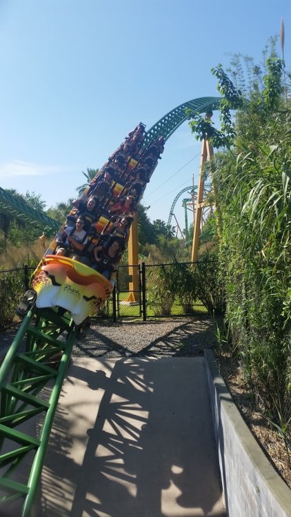 Hey all, Just wanted to share some photos of my first trip to Orlando in over 12 years, and my first time to Universal and Busch Gardens Tampa. My buddy and I flew down this past Saturday and spent some time with friends on the weekend but Monday through Thursday was all about the parks! Monday we hit up Islands of Adventure. Yes I'm bummed about no Hulk, but that just means I have to make a return trip! Weather was fantastic and crowds didn't seem too bad. We hit up Dragon Challenge first. Really enjoyed both, would love to see them duel again in the future. Only thing I hated about this was the locker situation. I get the policy, it may be stupid in my opinion but it is what it is. If they are going to have the no items policy, then they need to expand the lockers next to the entrance, it was a pain trying to get a locker and even just re-opening your locker. After that we hit up Harry Potter, took advantage of the single rider lines and didn't wait more than 10 minutes. Absolutely loved it. The first couple of times I rode, I was so interested in how the whole thing actually worked that I forgot to just watch the story line and what was happening. Really enjoyed the ride though. We got some Butterbeer then lunch at Burger Digs in Jurassic Park. Had the Chicken sandwich and it was very disappointing. Chicken was small, barely took up half the bun. Oh well, moving on. Loved the Jurassic Park River Adventure at USH, so I had to try it here even though I hate water rides. Single Riders line made that much more bearable as well, didn't wait more than 15 minutes. We hit up Spiderman next. Didn't know what to expect but I enjoyed it a lot. We made our way back around to Hogsmeade after just walking around for awhile and checking things out. We rode Flight of the Hippogriff, very nice little family ride. The ops were really running it well too! Had a few more rides on Harry Potter and Dragon Challenge and then we headed out. Really enjoyed IOA. We got some dinner at the Cowfish in Citywalk. If you haven't had the Burgushi, it definitely is something different but pretty good! Not too terribly priced either. After dinner we got a second wind and decided to head over to Fun Spot for some White Lightning! Holy crap, absolutely loved it! It shoots up near the top of my favorite woodies. Small but boy does it pack a punch! Tuesday we headed to Universal Studios. Went straight to Diagon Alley. 5 minute wait for Gringott's thanks to single riders line again! Really enjoyed this ride. I hadn't done any research into what either Harry Potter Ride was so I was very pleasantly surprised by both! I lost track of how many times I actually rode it. I am not a Harry Potter fan by any means but I was just really impressed with the Harry Potter areas. I really just enjoyed walking around or having a seat and just trying to take in all the details. We had dinner at the Leaky Cauldron, my Fish and Chips were very good, reasonably priced too. My buddy had the Bangers and Mash which was also very good. I think we got on just about every major ride on Tuesday. Really enjoyed MIB, ET, Mummy, RRR, Simpsons, and Transformers. Wasn't a huge fan of Terminator and Shrek. We skipped Minions because it was consistently the longest line of the day. We had lunch at Louie's Italian Restaurant, I had the Chicken Parm sandwich and it was also really good! It came with a nice sized side salad and I got some Cheesecake on the side that was also very good. Much better food at Studios than at IOA. Really enjoyed this park so we came back Thursday with our 3rd day free deal. Hit up Diagon Alley for most of the day, RRR once again, and another spin on Mummy. Really like Universal, can't wait to come back and check out Kong, Furious, and interested to see what the Jimmy Fallon ride will be like. Wednesday was a day I had been looking forward to for years. BGT had always been on my bucket list for Kumba and Montu. Crowds were basically non-existent which was awesome. Longest we waited for a ride was 30 minutes for Cheetah Hunt near the end of the day. Montu and Kumba were station waits. Sheikra was one or two train wait max. Scorpion even moved quickly as well as Sand Serpent. We hit up Cheetah Hunt first, did that twice in a row before the line got long. What a fun coaster! Really enjoyed the layout, some good airtime pops, just a lot of fun! Next was Montu. What a fantastic ride. B&M really knew what they were doing back in the 90's. It's up there for my favorite Invert along with Banshee and Raptor. We then took a stroll over to Pantopia since Sky Ride was down due to wind. We looked at Falcon's Fury and I just couldn't talk myself into it. I absolutely hate drop rides, couldn't imagine getting on it...more to come on that later... Scorpion was next, I enjoyed this classic Schwarzkopf. But while waiting for Scorpion, I got thinking, no adult coasters at BGT do not have an inversion. I'm glad they addressed this with Cobra's Curse, it really looks great and will fill a much needed type of ride. Wish I could have booked this trip some time later, but schedules prevent that, oh well. Next up was Sea Serpent...woo, another Wild Mouse. Next was Kumba, so excited to get my first ride on this coaster I had been hyping up since I first even knew about it. I wasn't disappointed. Absolutely loved it. In the front on the Zero G roll was really intense, not like any other 0G roll I'd ever experienced before, the feeling took me off guard. Such a photogenic coaster as well! Next was Sheikra, my first Dive Coaster. What a great ride. I am really looking forward to Valravn after riding this. Great airtime in the back, awesome feeling being held over the edge at the front. Rode Sheikra maybe 8 times, but I could have done it all day. We worked up quite the appetite so we headed to Zambia Smokehouse after smelling it on Sheikra. I got the Smokehouse sampler and holy crap was it a ton of food. Never have I been stuffed at an amusement park, but this