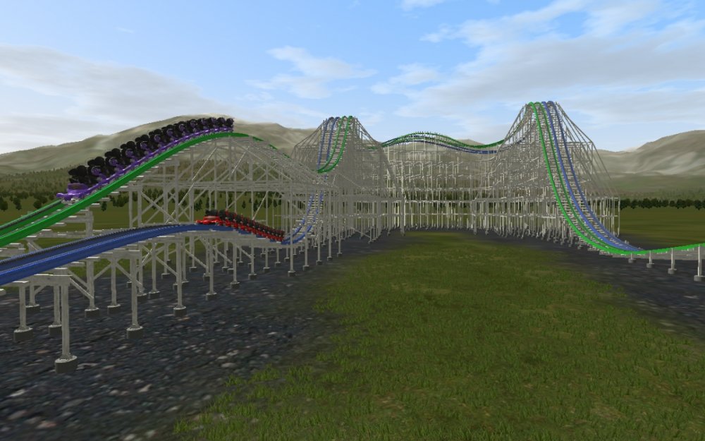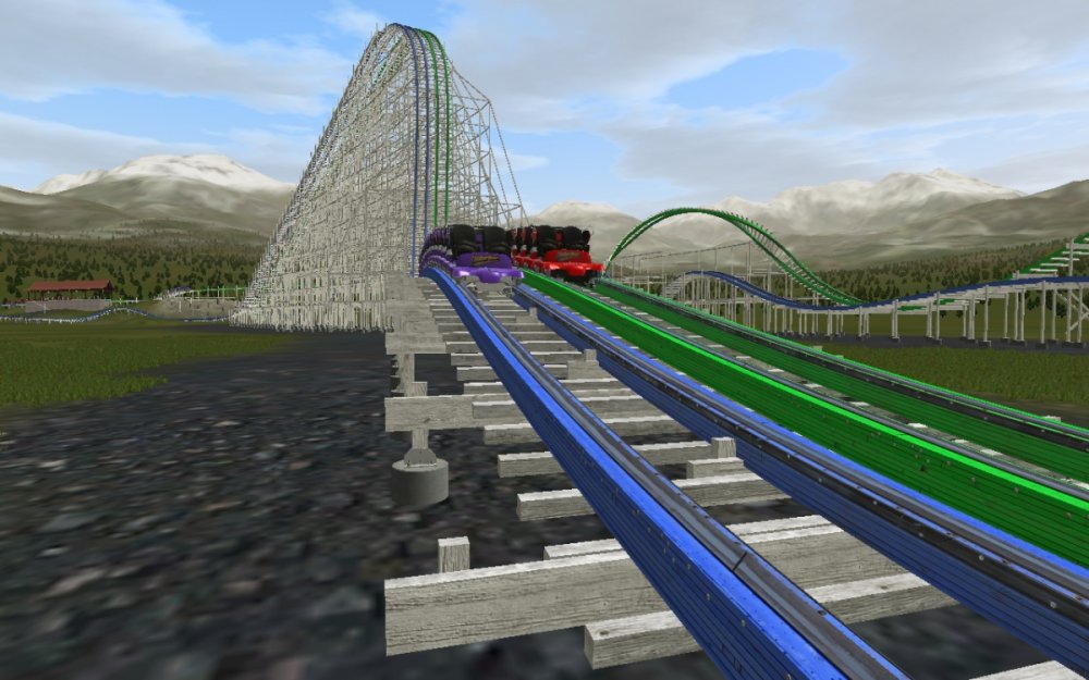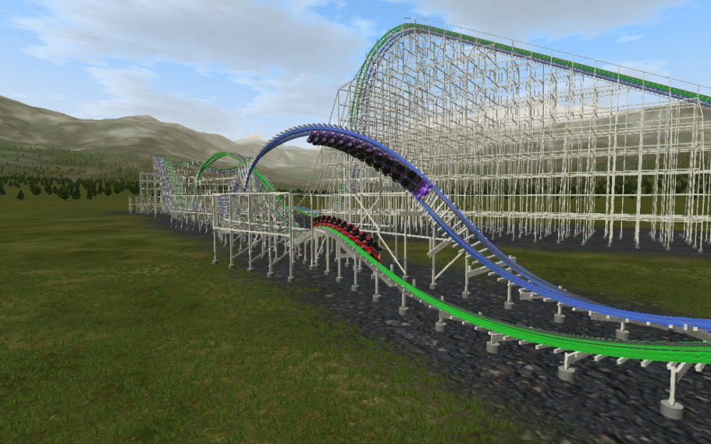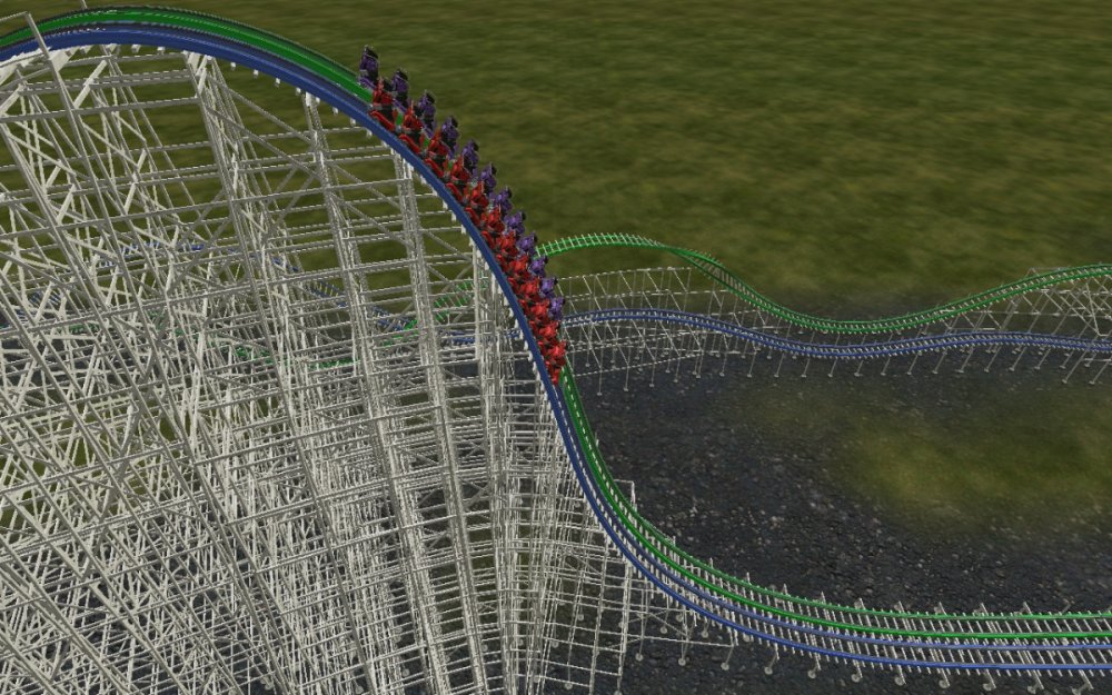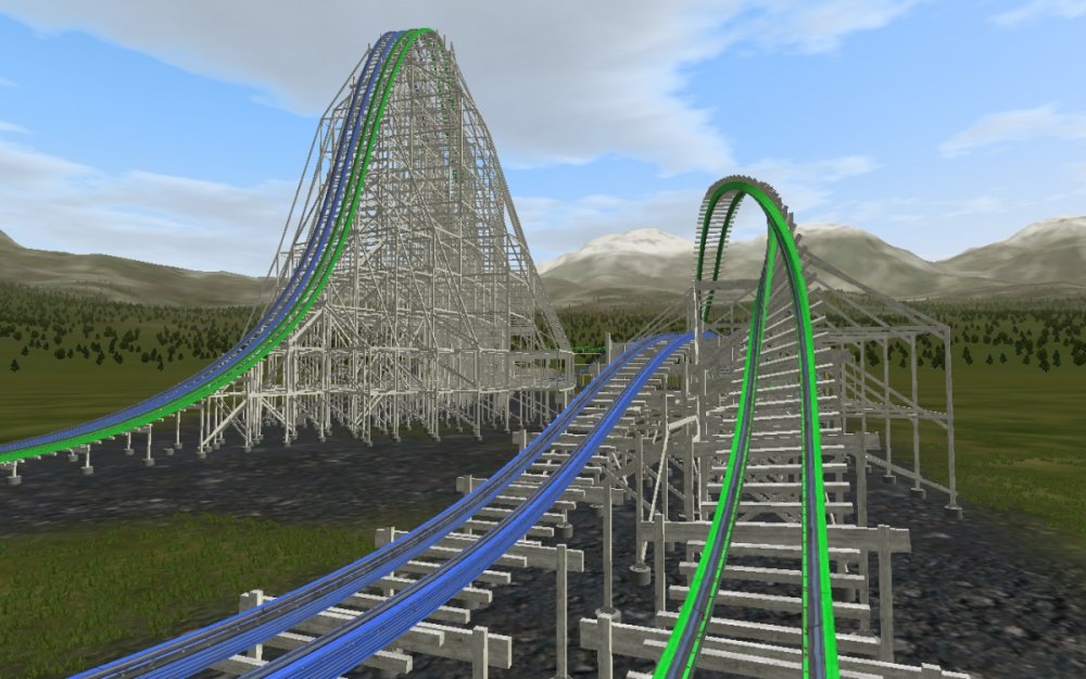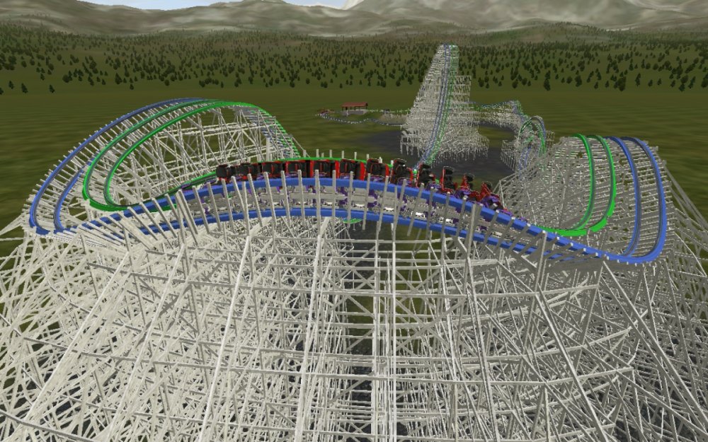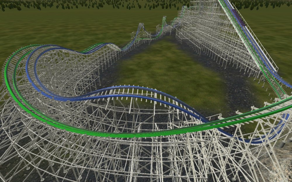 Been pecking away at a Twisted Colossus recreation in NL2 since the announcement video came out, and it's finally ready to be seen I think. No custom supports yet so the inversions are kinda just hangin out in mid air, and the bridge still needs to be worked on. Plus some of the trees around the station area (which I'm crossing my fingers will be staying). Off the initial hills. Across the post-1st drop floater hill. Yay hi-five. Coming out of the hi-five is probably going to be one of the highlights of the ride. Inversions are still being tweaked. Both inversions look like they're going to be a total blast. I'm personally most looking forward to the last Blue-side hill. Just too sexy. Not gonna lie making the bridge has been the most fun part yet. POV sometime soon hopefully.