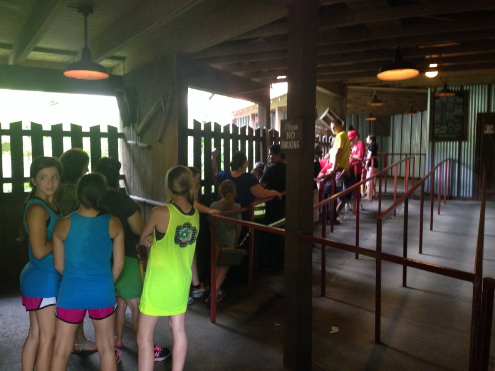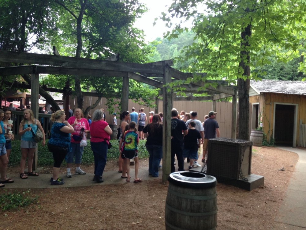 It being Daredevil Falls. When I was there for Thrills in the Hills it did have a long line. The line was stretching out of the entrance. -