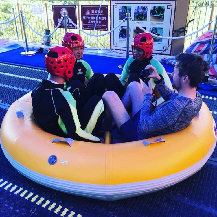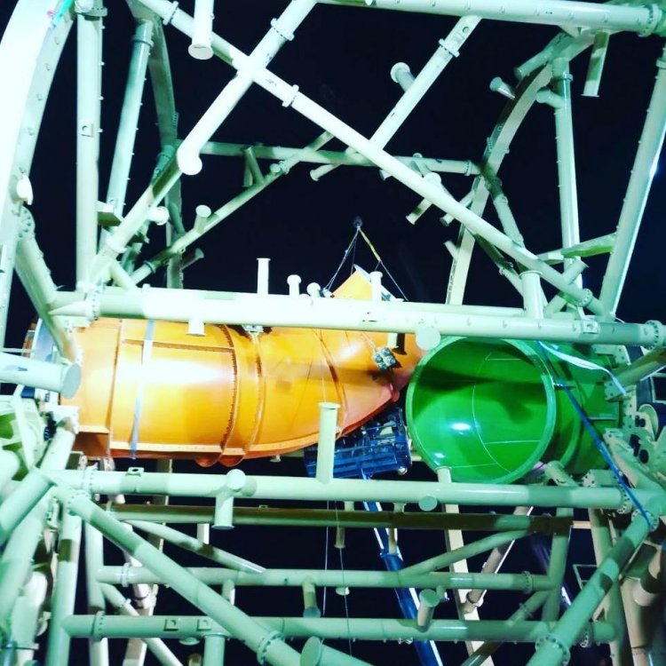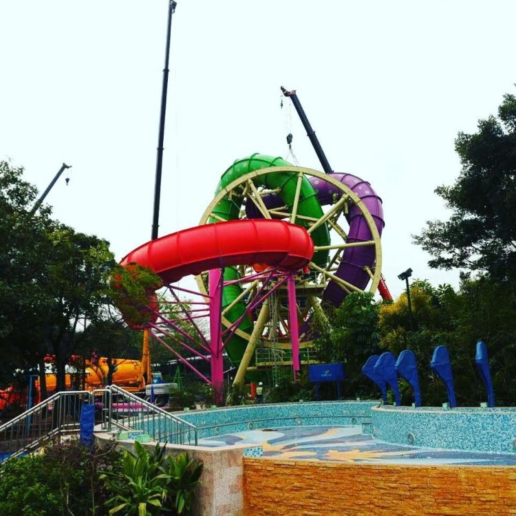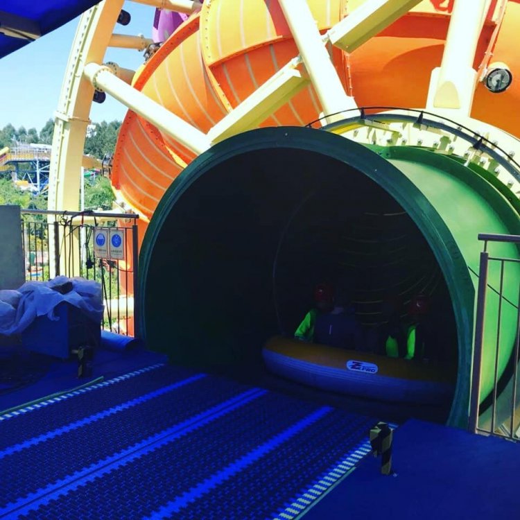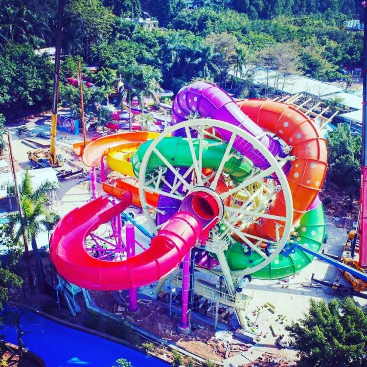 Here's an update on the Slide Wheel via Wiegand's Instagram. It is complete and already testing. I think when Wiegand asked what colour Chimelong wanted, their response was 'all of them'. Also they have sold another three: Reda Waterpark, Poland Nantong Waterpark, China Jinzhong Waterpark, China I would love to see a full, unedited POV of this. The fact the raft randomly stops and starts (and without warning) within the wheel could make or break this ride in my opinion. It could be fun and add another dimension, or it could just interrupt the flow of the ride. I suppose the motion will be similar to Mickey's Sun Wheel but without the benefit of having a point of reference to see when you will stop/start. They are wearing helmets during testing because of site regulations They are wearing helmets during testing because of site regulations