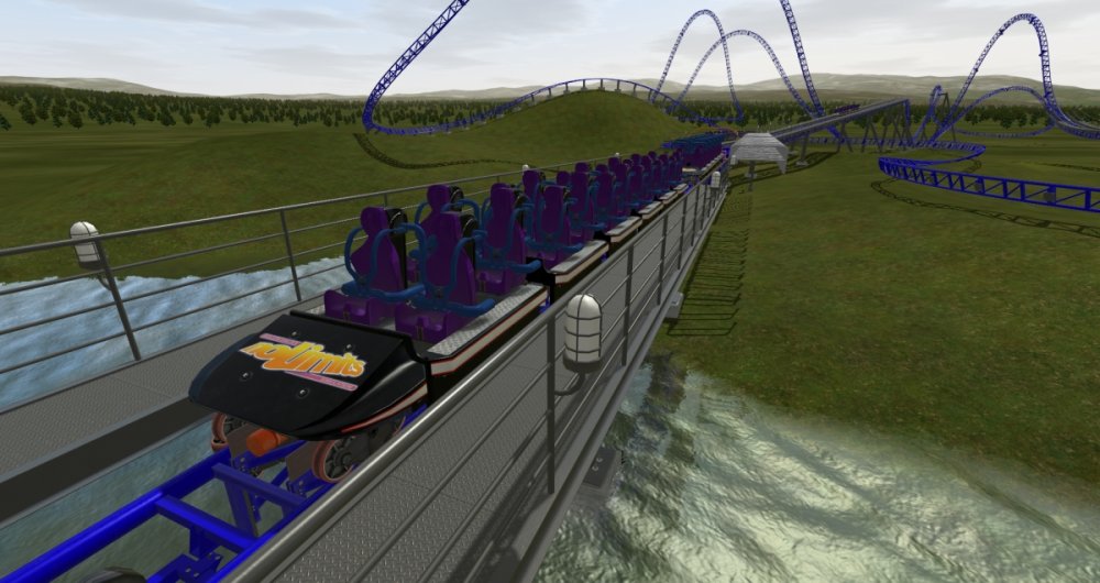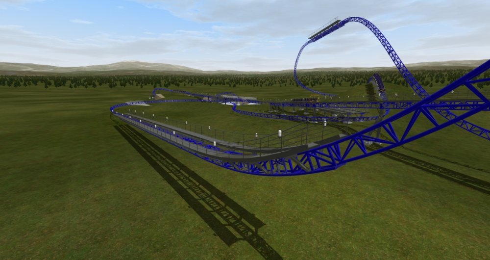 Hi everyone, This is my first project in NoLimits 2, and it is still a work in progress. It is an Intamin Rocket Coaster with three launches and two inversions. Currently, the track is completed and I have started on supports. I still need to finish the supports, work on the terrain some more, and create the station. Thank you to Kumba9 for the name and train color scheme ideas. Please feel free to leave comments/suggestions on the project. And now, pictures: First launch and roll Bunny hill TWISTY! Hills after second launch Final hill, turn, and roll Final launch Trains (Still need to edit the cartextures)