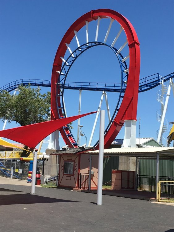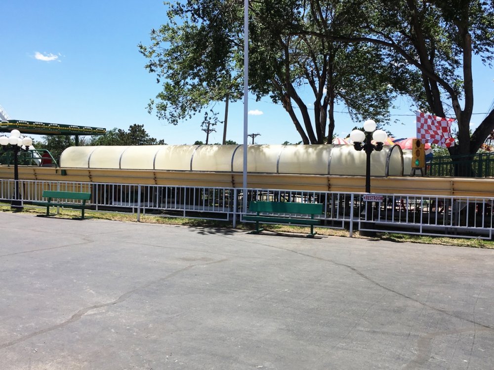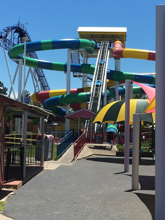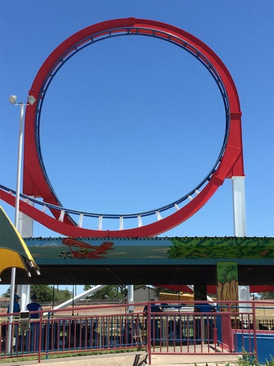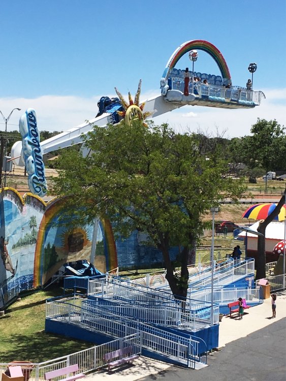 I'm asking myself would I really want to get splashed by that? Thanks Andy, and just you wait for this one Haha, yes it was. But I have to say the best was your reaction (lots of swearing) on Lex Luthor. I was surprised by how much more subdued you were on Zumanjaro. Moving on to the next update... Wonderland Amusement Park: The Move Part 2 The next stop on the journey was Amarillo, Texas, home of Wonderland Amusement Park. It is a smaller park, maybe a little bit larger than cliff's, but it's a little hard to tell since the layout of the park is essentially one long midway with a hook on the end. I'm not sure how to give a review of this park because the timing of my visit wasn't the most ideal. I went on a Sunday, the weekend before Memorial Day, right at park opening. Now this sounds like it would be great since the park wouldn't be all the busy, but because of the wind and operation requirement, all of the roller coasters (minus the wild mouse) were requiring a minimum number of riders to run. The issue with that is because people are either not patient enough or smart enough to just wait in the line for more people to show up, so it was hard to get enough people. I was able to get on all of the coasters and a couple of the other rides in my short visit, so that is a plus. The staff were all quite friendly and the park looked fairly well taken care of, especially for being a smaller park. Overall, just like with Cliff's, it's a nice park with a decent collection of rides, but nothing to go out of your way to visit. If you happen to be in the area, stop on by, but I would recommend going at a slightly busier time so you don't have the same troubles as me. On to the pictures: We have made it to Texas...yay?!? Near the front of the park is the log flume with the sky ride overhead Splash! It's hard to tell in this picture, while not fake blue, the water was quite brown, so I skipped this one The first coaster of the day was the slightly strange looking wild mouse, Cyclone. The right was pretty average for a wild mouse, but it did have a longer layout than most. It was smooth which is always a plus. The most interesting part was the cars, as you sat with your legs straight out in front of you resulting in you feeling very low the the track. Also the the wheel base sat fairly far back so you always felt like you were going a little too far before each of the hairpin turns. Just in case you forgot which ride you are on Up and over the hill of strange looking track The next up was Mouse Trap, a Pinfari zyklon, that seems to have the wrong name . Again another average coaster, but it does get a good amount of speed because of the three-car trains. Drop. Side-note: I bet this ride looks nice at night with all of the lights along the track Helix #1 Helix #2. I don't know what else to say about it The drop ride looked interesting (I don't know who made it), but maintenance was doing work on it so I couldn't get a ride The smallest coaster in the park is The Hornet, which is apparently a Vekoma MK-700 built in 2009 if you wanted to know the nerdy details. The ride itself is nothing special, it's essentially a kiddie coaster, so what can you expect. The trains are quite interesting. They look almost roller skatery (yes I will make up words) but they have really strange restraints that you have to accordion out when you pull them down so that it reached your lap. Smoothest non-Disney Vekoma I've been on, but that's not saying much now is it I'm not sure what drugs that hornet is on, but I want some??? Also you can sort of see the strange restraints the ride has A colorful wet/dry slide with emphasis on the wet part (I was not prepared for that much water) This looked like some sort of dinghy drag race, I'm not really sure though, but "the time has come for you to lip-sync FOR YOUR LIFE" I decided to take a ride on the sky ride for some aerial views of the front half of the park Fantastic Journey is an old school haunted house dark ride. While not quite the same level as the one at Knoebels, still worth a ride Overview of Cyclone and an empty log going down the drop A look towards the entrance as well as the ferris wheel and weird monorail ride I was under the impression that Texas wasn't a huge fan of rainbows The park also has a mini golf course for people who are into that Is it a real amusement park without a scrambler? The last coaster, the star of the park, Texas Tornado. It is a Hopkins coaster, the second one I have been on with the other being at my former home park. Hopkins coasters are basically knock off Schwarzkopf's, and they ride like it. While they are in no way terrible rides, they just are as well designed (as you will see). I was surprised at how smooth the ride was, but the forces are a bit sudden, ruining the experience a little. This was the ride that was the hardest for me to get on. It needed 10 people for it to be able to operate, which immediately turned people away from waiting. I decided to give it another try as I was leaving and there was a couple who decided to stick it out with me. After another couple showed up, a worker who was checking on something with the ride op went around to other employees to try and get them to ride. We were able to get enough people and we got two laps in without getting off! Is this the right ride, the sign says Exas Tornado That is a slightly weird shape for a loop, but I guess it's fine... but I think someone screwed up here And these trains sure are something, they look suspiciously like PTC's, but they were actually quite comfy I end this update with a look at the brake run with some of the layout visible in the background. There is also a rapids ride that I decided against since I didn't want to get soaked and then sit in a car for several hours Again, thanks for reading and be sure to leave a comment! Next time...The Ozarks and amphibious vehicles