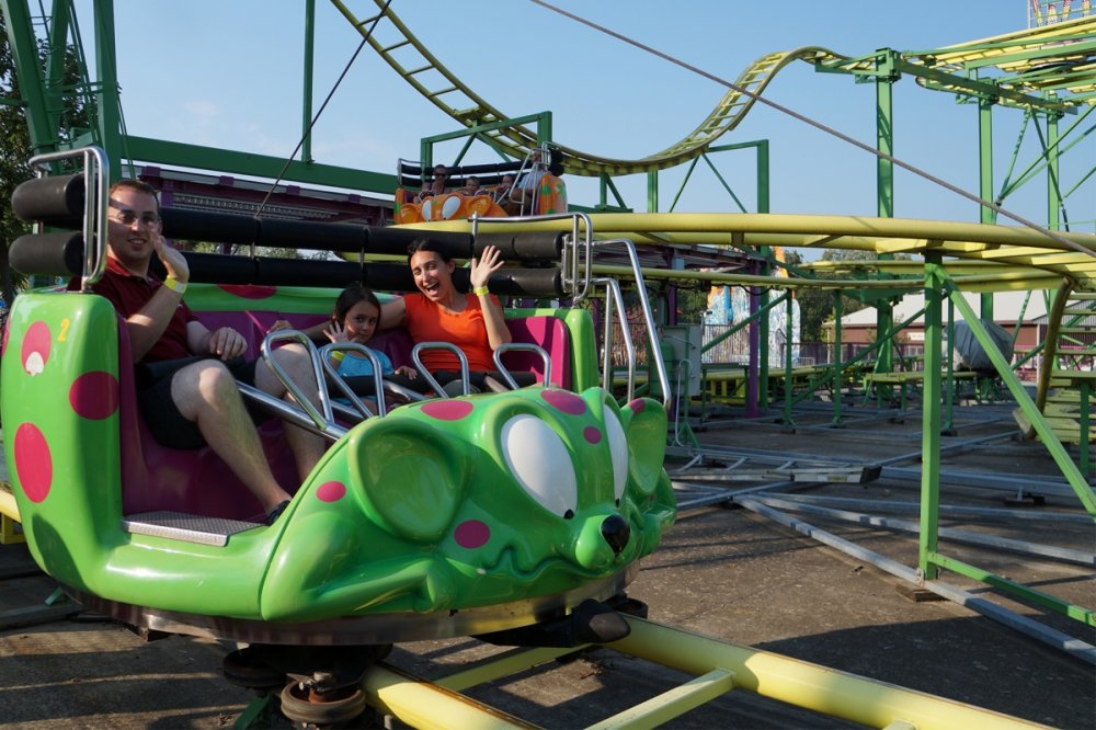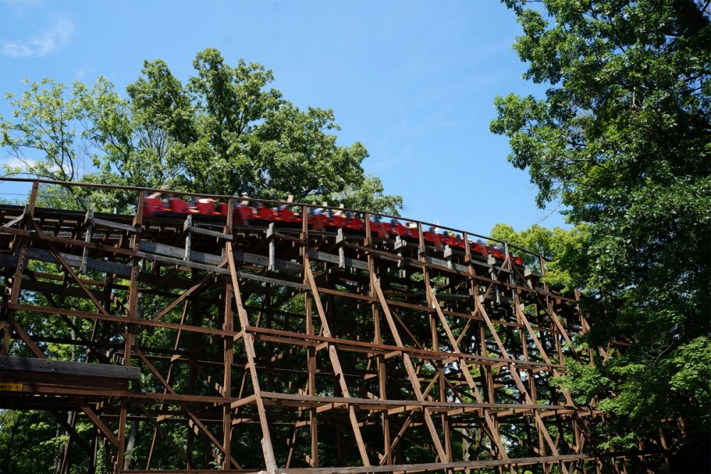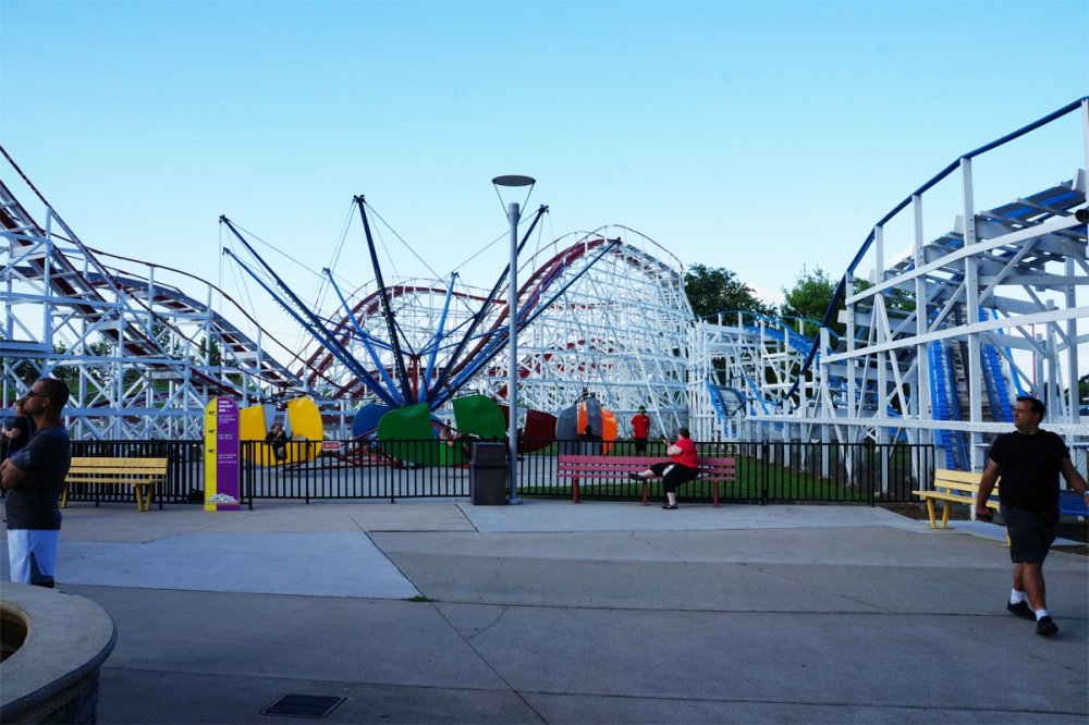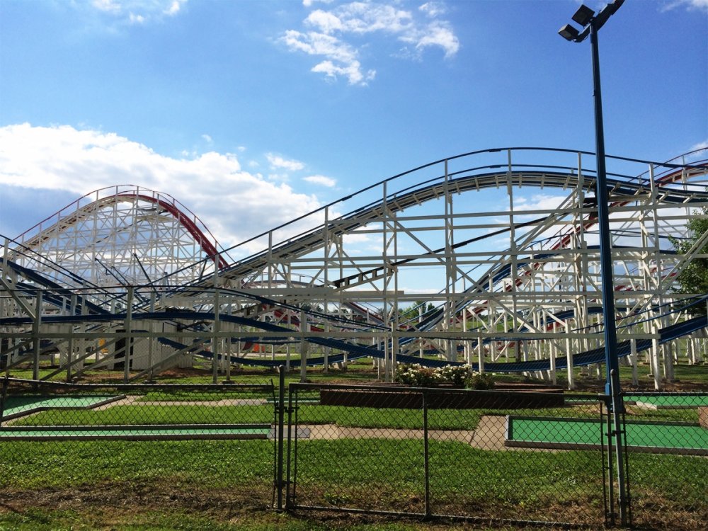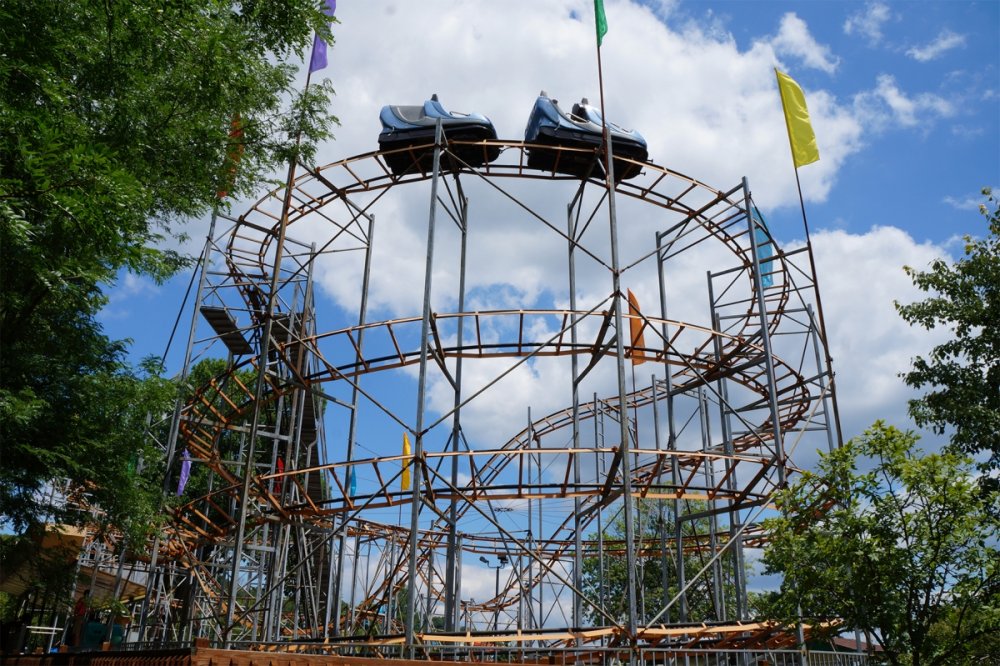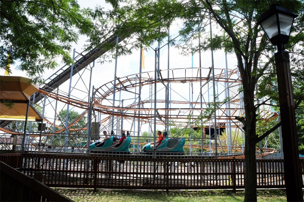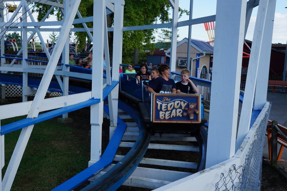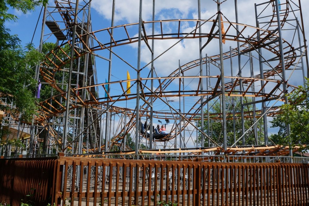Sorry for the delay with this update but I have been very busy will finals just around the corner, and now... Bonus Park Fun: Coney Island and Stricker's Grove After spending a few days with my sister in Cleveland, it was time to head down to Cincinnati for the start of what turned out the be the highlight of my summer, the Mini New Hotness and Mini East Coast Tours. As it was my first trip with TPR, I didn't really know what to expect but was super excited. I headed to the airport to meet up with those doing the Coney Island bonus. Coney Island was an interesting little park and a great way to start the trip. Everyone headed straight to the only credit of the park, the coaster formerly knows as the Pepsi Python, Python. It is a simple Galaxi coaster, but it was quite fun. After lunch, we checked out the flat rides the park has to offer. As I have not been to very many classic amusement parks, a lot of the flats were new to me. I had a lot of fun getting to know the people on the trip and experiencing some new rides. After the few hours at Coney Island, we heading back to the airport to pick up the rest of the group, and were off to dinner, or so we thought. I thought we were going to be eating close to the hotel/Kings Island, which I knew was not very far from the airport since I passed it on my way in. The drive seemed to be taking longer than it should have, and that is when people started putting two and two together. When the bus finally stopped, we were at Stricker's Grove. This park is very interesting as it is only open to the public two days out of the year, the rest of the time it is able to be rented for private events. The day we were there was not a public day, in fact there was a church group there, but thanks to a donation to the church by Robb and Elissa, they agreed to let us come to the park for an hour to get the credits. Awesome! The park has two wooden coasters, Tornado and Teddy Bear, and Teddy Bear beat out Banshee for being my 100th credit. The park itself was small, but cozy and the coasters were fun. Overall, the day was a great bonus start to what will be a fantastic trip and get some somewhat hard to get credits. First things first, where is the food going to be, and why isn't it in the Cuddle Up? Wow, Oz has sure let itself go The Euro Bungy, it sadly doesn't allow flips One of the classic attractions at Coney Island First credit of the trip, Python That first drop was actually quite nerve wracking Python before the helix of death One of the midways with a Tilt a Whirl and Moser drop ride, The Scream Machine, which was rather fun The Rock-O-Plane was a great time, but I couldn't quite the hang of them to get multiple flips Ah, the ferris wheel, which was located right next to a country show. Now I don't normally mind country music, but this was entertainingly bad country music. Think of the most stereotypical country music you can and than make it even more stereotypical and with bad singing A view of the pool which has couple of water slides This here is the Tempest. The ride itself was memorable as I was sliding back and forth crashing into the seat dividers, but the breaks on the ride would not hold so it took the operator almost ten minutes to load the ride for us an and almost twenty to get us off afterwards We leave Coney Island with a picture of this very nice path through the trees Now to Stricker's Grove with a look at the two coasters and the mini golf Kiddie turtle ride Are they surprised by how excited grown adults are to ride two family wooden coasters? A look a the Tornado, which actually had a few good moments of airtime The main area of the park with the two coasters and flying scooters Tornado lift hill and a super roundup NERD! The train for Teddy Bear is quite cute, but can we take a moment to appreciate the face the kid in the front is making Here is my failed attempt to take a picture of the park sign with my phone on a moving bus You know you are with TPR when your first dinner is at Carrabba's