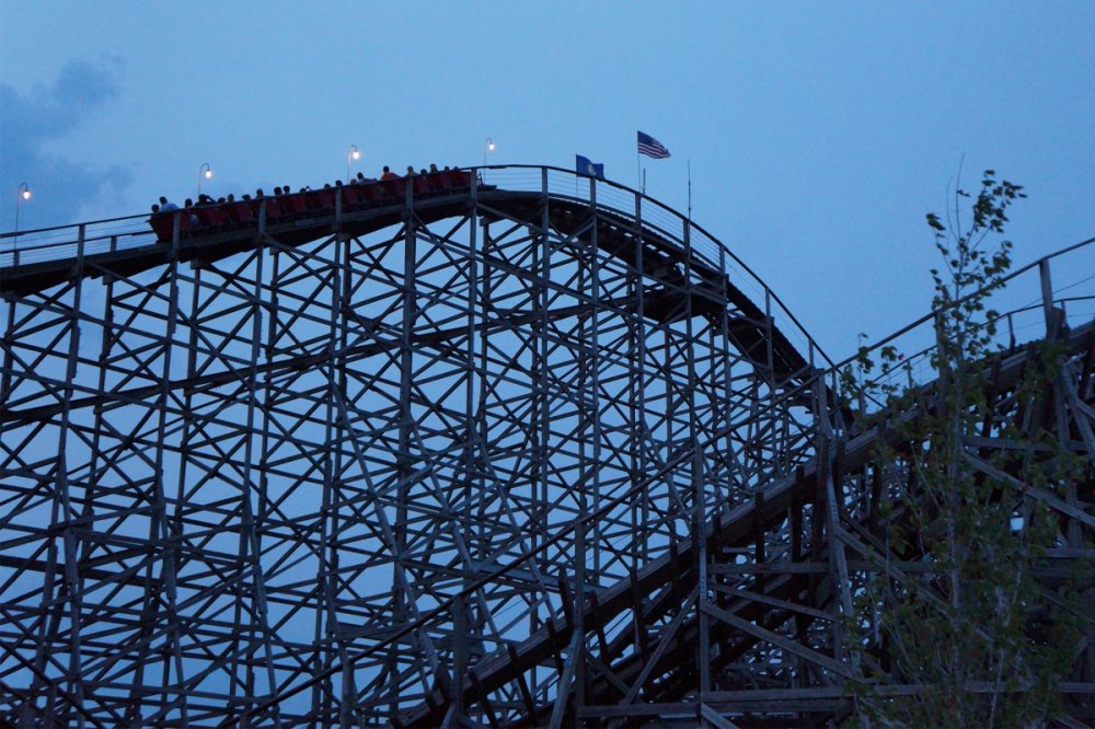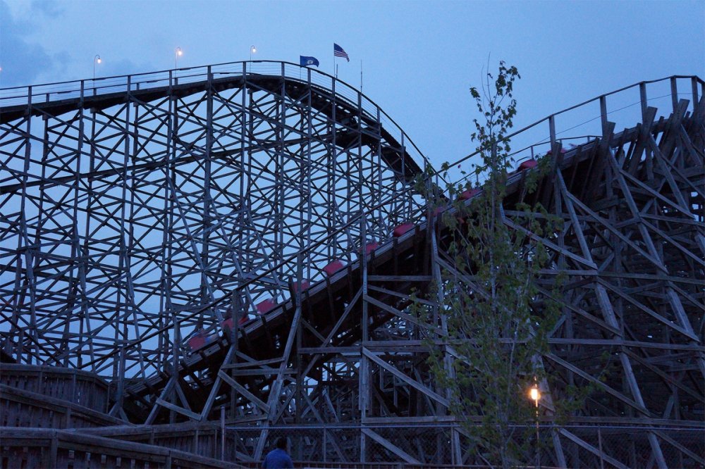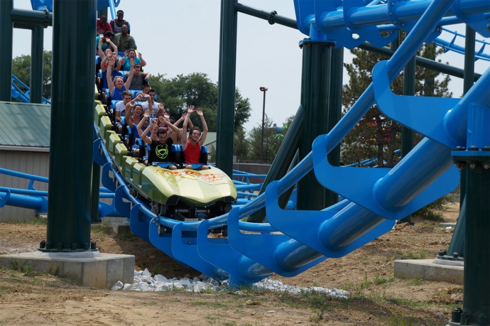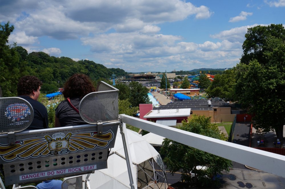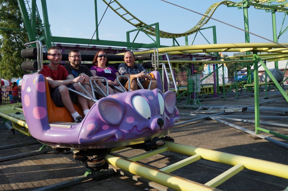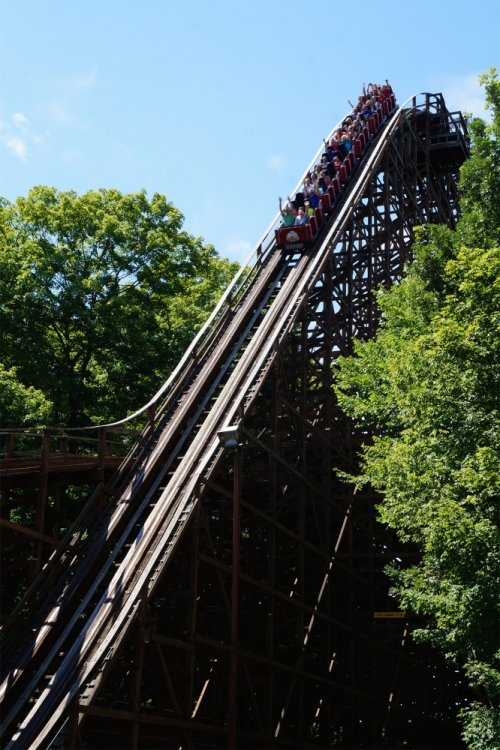 Thank you all for reading and commenting, now... Kentucky Kingdom and Beech Bend After the crazy Banshee Bash, it was an early morning to drive down to Kentucky and hit up all of the currently operating credits. The first stop of the day was the newly reopened Kentucky Kingdom. TPR was doing some filming for the park so we were there before the park opened to get some rides on Lightning Run and Thunder Run so Robb could get footage. But before that, Ed Hart met with the group and asked us for our opinions one how the park should move forward. It was really great to see him take interest in what enthusiasts had to day. From there we had some great rides on both Thunder Run and Lightning Run. After having some time to explore once the park opened we had a fantastic lunch of fried chicken (which became the theme of the day). As the day went on it started to get rather hot out and we sought out shelter. While hanging out in one of the restaurants, we had an interesting encounter with a local. He kept asking Caroline odd questions about England. She was very nice about it but the rest of us were just trying to hold in our laughter. For the rest of the day our response to anything strange was "because Kentucky", and it made perfect sense after that. We then got back onto the bus and headed out to the middle of nowhere to go to Beech Bend. The park feels more like a permanent fair, but they have one of the best GCI woodies I've been one. After getting a few of the smaller credits of the park we had dinner, which was more fried chicken. The park then gave out really random prizes to a few people and we all got small souvenirs. After that we explored more of what the park had to offer before our ERT session, and what an ERT session it was. We had Kentucky Rumbler for about an hour and a half and I don't even know how many rides I got on it. There was a couple "fat trains" which were very entertaining. At one point it was raining and you could see the lightning in the distance as you were flying along the track. Overall it was a really fun day. Kentucky Kingdom was definitely off to a great start, and with all the new additions coming it should grow rather nicely. Beech Bend was a very interesting way to spend a couple of hours and I will not forget that ERT session. Now, pictures: We were greeted by this fun ad, and spoilers, Lightning Run does have great airtime! The giant ferris wheel that offers great views of the park An overview of the waterpark with what is now T3 in the background. There were several people that tried to convince Ed to just remove it Some of the new slides that opened as part of the new expansion to the water park This is somehow the only picture of Thunder Run I have. The ride is a lot of fun with some suppressing moments of airtime Yes I am a credit whore and rode the roller skater I enjoyed both the fact that this carousel had a unicorn on it and the lion's facial expression I will never understand the Larson/ARM drop towers as they seem to defy physics. They are awesome though, and even better when you get someone that doesn't like drop towers to ride them Time for lunch! It's a shame we never found out what fourth company down was Now for a ton of pictures of Lightning Run because it is awesome! Look at all of those smiling faces Some overbanked goodness This picture came out really neat and nicely shows how twisty the ride is Lightning Run and flyers in the same picture, skill! This drop is incredible. It might not be very tall, but has a great feeling to it Hairtime. This ride has so much airtime at the beginning and end and the twisty section is really forceful The only problem I had were that the seats had an awkward bulge on the back that felt weird. Also, after riding it multiple times I had bruises on my shins from the restraints, but the ride is so great that it makes up for that Goodbye to Kentucky Kindgom. Man this ride is really photogenic Our first stop at Beech Bend was the kiddie credit. The ride op informed us of his many "Trust me I'm an engineer" shirts that he got from school I was reassured of that I was definitely in safe hands Who doesn't love a spinning wild mouse Some TPR members getting in the credit Two trains in one shot and both facing the camera, I am amazing A swinging ship, but this is not an ordinary swinging ship... It was once at Michael Jackson's Neverland Ranch! This ride a nice LED light package on it I just love how happy Laura looks in this picture This was a fun little log ride. I took this after the park closed, that is why the logs are all stacked up Now for Kentucky Rumbler, a fantastic GCI woodie! It was hard to take pictures as it was dark and this ride is FAST It has some great moments of GCI airtime and was a great end to the day I bought this obnoxious shirt "because Kentucky" and Beech Bend gave us all these neat little carabiners. Thanks for reading and next time, Holiday World