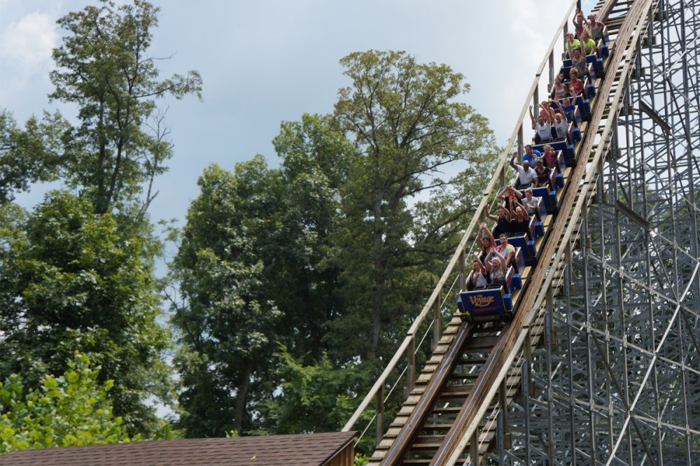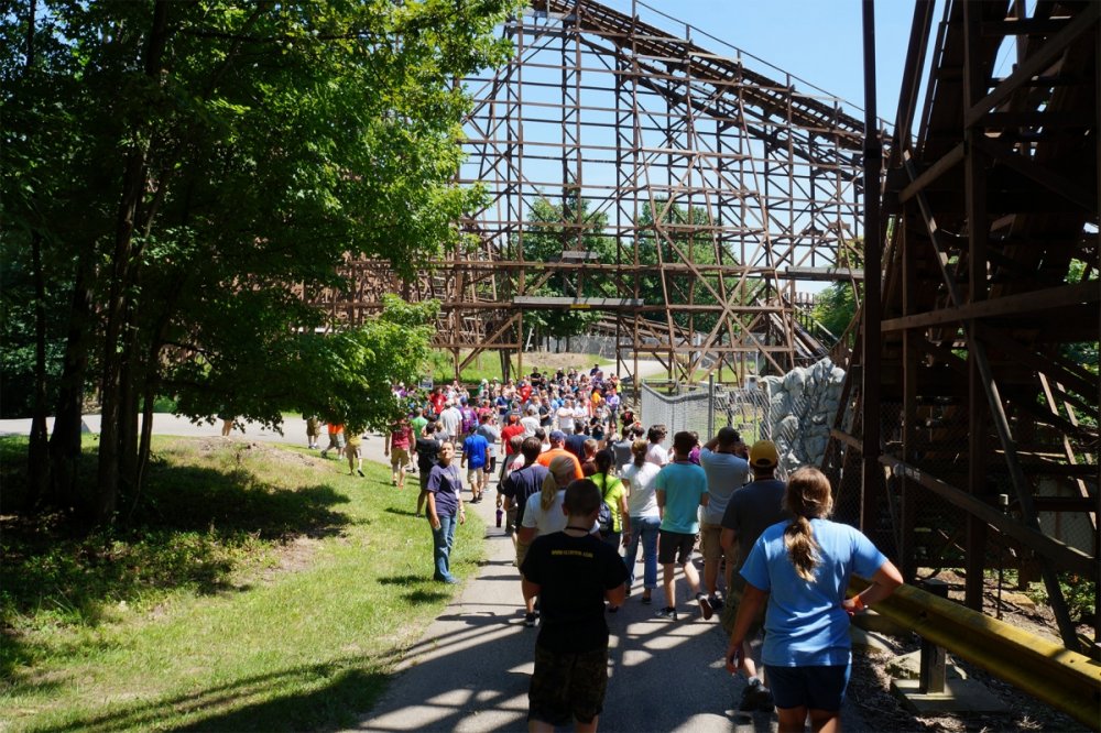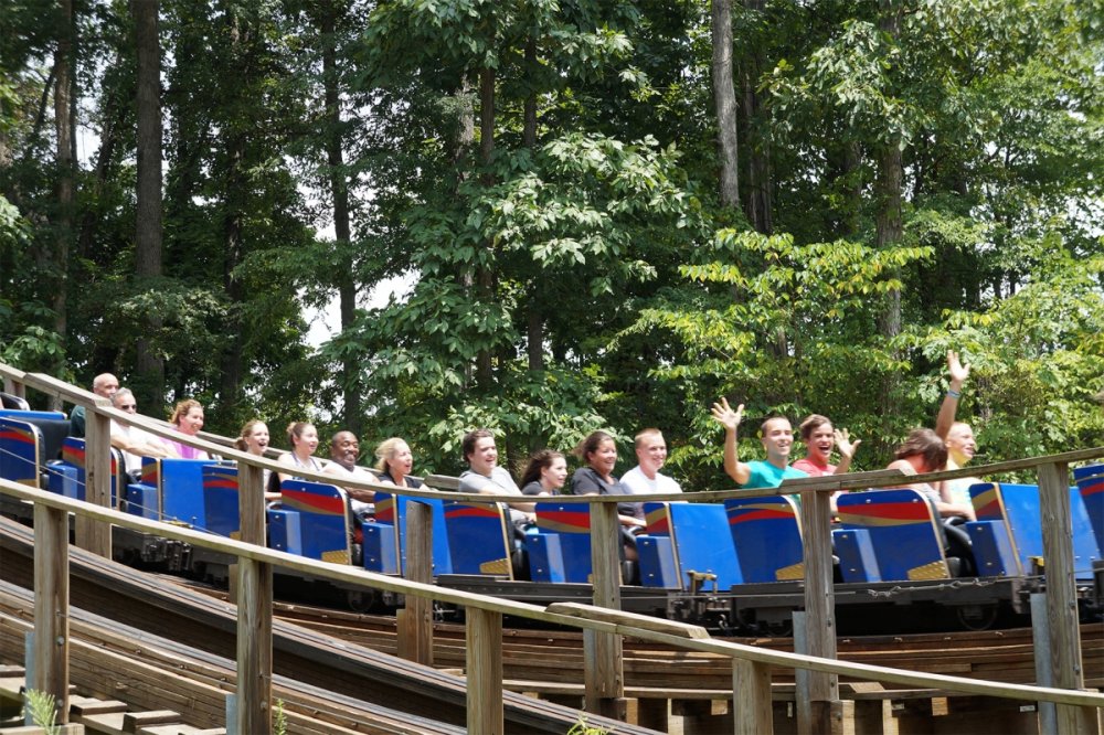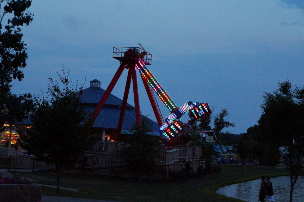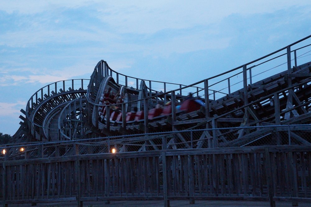 Thank you all for reading and commenting, now... Kentucky Kingdom and Beech Bend After the crazy Banshee Bash, it was an early morning to drive down to Kentucky and hit up all of the currently operating credits. The first stop of the day was the newly reopened Kentucky Kingdom. TPR was doing some filming for the park so we were there before the park opened to get some rides on Lightning Run and Thunder Run so Robb could get footage. But before that, Ed Hart met with the group and asked us for our opinions one how the park should move forward. It was really great to see him take interest in what enthusiasts had to day. From there we had some great rides on both Thunder Run and Lightning Run. After having some time to explore once the park opened we had a fantastic lunch of fried chicken (which became the theme of the day). As the day went on it started to get rather hot out and we sought out shelter. While hanging out in one of the restaurants, we had an interesting encounter with a local. He kept asking Caroline odd questions about England. She was very nice about it but the rest of us were just trying to hold in our laughter. For the rest of the day our response to anything strange was "because Kentucky", and it made perfect sense after that. We then got back onto the bus and headed out to the middle of nowhere to go to Beech Bend. The park feels more like a permanent fair, but they have one of the best GCI woodies I've been one. After getting a few of the smaller credits of the park we had dinner, which was more fried chicken. The park then gave out really random prizes to a few people and we all got small souvenirs. After that we explored more of what the park had to offer before our ERT session, and what an ERT session it was. We had Kentucky Rumbler for about an hour and a half and I don't even know how many rides I got on it. There was a couple "fat trains" which were very entertaining. At one point it was raining and you could see the lightning in the distance as you were flying along the track. Overall it was a really fun day. Kentucky Kingdom was definitely off to a great start, and with all the new additions coming it should grow rather nicely. Beech Bend was a very interesting way to spend a couple of hours and I will not forget that ERT session. Now, pictures: We were greeted by this fun ad, and spoilers, Lightning Run does have great airtime! The giant ferris wheel that offers great views of the park An overview of the waterpark with what is now T3 in the background. There were several people that tried to convince Ed to just remove it Some of the new slides that opened as part of the new expansion to the water park This is somehow the only picture of Thunder Run I have. The ride is a lot of fun with some suppressing moments of airtime Yes I am a credit whore and rode the roller skater I enjoyed both the fact that this carousel had a unicorn on it and the lion's facial expression I will never understand the Larson/ARM drop towers as they seem to defy physics. They are awesome though, and even better when you get someone that doesn't like drop towers to ride them Time for lunch! It's a shame we never found out what fourth company down was Now for a ton of pictures of Lightning Run because it is awesome! Look at all of those smiling faces Some overbanked goodness This picture came out really neat and nicely shows how twisty the ride is Lightning Run and flyers in the same picture, skill! This drop is incredible. It might not be very tall, but has a great feeling to it Hairtime. This ride has so much airtime at the beginning and end and the twisty section is really forceful The only problem I had were that the seats had an awkward bulge on the back that felt weird. Also, after riding it multiple times I had bruises on my shins from the restraints, but the ride is so great that it makes up for that Goodbye to Kentucky Kindgom. Man this ride is really photogenic Our first stop at Beech Bend was the kiddie credit. The ride op informed us of his many "Trust me I'm an engineer" shirts that he got from school I was reassured of that I was definitely in safe hands Who doesn't love a spinning wild mouse Some TPR members getting in the credit Two trains in one shot and both facing the camera, I am amazing A swinging ship, but this is not an ordinary swinging ship... It was once at Michael Jackson's Neverland Ranch! This ride a nice LED light package on it I just love how happy Laura looks in this picture This was a fun little log ride. I took this after the park closed, that is why the logs are all stacked up Now for Kentucky Rumbler, a fantastic GCI woodie! It was hard to take pictures as it was dark and this ride is FAST It has some great moments of GCI airtime and was a great end to the day I bought this obnoxious shirt "because Kentucky" and Beech Bend gave us all these neat little carabiners. Thanks for reading and next time, Holiday World