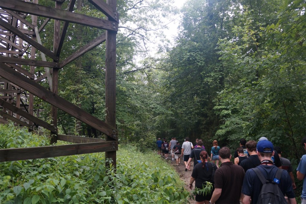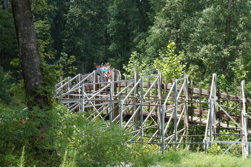 New update, Holiday World Our next stop on the trip was to Santa Claus, Indiana to check out Holiday World. We visited just days after the end of the 66 Days at Sea campaign for Thunderbird. The park even created a hashtag on Twitter for us, #66MinutesOfSleepTour! Arriving at the park we had no idea what to expect because our schedule for the day was kept a secret. We started the day with a walk back through Raven and Legend to reach the Thanksgiving section of the park where we were the first people in line for The Voyage. I spent some time exploring the park before it was time for lunch which included a Q&A session! We then went on a construction tour of Thunderbird, which at the time of our visit just some footers and the flywheel building. This tour also offered great views of The Voyage. My group spent the rest of the afternoon at the fantastic water park, Splashin Safari'. It was a great way to relax after the couple of long day we had been having. For dinner, we of course had the Thanksgiving dinner was delicious. After that was the highlight of the New Hotness Tour, water-coaster ERT! Holiday World was two ProSlide hydromagnetic coasters and they are nuts. Wildebeest seats four people in a line and focuses on crazy hills. When sitting in the front seat, the only reason I stayed inside of the raft was the fact that I was holding onto the handles with all of my strength. There is so much airtime that once you reach the top of the lift, you spend more time out of your seat than in it! Mammoth is much larger in scale and has 6-seater circular rafts. So now when you are flying over the hills you are also spinning. There is just something not right about feeling the entirety of those giant rafts lifting off of the slide. During the day the slides can get lines that are hours long, but during ERT I got 5 rides on Wildebeest and 3 on Mammoth, all withing an hour! After settling down from the craziness and changing, we headed to Holiday World for coaster ERT. They opened up the three woodies for us and we all had a great time. Overall, I had a fantastic time at Holiday World and am looking forward to heading back there in the future to check out Thunderbird. Most of the pictures I have from that day are from the walk backs as I spent a lot of time in the water park and had my back in the locker most the day, but here they are anyway: Cool lanyards with the day's schedule, complete with Holiday World humor The morning was very humid, but it makes for some menacing photos The group making our way through the trees Tunnel! You don't get this view very often I love how much of The Raven is hidden away in the woods. It makes the night rides more exciting The Raven was definitely my favorite of the park, and this turn over the water is beautiful Nice view of The Legend. A little heavy of the laterals for my taste, but still fun A nice sight to see this early in the morning Who doesn't love an elderly woman holding a gun? Poor Merlin, his castle got demoted to being bathrooms. Loved the details inside The Raven's station Lunch time! Time for the walk back, which leads to getting coaster nerds in your nerdy coaster shots. Airtime! Some of the footers for the overbanked turn A look at where the loop will be as it crosses over The Voyage I have mixed feelings about The Voyage. The outward airtime hills and the spaghetti bowl are great, but the twistiness after the triple-down just beat me up. I liked it, but it is not a ride that I could do more than a couple times a visit People waving at the nerds on a construction tour Prepare to take the tunnel! Where the inline roll will be There it is goes into the trees Some of the wacky banking during the spaghetti bowl Entering the tunnel for the trip back There is now a station in this area A look back at the inline roll Here are what make the "almonds" everyone was obsessed with before the reveal. The work that had been done on the station This building houses the flywheel The first Voyage corssover Some footers being made. There had been some bad rain the previous day, so the whole area was wet and muddy We were all amazed at how close these footers were to Hyena Falls The park gave us all these magnets, and Thunderbird sports cups (I don't have a picture of the cup) I bought this cool towel which was very useful at the water park. Thanks for reading and next time, Indiana Beach