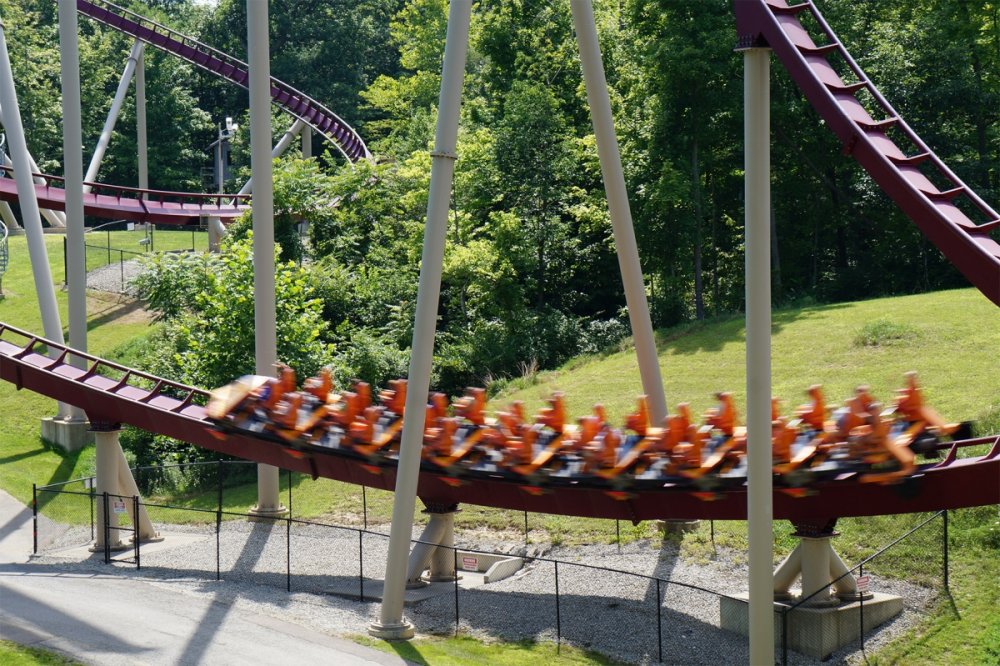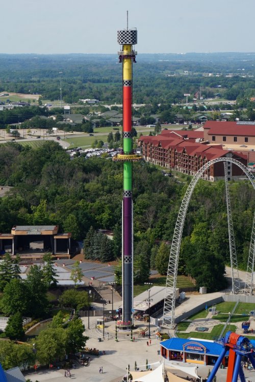 Sorry for the really long delay between updates. I didn't have access to the pictures over break and the start of the semester was too crazy to have time to sit down and put everything together for an update, but now... The Banshee Bash, Kings Island The official first day of the Mini New Hotness Tour was a big one, the Banshee Bash at Kings Island. Over 200 people from around the country and beyond came to check out the new hotness of Banshee. The park took out all of the stops for the event, and were promoting the heck out of it. There was a big post on their website and there was even a story on the event on the local news which we saw while we were in the lobby of the hotel! It is very smart of the park to make a big deal of the fact there are people traveling from all over the world to come to the park. The event itself was incredible, lasting 16 hours! The morning started with some ERT on Bat, Banshee, and their giant Frisbee Delirium. We then moved over to get some rides in on Diamondback. The park offered some ERT over at the waterpark, but I didn't have my swimsuit with me that day. After checking out the rest of the park we had a lunch with some guest speakers. After lunch the park took us behind the scenes of Banshee, Beast, and Diamondback were I got incredible shots of all of them. We were then free to roam the park again during which my group and I had an interesting experience at the Subway in the park. The girls in front of us seemed like they had never ordered a sandwich before. They kept changing their minds about what they wanted and the worker was force to throw away about two sandwiches worth of meat in the process. I give props to the worker for dealing with them because I know I wouldn't have had the patience for that. That adventure leads us to Cirque Imagine, the parks acrobatic/cirque de soleil-esque show, which we had reserved seats for as part of the Banshee Bash. The show was actually pretty good and I was rather impressed by it. Afterwards, we had a Q&A session with the cast which was very neat. The park also gave us great seats for the fireworks show in the restaurant above the front entrance. While the GP left the park we waited for the most anticipated part of the event, night ERT! First up was Banshee and Diamondback in which I got plenty of rides in on both. The night ended with a hour of ERT on Beast, which is just an incredible experience at night. Caroline and I were really lucky and managed to get a front row ride on the last train of the night! Overall, it was a fantastic day. I really enjoyed the park itself and all the extras that were thrown in for the event were and added bonus. Now onto the pictures... The schedule for the day came in lanyard form I thought we were in Ohio, how did we end up in Vegas? The reason we are all here. I was pleasantly surprised by Banshee, although it is not as intense as Montu, it still packs a punch and is incredibly fun But anyone who complains about it rattling needs to pipe down. The only time there was a slight rattle was at the bottom of the batwing/pretzel, and it doesn't affect the ride at all The first drop is fantastic. The twist is very sharp and you get slightly whipped around it, especially in the back Also, the crew was fantastic. During ERT there were periods where the train was secure but they had to wait for the previous train to be far enough along before dispatching. One time we actually stopped on the lift for a second to wait for the block to clear I forget to change my shutter speed for these pictures, but it makes them look really cool and show the sense of speed the ride has Zero-G into the distance This was my first time on a giant frisbee and I really enjoyed it! These signs were up all over the park, and my friend pointed out the Banshee's cleavage and now that is all I can see in that sign Make the pain stop! Beast station. While the ride itself isn't that special, it turns into an incredible experience flying through the trees at night. All of the coaster nerds in aww at all of the wood! [insert obligatory shot of first drop here] The train beginning to descend after the second lift hill. Speed of Beast Even from behind the scenes, most of the layout is still hidden among the trees Artsy distant shot of Diamondback's first drop Wow, I was accidentally being very artsy with these photos More photos that have too slow of a shutter speed because I fail at photography A wild train has appeared Went up the Eiffel tower to get some aerial shots of the park. Those that followed the construction of Banshee will be very familiar with this angle. Bat is there in the background, and I was blown away by it. Such a different experience from Iron Dragon which I had been on a few day priors, and this is a very good thing The most intense part of the ride, and from this view I could see how incredible the crew was, no double stacking! An overview of Planet Snoopy I was not prepared for that water jet (Photo credit: Andy Hatzos-The Great Zo) Diamondback- two trains and water splash in the same photo. Skill! Firehawk and Flight of Fear. Firehawk was surprisingly good. Flight of Fear on the other hand was painful and the only enjoyable part of my ride on it was some random guy in back of me singing Iggy Azalea and ironically singing "I'm in the fastlane" right after we came to a stop on the mid course brakes Racer and Windseeker. I don't find Windseekers that exciting but they do offer some good views of the park. However, they are enjoyable when you ride them with someone who doesn't like heights Racer was really fun with some good moments of airtime. Ending up riding it around three or four times throughout the day Drop Tower, while not my favorite drop tower, it was still a lot of fun with a great view of Banshee. It is a cool feeling to stand near it when it drop for the wind that gets kicked off of it Vortex, which looks very pretty, is a great way to get a headache Invertigo which was better than a 