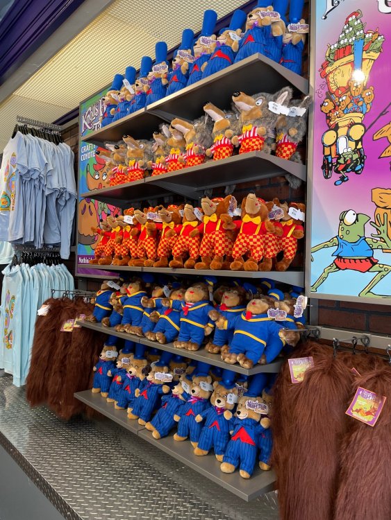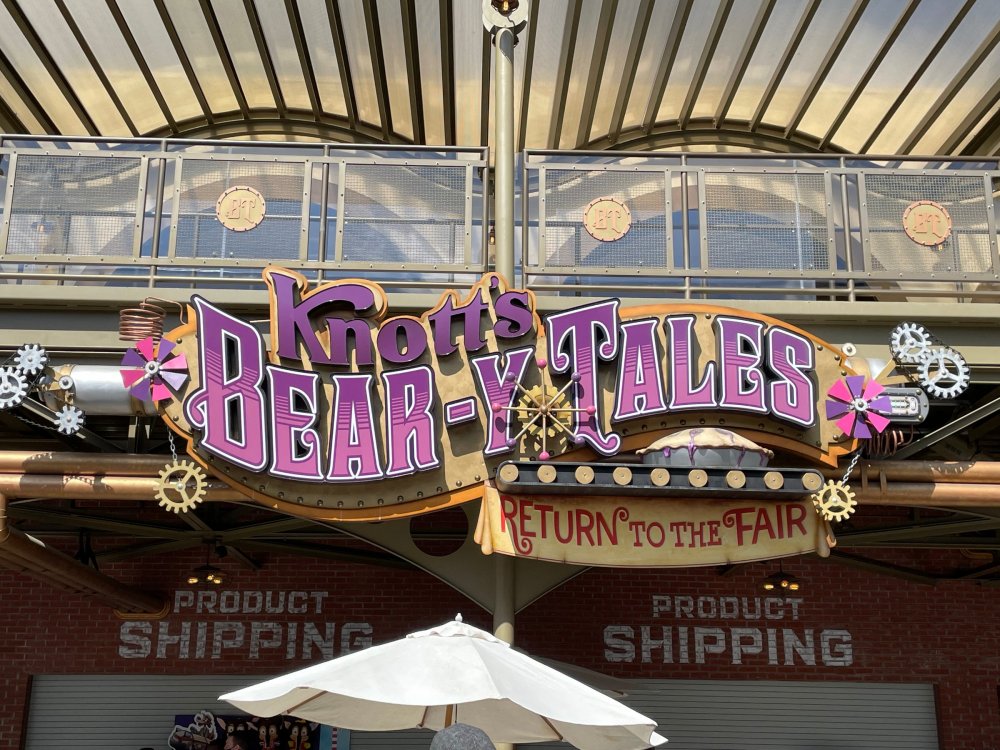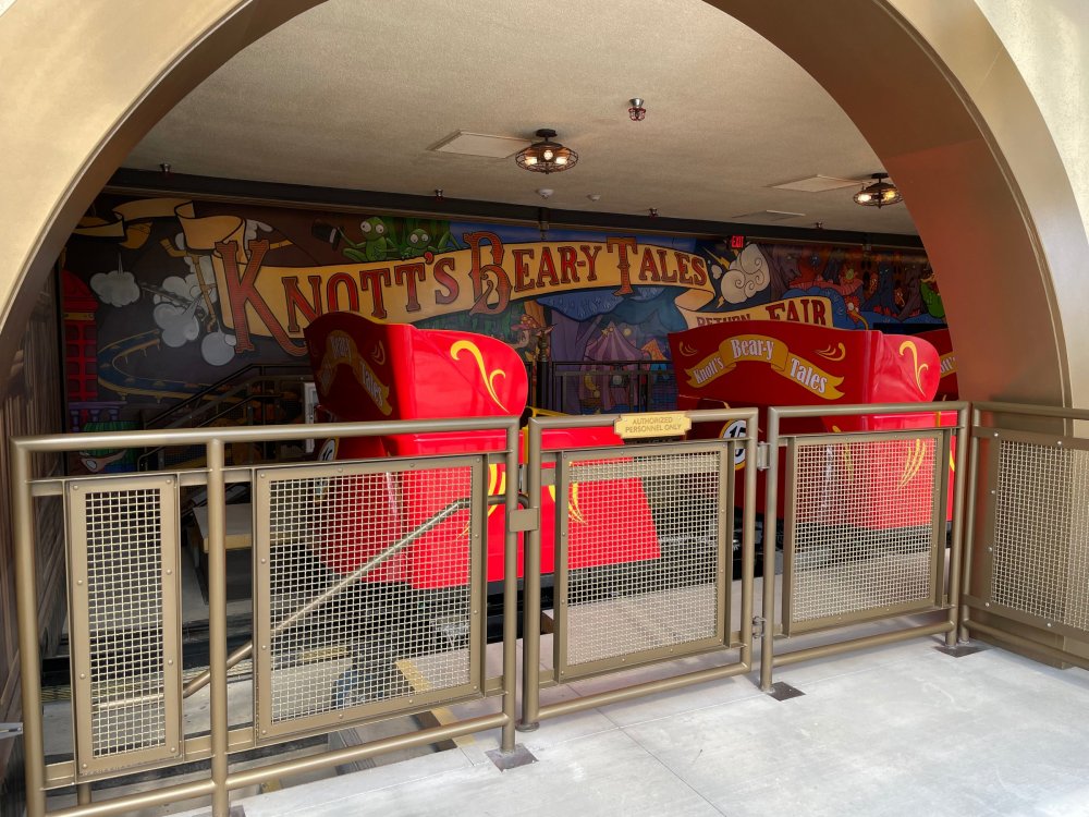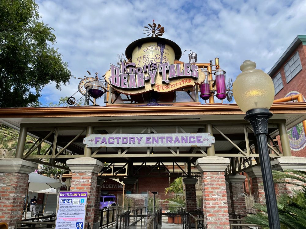 16. Theme Park Review was invited out to Knott's Berry Farm this morning to check out the all new Knott's Bear-y Tales: Return to the Fair. "“Knott’s Bear-y Tales: Return to the Fair” is a new 4-D interactive dark ride that will take guests on an exciting journey through reimagined show scenes that are reminiscent of the original dark ride, including the Boysenberry Pie Factory, Frog Forest, Fortune Teller Camp, Thunder Cave, and Weird Woods, culminating in a celebration at the County Fair. The story takes place 34 years after the original adventure and will follow Boysen Bear and Girlsen Bear as they travel to the Country Fair to earn the blue ribbon prize for their famous boysenberry pies, but Crafty Coyote is back along with his mischievous pups intent on stealing all the pies for themselves. Guests will climb aboard ride vehicles equipped with jelly blasters to try and recover the stolen boysenberry pies as they travel through whimsical and beautiful environments while competing for the highest score." This is somewhat of a re-skin of Voyage to the Iron Reef. But, calling it that is doing a disservice to all the theming inside the ride. There is much more than just the screens. Even some theming looking up where it's not just a blank ceiling. Similar to Toy Story Mania, Bear-y Tales uses a Knott's Berry Jam jar with berry pull string to fire at the screen, gaining points as you go along. I love these rides, just because it's a game and a ride. Even if you don't care, there's still so much action to watch as you ride along throughout the story. Knott's Bear-y Tales has a much more family friendly theme that I feel fits in great and more families will want to ride than the previous Iron Reef. Of course, there's all new merchandise to go with the ride. A lot of plushies, pins, shirts, etc. Here's a full POV of the attraction: