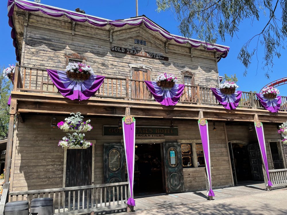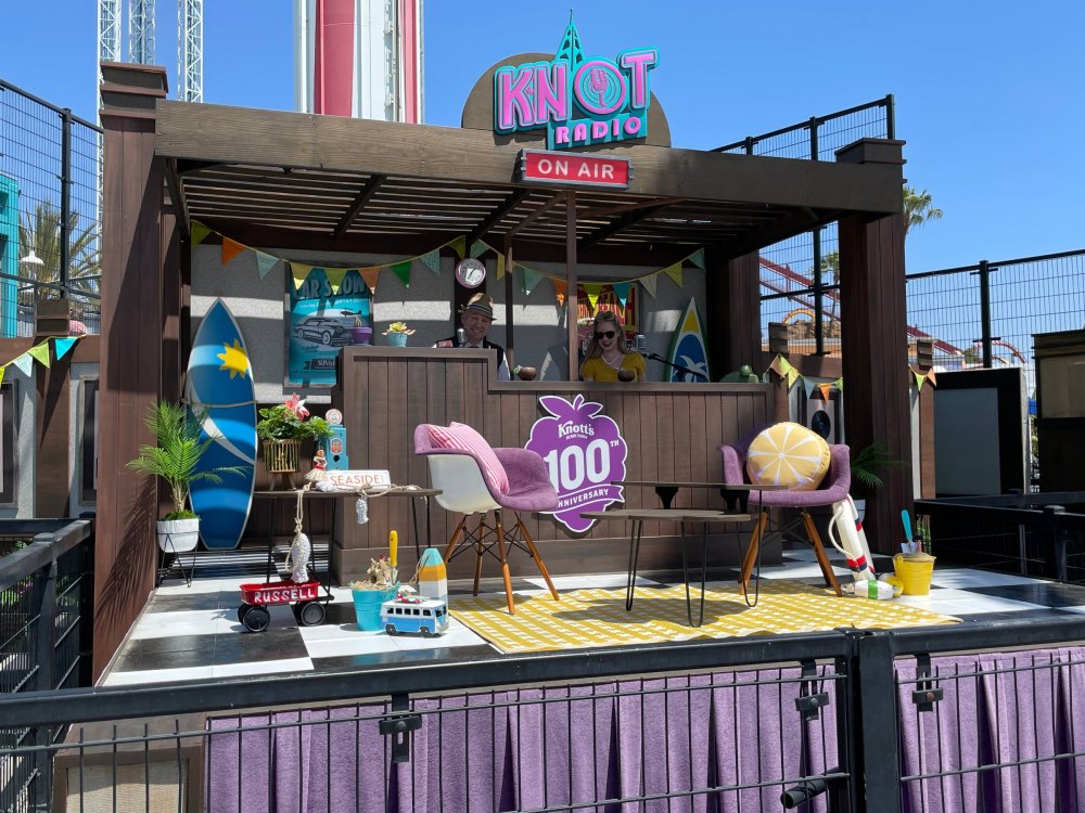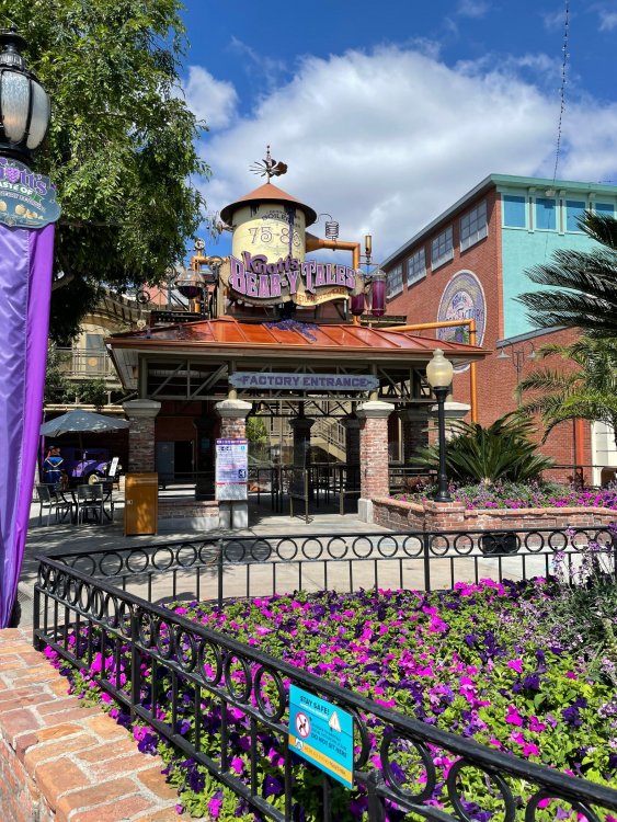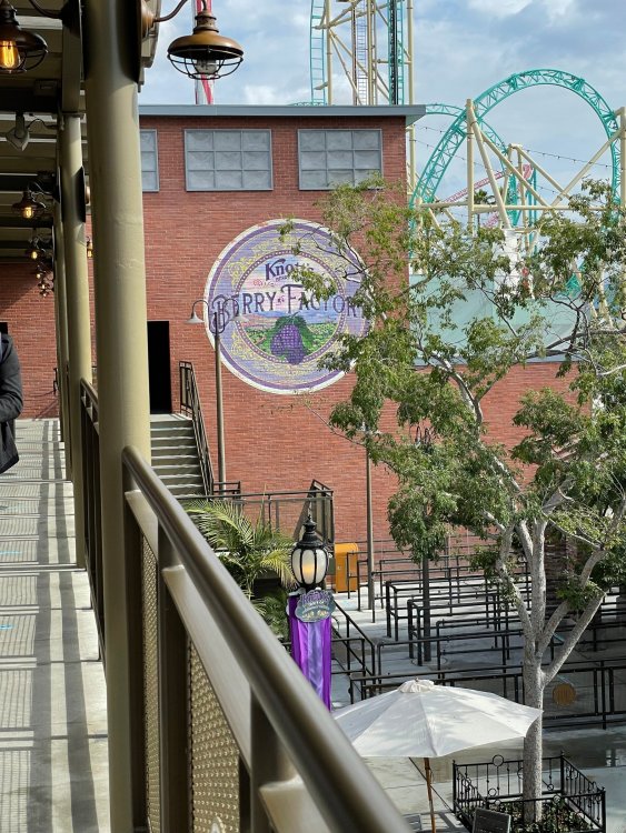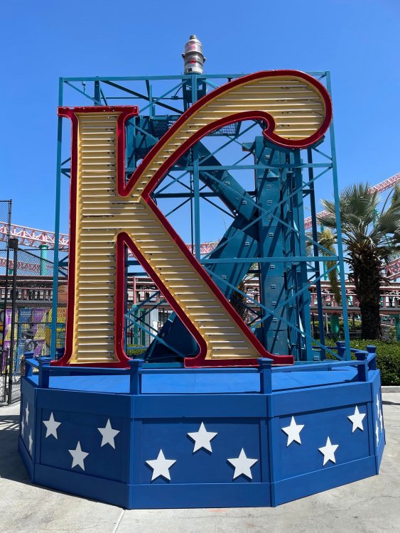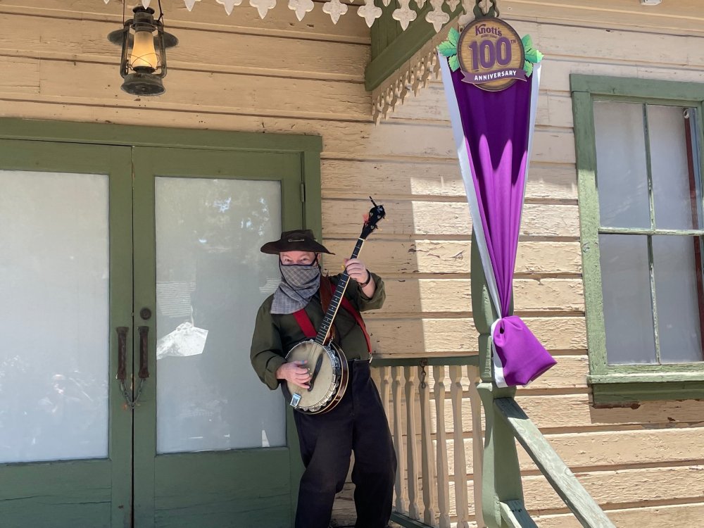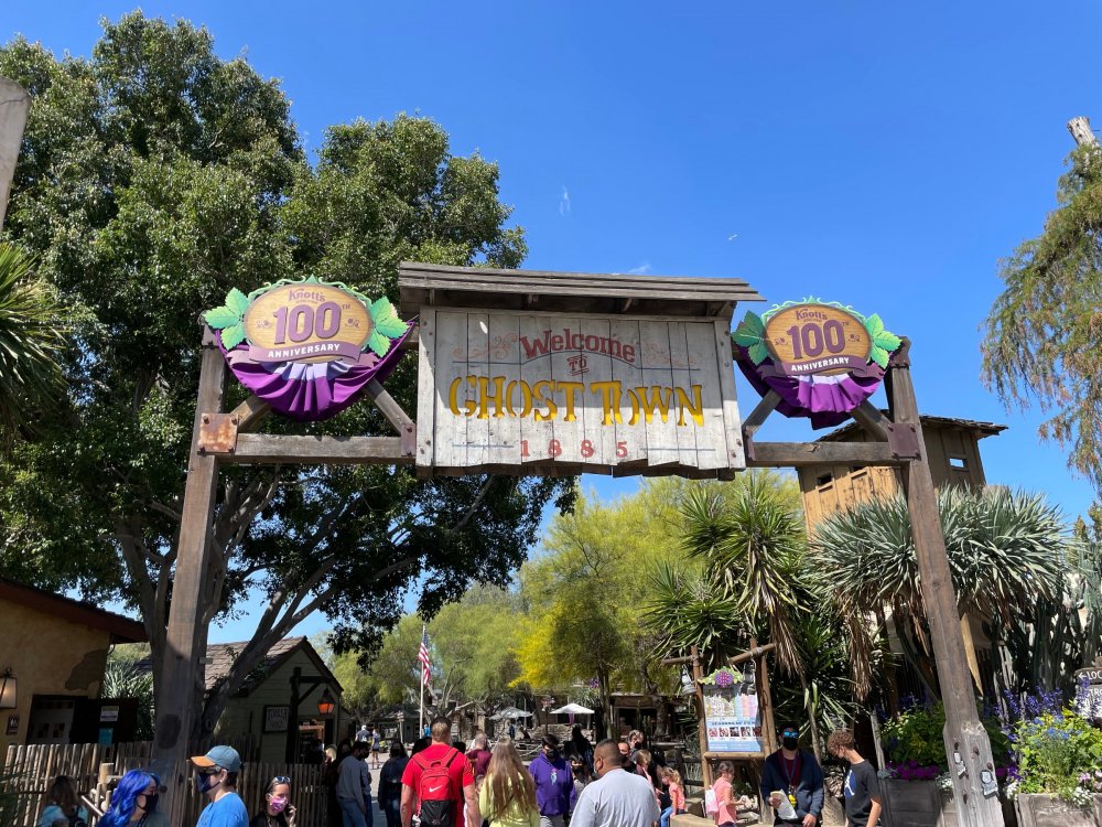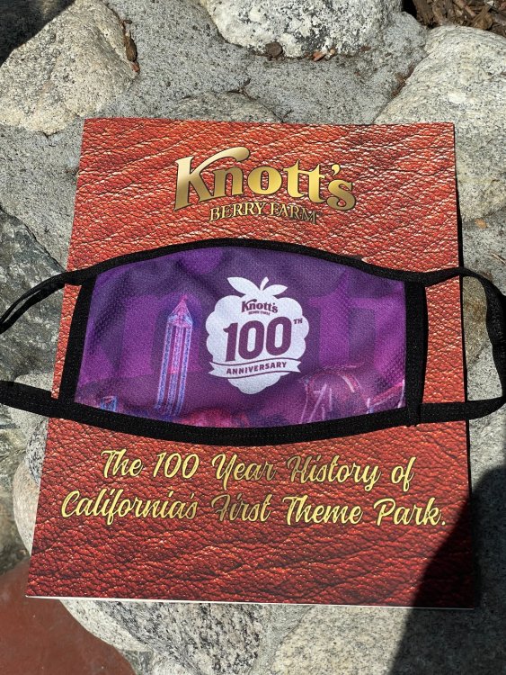 10. Went to Knott's yesterday to check out opening day of the 100th celebration. Actually, I was just hoping they were giving out a button, but they weren't, wah wah. LOL Also, after investing in a dining plan for the first time, I want to abuse it as much as possible. Knott's sure spend a lot of money decorating the park. You can't miss all the ribbons, and signage just everywhere celebrating 100 years. I had an 11am reservation, and got into the park around 10:40am. I'm not sure when they ask you to get out of line if you're early, but I figured that maybe 30 minutes early was okay. Those first couple hours are the time to be inside the park. It's the time to get in a ton of rides before the crowd shows up, and by the afternoon when I left, it was pretty dang packed! Here's some pics I took... The signage and decorations are excellent throughout the park! Too early for the Mayor, he's still sleeping. 100th anniversary merchandise. There are a number of classic ride and attraction photo ops around the park. Fireman's BBQ chicken was my lunch choice. The Haunted Shack photo op. Really cool illusion. The arcades have reopened in the park. This wasn't the case just last week for passholder preview. There are these QR codes at some spots that teach some history of Knott's. Scan and you'll be directed to a video. Really cool! Kingdom of the Dinosaurs. This one looks much cooler at night with lighting and smoke effects. Knott's even has 100th anniversary straws! Knott's also made "Welcome Back" merchandise!