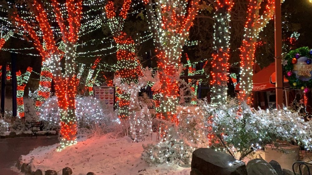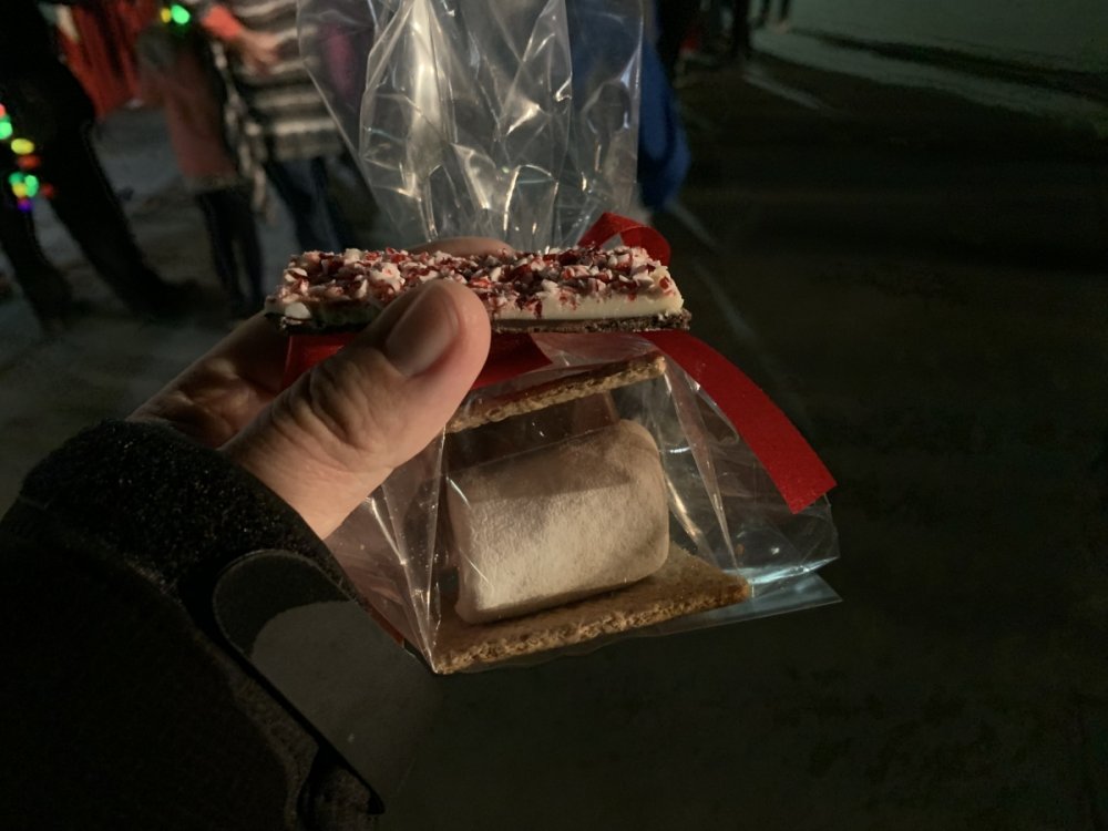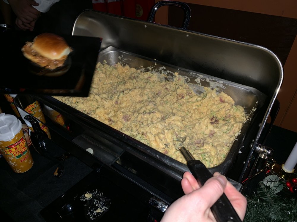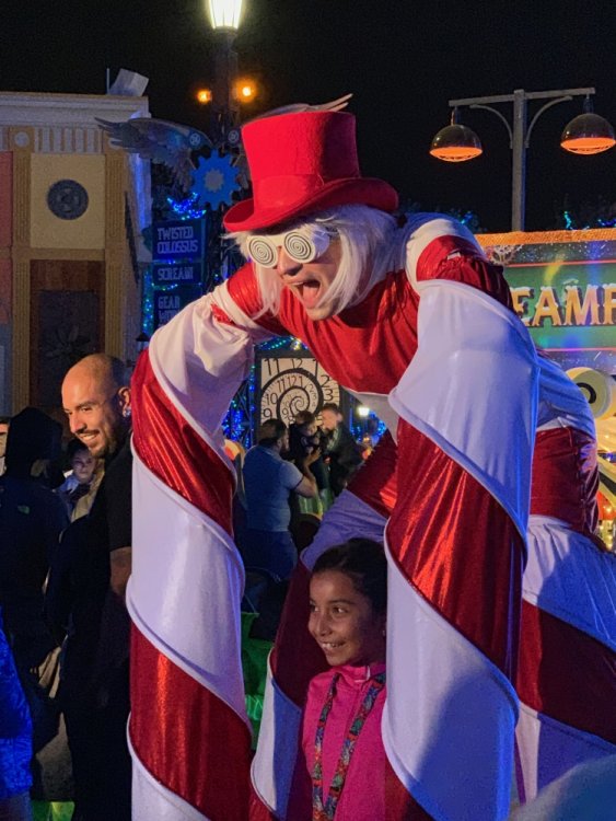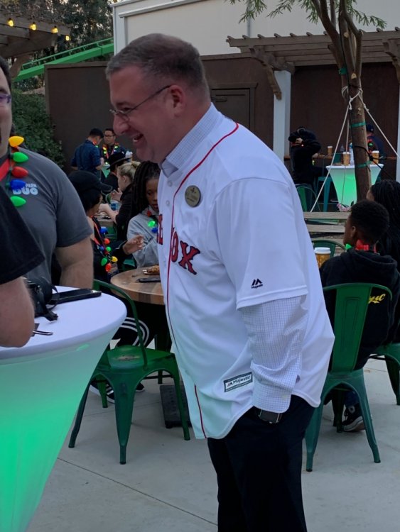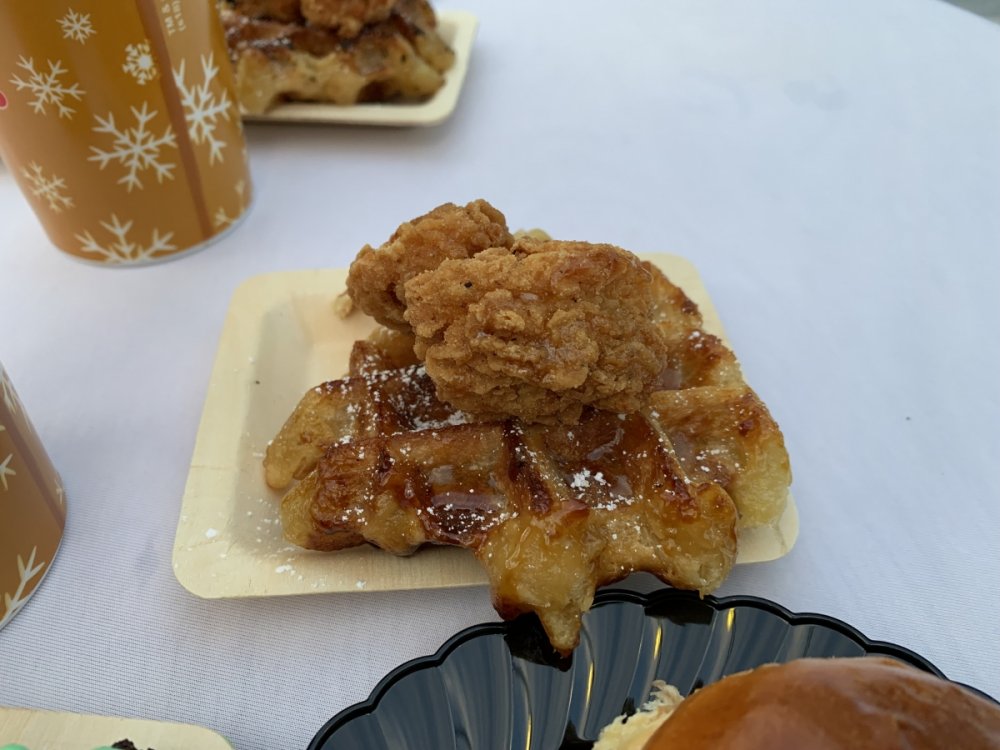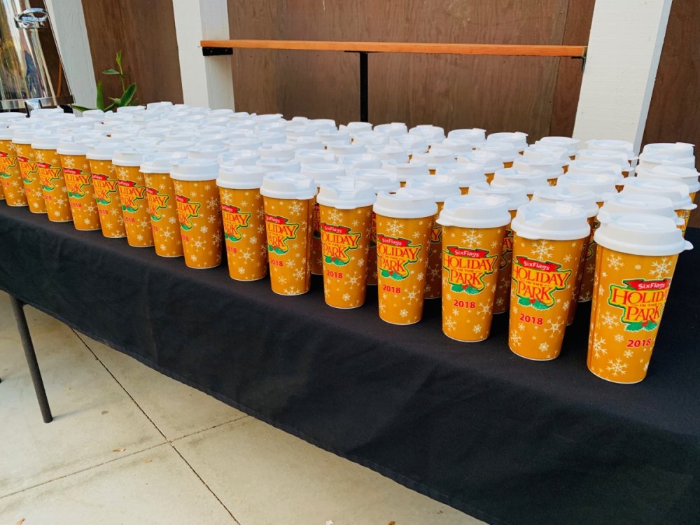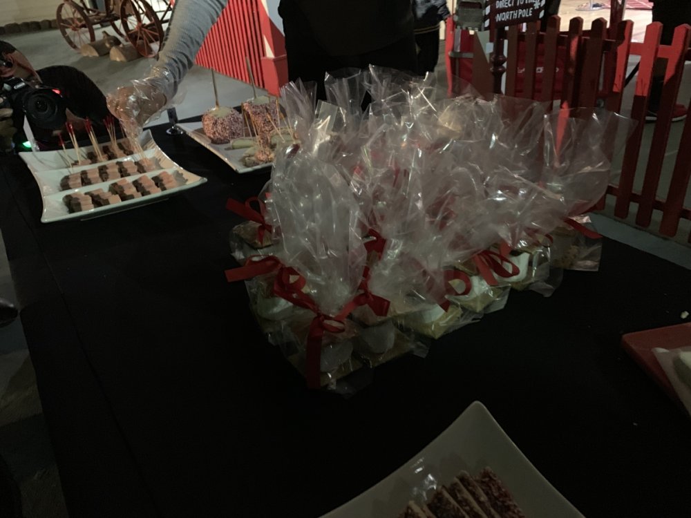 Holiday in the Park opening night!! Theme Park Review was invited to experience opening night of Holiday in the Park. We got to sample all the foods that will be available during "Taste of the Holidays Food Festival". It runs Dec. 15th-30th. I believe it will be one of those punch card type deals. SFMM really looks impressive this year. There are next to no spots that aren't lit up. New this year is Merry Lane in Metropolis. Huge ball ornaments dominate the landscape with colorful light shows. Of course it snows here too every 20 minutes I believe. Santa's Cottage is also new this year. It's located in front of Bugs Bunny World. Santa's there of course being it's his cottage, and there's crafts for children also. Santa even got to meet some Kardashian's while we were there tonight. On to some pictures! Food! More food! And More Food! This was my favorite. Chicken and Waffle. Real crispy tender chicken nugget. The waffle is like infused with syrup. So rich and delicious! Hot chocolate to go with a peppermint brownie and pork cranberry slider. After losing the world series bet to SFNE, Neal had to wear a Red Sox jersey all day along with naming Revolution to Red Sox Revolution. San Onofre at SFMM Orange ball Blue ball 4 balls Someone stepped on a plug. Entrance to the Gleampunk District S'Mores Peppermint Bark, and S'more Root Beer Cake Peppermint Pudding Parfait. Bacon Pecan Yams Prociutto Mac and Cheese. I think that's a typo, but that's what the card said. SFMM is selling these cute little guys for charity. A buy one give one. They will donate one with every purchase. There are a number of different ones to choose from. SFMM is selling these cute little guys for charity. A buy one give one. They will donate one with every purchase. There are a number of different ones to choose from. That's some of the most fun I've had at SFMM besides West Coast Bash. And I didn't even ride one ride! Not even the bus after parking in the gravel lot. There was a good sized car show in the parking lot, KROQ I believe had extended hours for their fans, and first night of Holiday in the Park had the place jam packed. Everyone seemed to be in such a good mood. It really was a great first night of Holiday in the Park. Look forward to getting back soon!! Big thanks to everyone at SFMM for their hospitality!