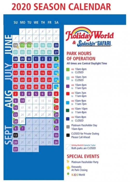 Holiday World is now opening June 17th to the public. Dry park only until July. Hoping for a July 4th waterpark opening. Platinum Season Pass holders will be able to start going on June 14th, followed by regular season pass holders on June 15th and then Summer Fun Pass holders on June 16th. If you don’t use your season pass by August, you’ll be able to defer to next year. The park will open at 50% capacity and will only allow those who purchase tickets online for that specific date to attend. They’ll increase attendance as they feel more comfortable. If you purchased tickets before covid-19, you can use them any day you choose. They’ve also added more calendar dates in August to increase their overall season to 82 days. Their plan for the dry park has been approved by the state, but is subject to change as the states plans change. Read more here: https://www.holidayworld.com/covid-19/ -