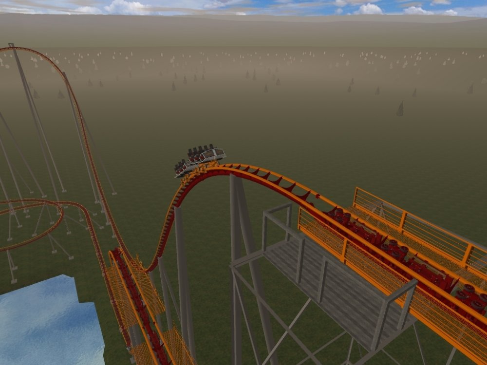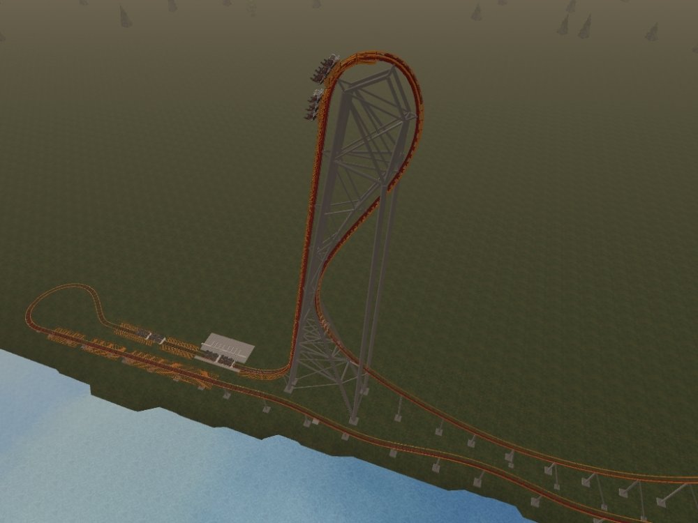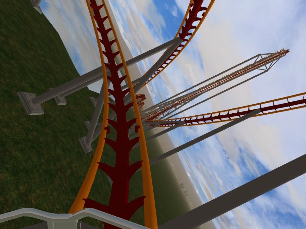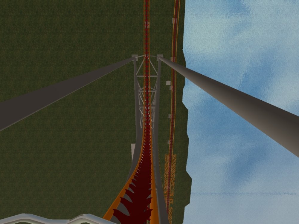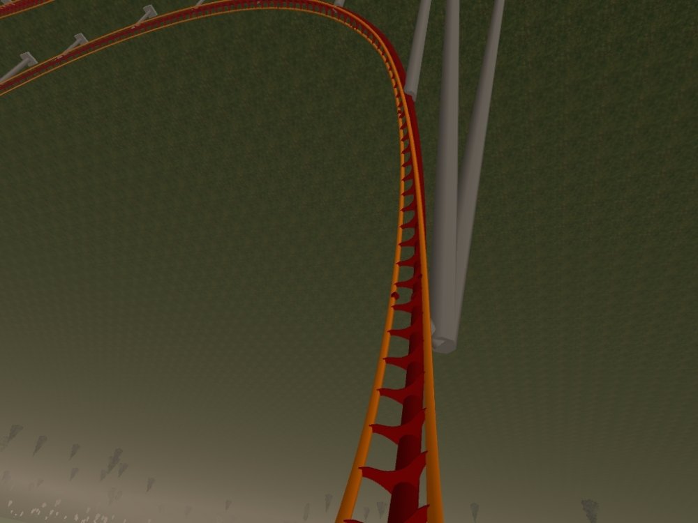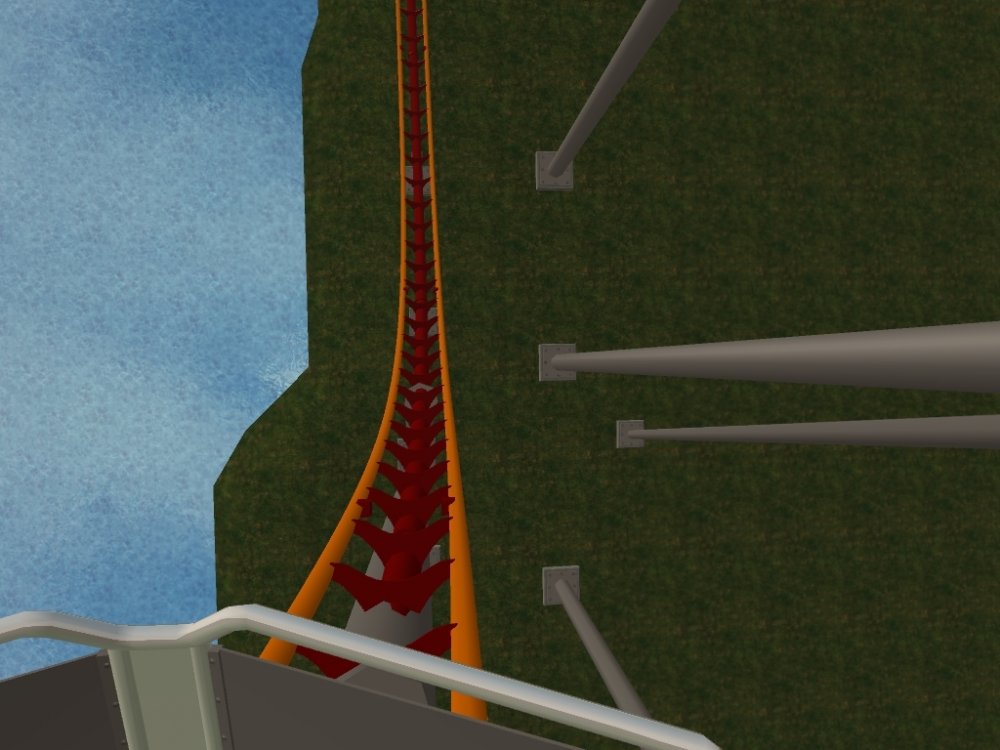 [NL1] Cmbgo12's Crappy Creations!Cmbgo12 replied to Cmbgo12's topic in Roller Coaster Games, Models, and Other Randomness Alright, so I currently have a massive backlog of coasters I was working on, including the Hybrid (Which might not get posted... ), a decent terrain woodie, and a few other miscellaneous coasters... However I have come up with a coaster that I feel will be really good once I get the scenery and buildings put in. So here it is With the temporary working name of Iron Man (<- This will also be what the coaster will eventually be themed too as well.) It's specs are currently: Height: 219 ft Drop: 208 ft Drop Angle: 120 Degrees (Second steepest coaster in the world after Takabisha if it were built today...) Max Speed: 74 Mph Length: 4475 ft Maximum G's: 4gs Designer: Maurer Söhne Type: X-Car (With on-board audio that will play Iron Man by Black Sabbath) The lift itself is also steep at 78 degrees... Magnetic Holding Brakes, gotta love'em Negative G's! Not-so-Negative G's! So, I looked I guess this element has never been done on a coaster before... Which is strange since it seems pretty simple, anyways I officially dub this the Kamikaze Dive and let it be known that I did it first... Nana nana poo poo stick your head in doo doo. Its pretty simple though, you go up and twist into the 176 degree banked, inverted top-hat-ish element, then you rotate, turn, and dive all in one motion to the right... It produces some killer zero-g if I say so myself. After the Kamikaze Dive theres a zero-g area into the first brake run, which actually accelerates the train so that it won't stall... Hey, guess what? I finally perfected my loop making skills! B&M-like cobra roll (To prevent stalling in the event of a E-Stop) Heartline Roll Second Brake-Run and then into a 90 degree drop (With more Magnetic Holding Brakes!) Helix, Airtime Hills, And then Final Brake Run. Overall I think this coaster is probably about a 9/10, because while it is forceful, smooth, and enjoyable it still isn't perfect. IMHO it has Volcano Syndrome, good concept but too short to be any good... Now for some on-ride pictures with limited commentary... So this is how it looks while in the Kamikaze Dive, its quite different from any other element I've come across... Very Noticeable custom support work... The 90 degree drop actually holds the train so that all row are facing straight down by the time the brakes release... The ending brakes were one of the hardest parts to set up... Since they're actually made up of like 5-6 different blocks to make it feel as realistic as possible... So anyways I hope you all enjoyed this coaster and want to see more, because I sure do have more! Feel free to comment with suggestions for theming or if I should change the name. So I guess that's all for tonight!