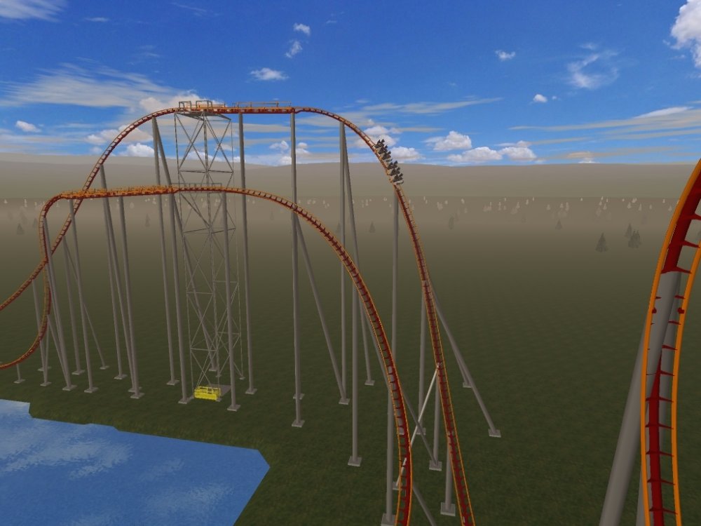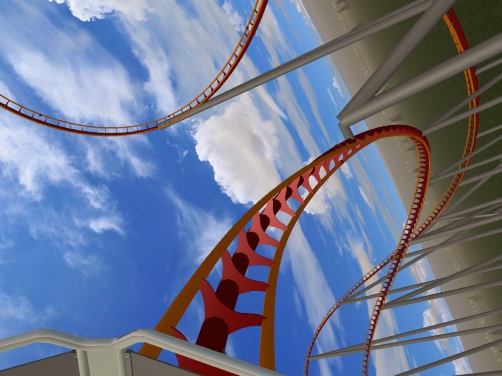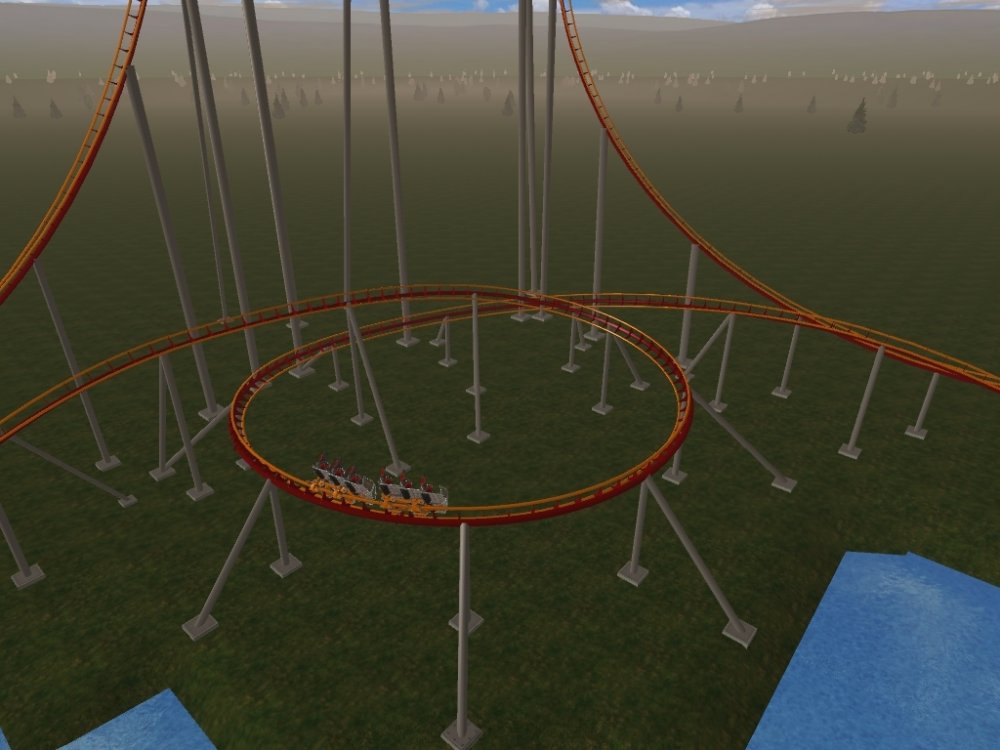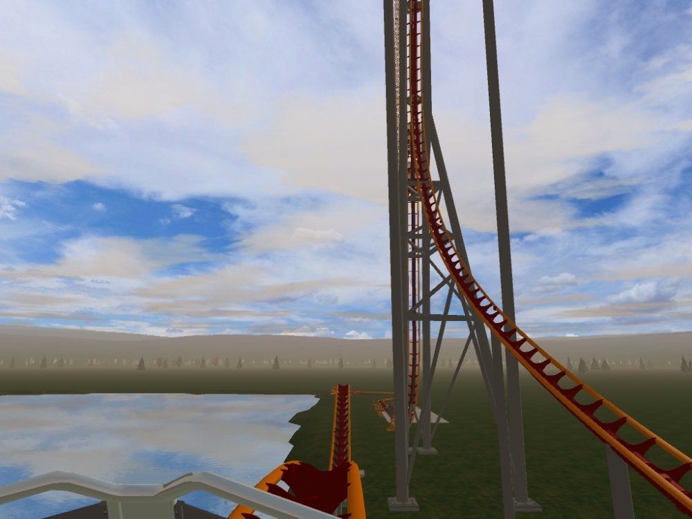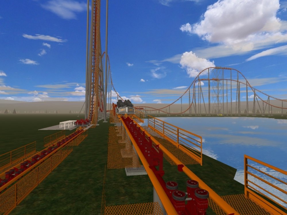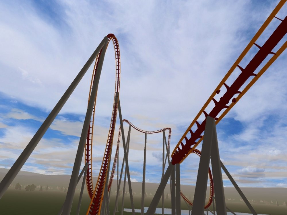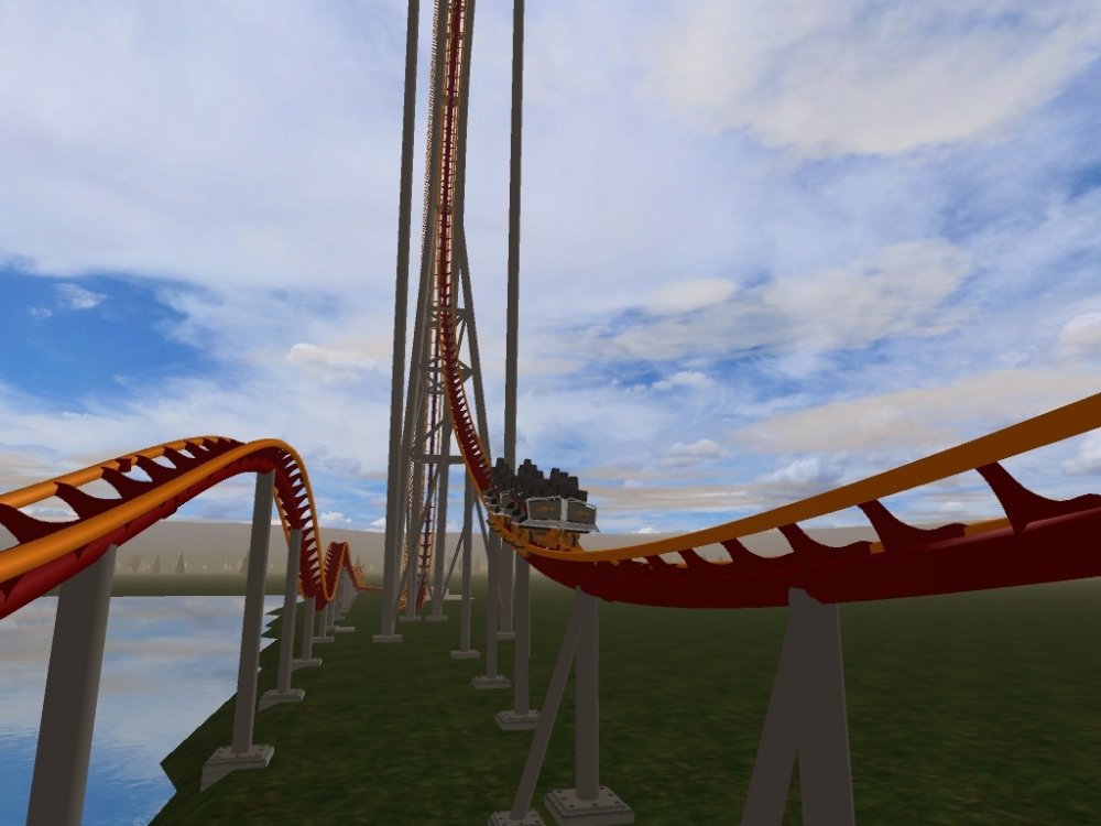 [NL1] Cmbgo12's Crappy Creations!Cmbgo12 replied to Cmbgo12's topic in Roller Coaster Games, Models, and Other Randomness Alright, so I currently have a massive backlog of coasters I was working on, including the Hybrid (Which might not get posted... ), a decent terrain woodie, and a few other miscellaneous coasters... However I have come up with a coaster that I feel will be really good once I get the scenery and buildings put in. So here it is With the temporary working name of Iron Man (<- This will also be what the coaster will eventually be themed too as well.) It's specs are currently: Height: 219 ft Drop: 208 ft Drop Angle: 120 Degrees (Second steepest coaster in the world after Takabisha if it were built today...) Max Speed: 74 Mph Length: 4475 ft Maximum G's: 4gs Designer: Maurer Söhne Type: X-Car (With on-board audio that will play Iron Man by Black Sabbath) The lift itself is also steep at 78 degrees... Magnetic Holding Brakes, gotta love'em Negative G's! Not-so-Negative G's! So, I looked I guess this element has never been done on a coaster before... Which is strange since it seems pretty simple, anyways I officially dub this the Kamikaze Dive and let it be known that I did it first... Nana nana poo poo stick your head in doo doo. Its pretty simple though, you go up and twist into the 176 degree banked, inverted top-hat-ish element, then you rotate, turn, and dive all in one motion to the right... It produces some killer zero-g if I say so myself. After the Kamikaze Dive theres a zero-g area into the first brake run, which actually accelerates the train so that it won't stall... Hey, guess what? I finally perfected my loop making skills! B&M-like cobra roll (To prevent stalling in the event of a E-Stop) Heartline Roll Second Brake-Run and then into a 90 degree drop (With more Magnetic Holding Brakes!) Helix, Airtime Hills, And then Final Brake Run. Overall I think this coaster is probably about a 9/10, because while it is forceful, smooth, and enjoyable it still isn't perfect. IMHO it has Volcano Syndrome, good concept but too short to be any good... Now for some on-ride pictures with limited commentary... So this is how it looks while in the Kamikaze Dive, its quite different from any other element I've come across... Very Noticeable custom support work... The 90 degree drop actually holds the train so that all row are facing straight down by the time the brakes release... The ending brakes were one of the hardest parts to set up... Since they're actually made up of like 5-6 different blocks to make it feel as realistic as possible... So anyways I hope you all enjoyed this coaster and want to see more, because I sure do have more! Feel free to comment with suggestions for theming or if I should change the name. So I guess that's all for tonight!