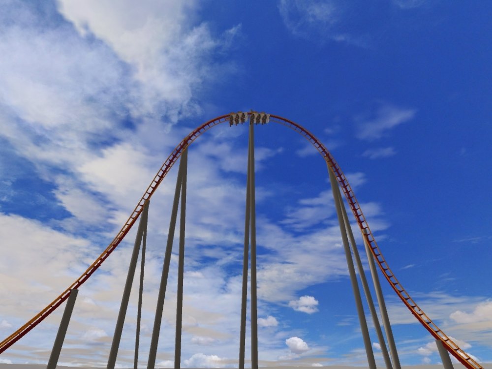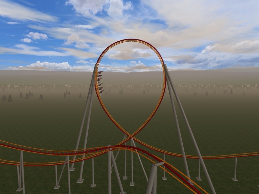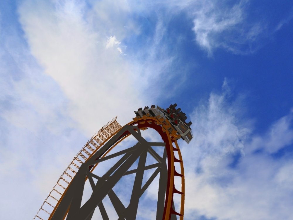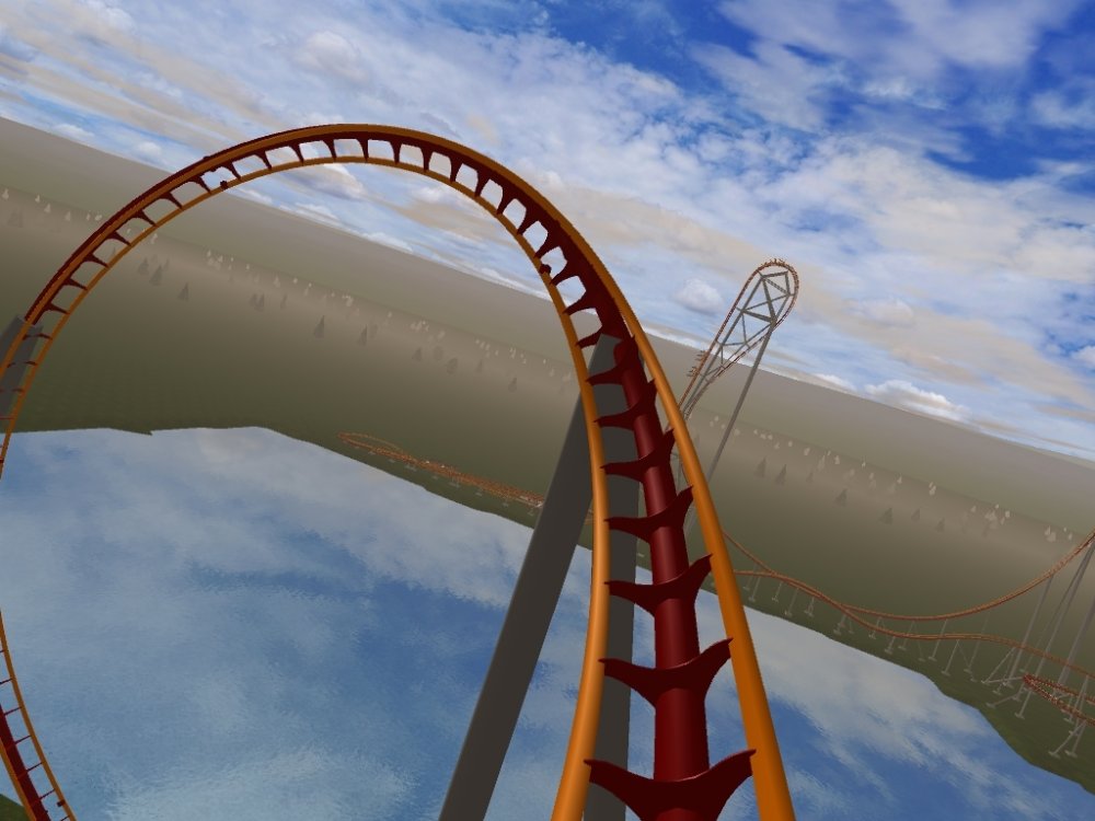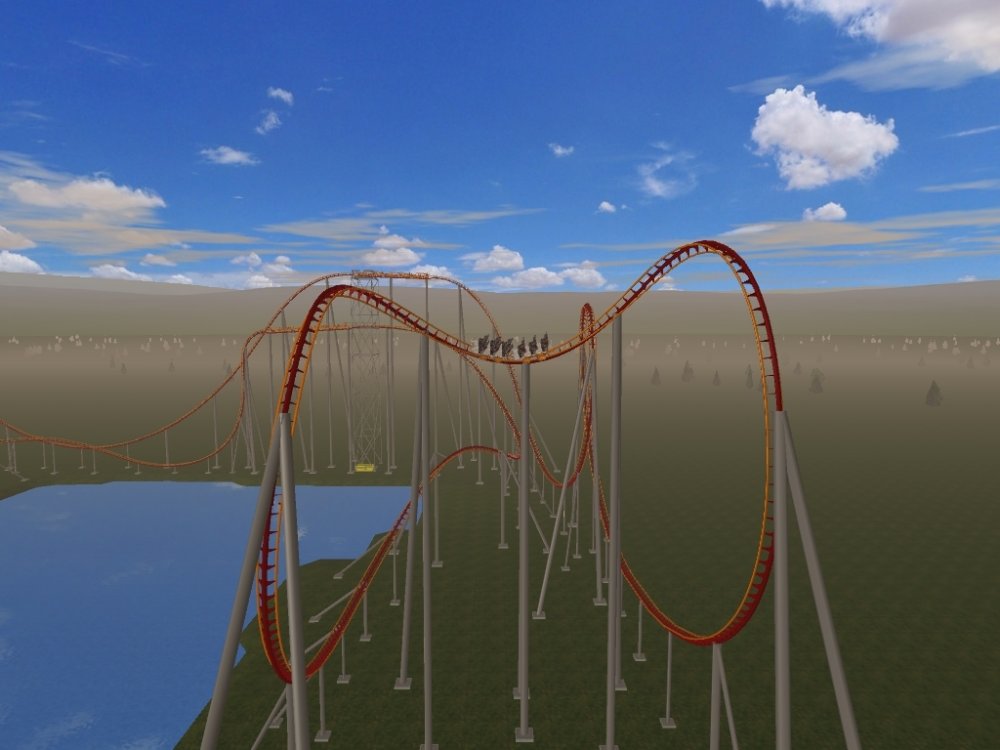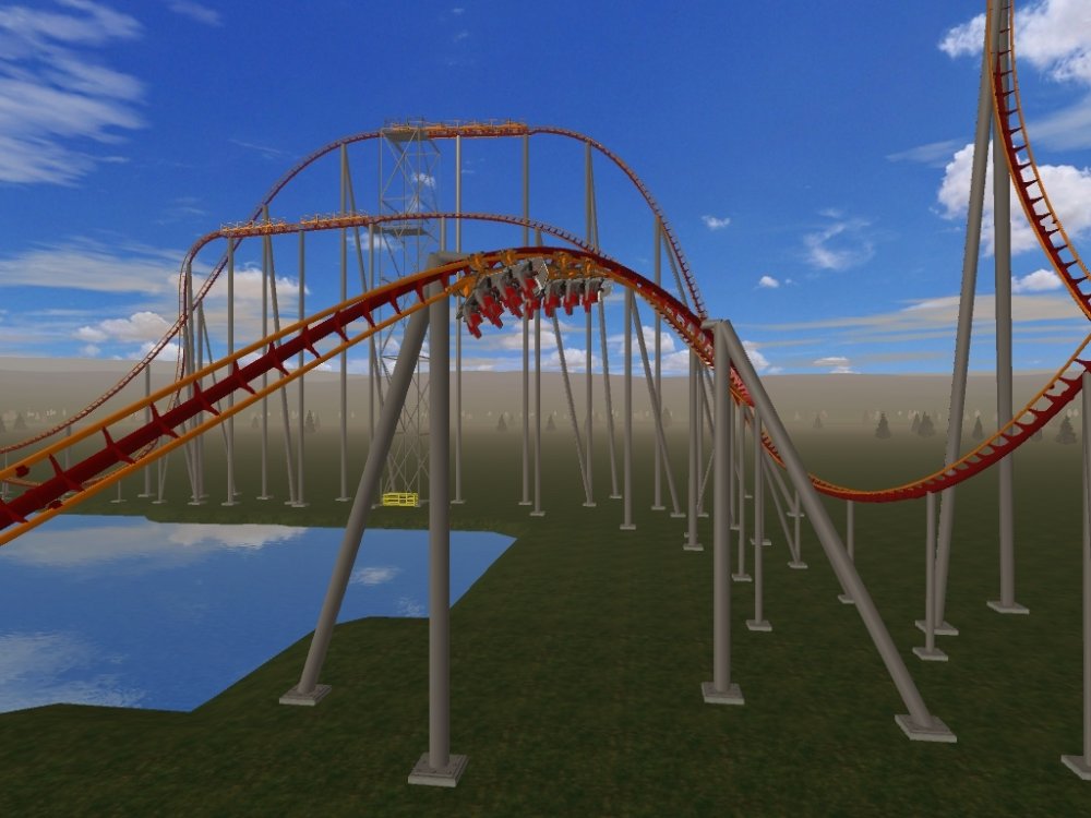 [NL1] Cmbgo12's Crappy Creations!Cmbgo12 replied to Cmbgo12's topic in Roller Coaster Games, Models, and Other Randomness Alright, so I currently have a massive backlog of coasters I was working on, including the Hybrid (Which might not get posted... ), a decent terrain woodie, and a few other miscellaneous coasters... However I have come up with a coaster that I feel will be really good once I get the scenery and buildings put in. So here it is With the temporary working name of Iron Man (<- This will also be what the coaster will eventually be themed too as well.) It's specs are currently: Height: 219 ft Drop: 208 ft Drop Angle: 120 Degrees (Second steepest coaster in the world after Takabisha if it were built today...) Max Speed: 74 Mph Length: 4475 ft Maximum G's: 4gs Designer: Maurer Söhne Type: X-Car (With on-board audio that will play Iron Man by Black Sabbath) The lift itself is also steep at 78 degrees... Magnetic Holding Brakes, gotta love'em Negative G's! Not-so-Negative G's! So, I looked I guess this element has never been done on a coaster before... Which is strange since it seems pretty simple, anyways I officially dub this the Kamikaze Dive and let it be known that I did it first... Nana nana poo poo stick your head in doo doo. Its pretty simple though, you go up and twist into the 176 degree banked, inverted top-hat-ish element, then you rotate, turn, and dive all in one motion to the right... It produces some killer zero-g if I say so myself. After the Kamikaze Dive theres a zero-g area into the first brake run, which actually accelerates the train so that it won't stall... Hey, guess what? I finally perfected my loop making skills! B&M-like cobra roll (To prevent stalling in the event of a E-Stop) Heartline Roll Second Brake-Run and then into a 90 degree drop (With more Magnetic Holding Brakes!) Helix, Airtime Hills, And then Final Brake Run. Overall I think this coaster is probably about a 9/10, because while it is forceful, smooth, and enjoyable it still isn't perfect. IMHO it has Volcano Syndrome, good concept but too short to be any good... Now for some on-ride pictures with limited commentary... So this is how it looks while in the Kamikaze Dive, its quite different from any other element I've come across... Very Noticeable custom support work... The 90 degree drop actually holds the train so that all row are facing straight down by the time the brakes release... The ending brakes were one of the hardest parts to set up... Since they're actually made up of like 5-6 different blocks to make it feel as realistic as possible... So anyways I hope you all enjoyed this coaster and want to see more, because I sure do have more! Feel free to comment with suggestions for theming or if I should change the name. So I guess that's all for tonight!