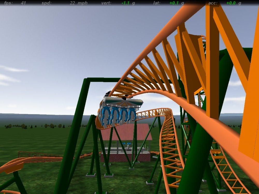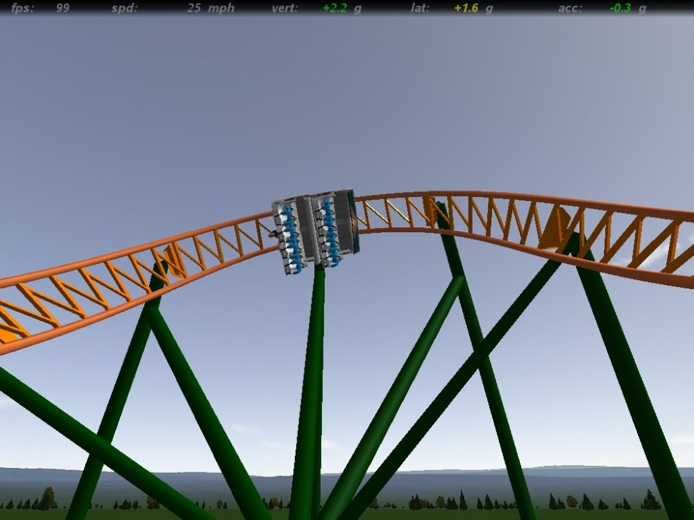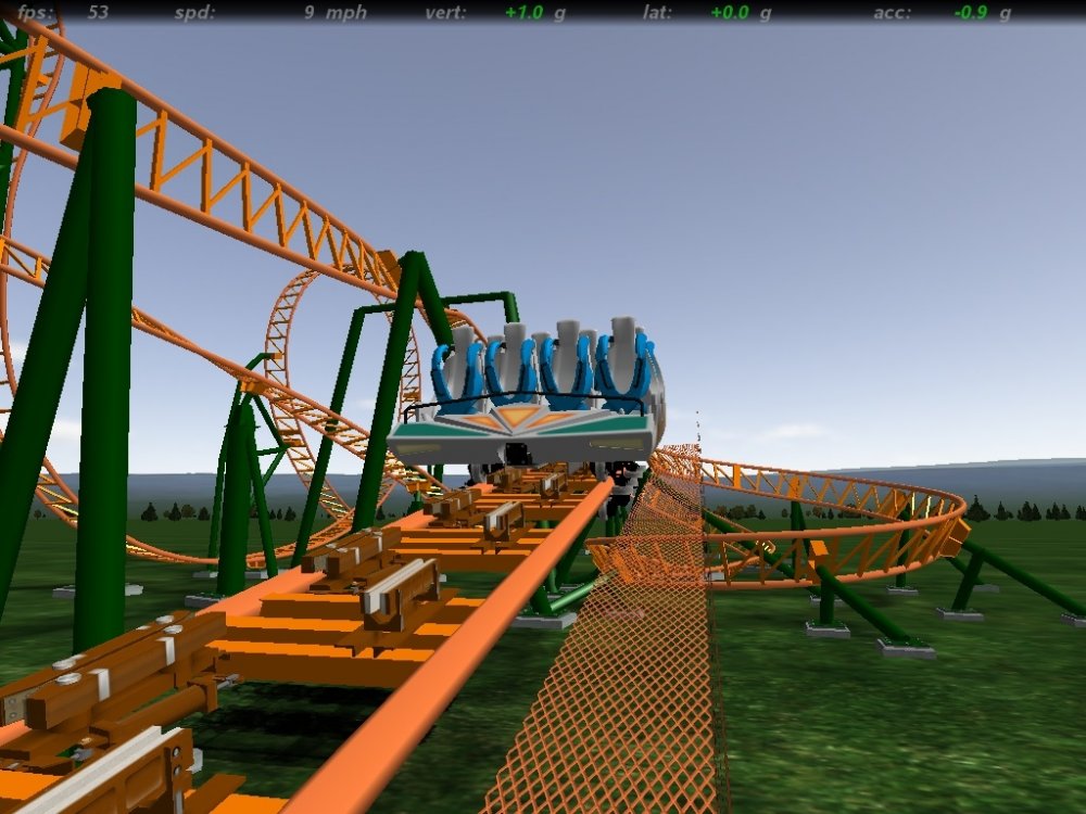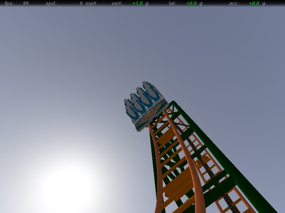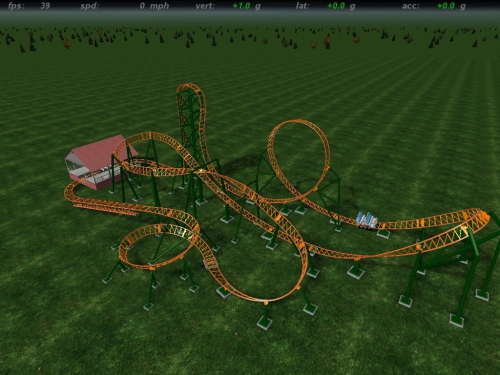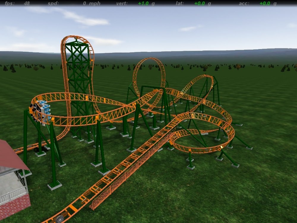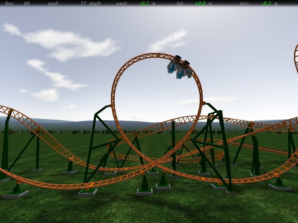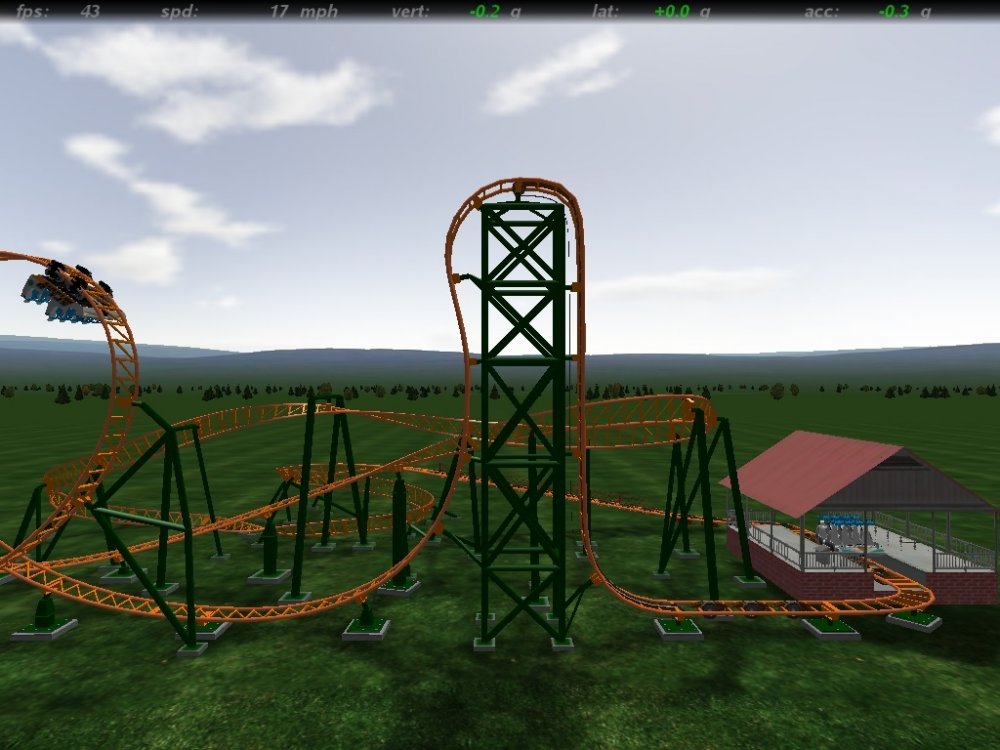 19. Today is Sunday and it's super dreary and gross outside... Well, might as well spend it making a NL1 coaster! So I present to you a pretty basic Gerstlauer Euro-Fighter. This one is a custom model because I screwed up making a 320+ and just rolled with it, I mean this is called Cmbgo's CRAPPY creations for a reason! Anyways, I also figured out how to make custom supports in-game so be prepared to see more custom supports on my coasters and not just generic looking junk. For those of you who know anything Euro-Fighter 320+'s you will instantly see the mistake I make I made... For those of you who don't know that model very well, there is supposed to be an Immelmann where the Over-Banked turn is Ehh, I kinda like it though... Oh, that lift hill 90° of beauty with 97° of awesome! (Now with custom supports ) Going up? Coming down. Loop-de-loop... Defying the laws of physics with unrealistic supports. 90° banked turn. This turn was a serious pain in the behind, because originally I had it too close to the station and the supports would cut into it so I ended up moving the station back like 4 ft. Hangtime! (Supposed to be zero-g ) High-speed turn into a high-speed S-bend! Somehow the smoothest part of the entire ride HELIX (of death). For some reason this helix pulls a ton of G's... Not really unrealistic when you consider the real-life counterpart, but still weird since I put a ton of effort into making it smooth and comfortable. Magnetic brakes! Lookin' good Aerial View. Welp, not too bad for a third coaster! Still tons of room for improvement, but still OK! This coaster won't be going on the game exchange unless someone really wants it, but I hoped you all enjoyed this little project!