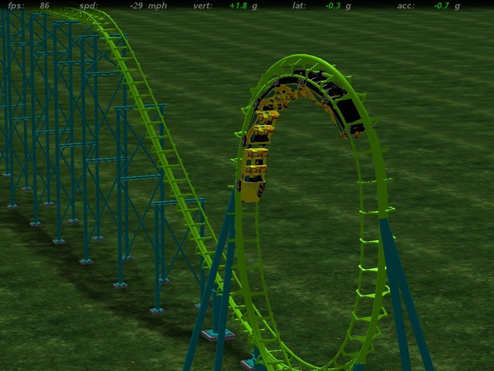 As many as possible before it gets boring Alright so today I bring you a recreation of Sidewinder at Elitch Gardens, Denver, Co... I had written out this long thought-out post, but unfortunately the website reloaded and it deleted most of the post . So this coaster will just be Screen-shots, however if your interested in the coaster or want to see it in action I'll upload it to the Game Exchange. So this recreation is unique in the it is realistic, the first launch pulls .65 G's, the max speed is 45 MPH, max G-force is 4(.3), and the height of the coaster is 56.45 ft. Some of those are just happy accidents, but in any case it turned out beautifully. The loop is a little messed up though, so if someone could give me some tips on how to work with inversions I'd be really grateful. Anyways here are some screenshots... Enjoy! From above Side View, looks really good far away First Launch, this one is a winch (Chained) launch while the second one is a drive-wheel launch/brake combination Another overview, this is my favorite Screen-shot of this coaster Shows how messed up the loop is, seriously, if you get how this game works and could give me some pointers I'd make my day (or night) At this angle the loop looks pretty good . REALISM The second launch... Oh yeah, at this point the coaster also crashes about 1/50 times due to how the game works. Its a small bug, but if you reload the coaster typically it won't do it again for a while. The loop also looks good here, maybe I didn't do too bad of a job on it? The final pop of airtime going into the brakes/station/launch... Well that's all for this coaster, if you liked it it'll be in the Game Exchange. If you didn't comment and say so and I'll try and make something more difficult next time -