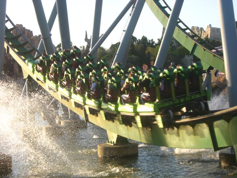 Helloooooooo, TPR! As I sit here wearing my awesome Club TPR lanyard (plausible) and writing this TR by hand with my new Club TPR pen (less plausible), I look back to about five years ago when I first signed up for this online madness and don't even know where to start to thank all the awesome, equal-minded (see: clinically insane) people I've met since then. Then, because I'm old, I immediately forget everything before 2008 and become very confused. Also, I yell at kids to get off my dorm room lawn, somehow. That having been said, here's some pictures -- I think -- of my recent Easter Saturday trip to Universal Orlando. Read it. Love it. Buy the home version. "So Easter's tomorrow. Wanna celebrate Mardi Gras with the Beach Boys tonight?" "Sure. Might as well work in some last bits of sin before church." Quota met. Thank you, and good night. So, as is clearly shown, the crowds were rather... crowded the day before Easter. Combined with the Beach Boys concert later that night, I was surprised the lines weren't even longer. Largest wait time I saw was 110 minutes for Rockit. Speaking of which, I might as well get these outta the way. The empty seats and the timestamp remind me that the party I was with entered the park around 11am, and Rockit was testing until just about 3pm. Was this taken outside of the park? YES! Do I not care in the slightest? YES! Stainless steel? YES! [/appliancedirect] So I heard that Freestyle Music Park is finally building that 500-footer everyone wants. "Welcome to a magical journey through my mouth." I actually prefer this over BTTF (yes, you heard that right) just because it's so damned hilarious. Even the non-Simpsons fans in the group were laughing the whole time. So between my summer visit to Chicago and my friend's love for Jake and Elwood, I've become a big fan of the Blues Brothers over the past year or so. Which was good, 'cause I'd totally forgotten they had the show here until I stumbled upon it. Go Aretha/Ray! "And we would especially like to welcome all the representatives of Illinois's law enforcement community that have chosen to join us here in the Palace Hotel Ballroom at this time..." All right. So the Bluesmobile is nice 'n all, but for certain people like myself, it fails to compare to... THIS. Cue the Delorean jokes; I still want one. Looks a little beaten up, though. It's still good, it's still good! "They see me rollin', they hatin'..." "If my calculations are correct, when this baby hits Happy Hour... you're gonna see some serious sh*t." Oh, also... bike with flux capacitor? Slightly less awesome as the car, but awesome all the same. Highly impractical, but still... well, you know. This high-quality upskirt pornography can only mean one thing... ...That my group only bought a one-park pass and that I went to take advantage of my free-Universal-Express-after-4-pm perk included in the Premium Pass over at IoA and take some pictures of Pottersville in the process. Yep. And again, while we're at it... Hulk ANGRY! Hulk SMASH! Hulk MONTAGE! SKLOOSH! (And yet, is still a Dan-approved water interaction.) Mess O' Track Half O' Loop Sunset O' Awesome TUNNEL O' TAKING JJ Intamin credit Sounds like he got seconds. Since you've seen these all before ad nauseam, the following Wizarding World captions will contain failed Harry Potter pickup lines. No. 1: Have you been using the Petrificus Totalus spell? Because you've made me stiff. No. 2: I may be a Gryffindor, but I'd sure love to Slytherin you. No. 3: Have you been using the Accio charm? 'Cause I've been coming to you every night. No. 4: I'm not wearing an invisibility cloak, but do you think I could still visit your restricted section tonight? No. 5: I must have had some Felix Felicis, because I think I'm about to get lucky. No. 6: Interested in making some magic together? My wand is at the ready. No. 7: This chimney should've taken advice from No. 1. ...OK, I'll end the alienating of the non-fans here, because a thought occurs: With Jurassic Park now adjacent to Hogwarts, this squares the great presence of John Williams within IoA. Time for a great and completely accurate lesson in Canabian history! Fun Fact: All houses in Canabia are painted blue, except the explosive ones. FREEBIRD! "I heartily endorse this event or product." Godspeed, Wimpy. Godspeed. It's time for DOOOOOOOM. Also, it's about 6:20. Ladies and gentlemen... the backside of Phallic Lighthouse. OK, so skipping ahead about an hour, we find ourselves after the surprisingly great Mardi Gras parade and about to watch the Beach Boys take the stage. Technically this was my first-ever live concert (which, considering the band, makes me feel even older, I guess). They did quite awesome, and featured John Stamos on drums, which was cool too, I guess. And, what the hell, some evening Rockit pics to round out the set. Special cameo appearance by the... well, I might as well just type it out, the ringy dingy ding-a-ling dings. And that's all from Universal Orlando, the place where dreams come true! Wait... crap. Once again, thanks for reading. You may now retrieve the sanity you left with a non-rider. Please exit all the way through the exit.