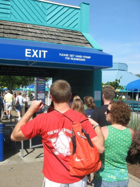 Couple of friends (henceforth referred to as their super-secret code names, 'Mat' and 'Jim') and I decided to try to hit up CW before I left for the land of hurricanes and year-round theme parks. Lines were pretty long for a Wednesday, though not as bad as I thought they'd be when I saw the lines at the gate! Got on 7 rides in 6 hours: Drop Tower, Wild Beast, Vortex, The Bat, Stunt Coaster, Behemoth and Time Warp. Still a great time, though, as I got to witness the popping of Mat's park/coaster cherry and Jim's first time to CW. Very little photos compared to my usual bandwidth onslaught -- and most of them are repeats -- but I hope you can get past not having your page load for eternity and enjoy anyway. And finally some idiots who ruined a perfectly good duplicate shot of the entrance plaza. Overall, despite the crowds, we had an awesome time. Thanks especially to Jim for driving 8 hours total for only 6 hours at the park, though we got done most everything we wanted to anyway. Did Time Warp next and called it a day. For all the brake run/clamshell lap bar/stadium seating enthusiasts. Behemoth = better than normal sex. Front row of the second car for us today. I prefer the back but the op called out for 2 riders so we took the spots. (Mat didn't ride, but I'm surprised he went on all that he did; hell, we started out the day with the one ride that still freaks ME out.) If this was really L.A., you'd see 16 Mini Coopers stuck in traffic and 3 cops sitting on the transfer track. "I dare you to find someone else who has this shot." --Me Our ERT in the multi-faith room was impromptu enhanced by a Muslim talking to us for about 10 minutes on the faith. I actually found him interesting -- he wasn't pushing his religion so much as explaining it -- but the fact that I dragged my friends in there for one picture and a quick sit-down on the bench and got an informative lesson is still hilarious. I still think if someone can line jump like this, he practically DESERVES to. Clench and squish! Catch car love Think we waited an hour for the Bat. Eh, not worth it. Either Mat or Jim made a comment that it's almost boring to keep watching for that long, so you already know exactly what'll happen when you're on it anyway and it sets itself up for disappointment. Bought some foot-long hot dogs (not from Scooby) and went in line for Vortex. Posted an hour, waited half that. Felt the brake run rocking and wondered if Jahan was riding in the back. I present to you the most money I've ever found on the ground. See? It pays to stare at the floor all day! Emos much be rich! I felt slightly guilty that this was Mat's first coaster credit, but strangely enough, Jim liked it for the headchoppers. My favourite part was the brake run. You called? (Realized that that was the second time I'd ever worn that shirt; I'm sure you can guess when the first was.) Disregard that last statement! DISREGARD! Getting the entire ride in one shot is for losers. Jim kindly draws attention to a rather unfortunately-placed tail. I find this rather ironic, as I keep calling him Shaggy all the time 'cause of his goatee. (Yeah, I know you're reading this. IT'S OUT THERE NOW. I WIN.) I dare you to find someone else who has this shot. This is the exact moment that my appreciation for ERT increased tenfold. It took us a half-hour to get INTO the park, with all gates open. Keep in mind this is a full hour after the park opened. Well, it's no photo walkback, but it'll do. I less-than-3 Behemoth. So, as I said before, it's just over a year since the greatest day of my coaster-lovin' life, Behemoth Bash. While the wait was about an hour for one ride today (as opposed to last year's unlimited rides in two hours), it was still so, SO worth it.