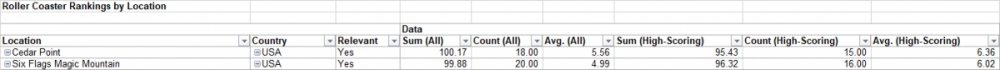 An interesting development happened related to the Roller Coaster Rankings spreadsheet this weekend. For the first time since I created it in May 2009, Cedar Point (thanks to the opening of Steel Vengeance) overtook Six Flags Magic Mountain. -