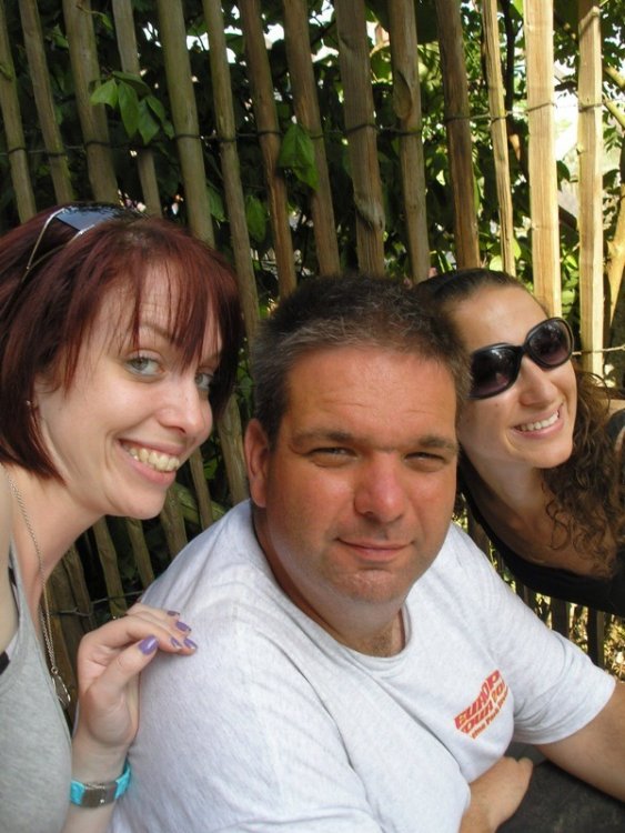 ^ Oh man - I bet that watching the Germans play in that little outdoor place would have been really fantastic! Park 7 - Efteling We had a really terrific time on Saturday night at the beautiful Efteling hotel. It was a cool night, so we spent much of it sitting outside in the bar.. Hanno was buying shots of some really thick and sweet orange stuff which I didn't care too much for, but Steve then showed up with a round of "Baby Guinesses" which are basically B52s - yum After a short nap we were all boarding the bus for Efteling, a massively spread-out park with some really odd character theming. First up for the day was Exclusive Ride Time on their "Flying Dutchmen" water coaster .. This was really really fun. All the effects were working, and it's just just a very cool ride. Part dark-ride, part coaster, part flume, I enjoyed this far more than I was expecting; however this was overshadowed by the fact that we also had ERT on George And The Dragon. With all the amazing things we did on this trip, we ended it with ERT on pair of amazing racing/dueling wooden coasters which had just opened 3 days earlier! Of the world-wide coaster community, we were among the first to ride it - very cool. This coaster was designed and built by my favorite wood-coaster design firm: Great Coasters International (GCI). Simply put, I am a total and complete GCI fanboy, so I was in utter GCI heaven The coaster is really awesome, with each side offering a unique layout, with patented GCI curves and pops of air. The theming is of course stunning, and the ride makes a big deal of which side wins (Fire or Water) with a banners in the station. This was another insane ERT session (following Black Mamba the day before), and we were all quite exhausted by the end. Why is ERT so tiring? You're really just sitting in a chair?! By 10am the park opened and ERT was over - Awww. The last ERT of the trip, too. Sadness. However next to Dragons was the horrible Vekoma torture device called "we hate humans and will hurt them all". Actually I don't recall what this ride was called, but it wasn't great. Steph, Bob, Ben and Doug return to the station after a particularly painful ride. We actually had a Vekoma engineer on the trip with us, and we constantly gave him a very hard time about how rough those rides are - don't worry though, Erik is a very good sport! We were a bit of a smaller group today (probably smallest of the whole trip), and some times we were down in the single digits; however we still had enough people to fill an entire rapids boat. I didn't ride of course, because I didn't want to spend the rest of the day squelching around the park, but most of the group did. "Bag Bitch" duties fell upon Renee and Lou, while everyone was on the rapids and I was taking photos. Turns out it was a fun ride and not even terribly wet. There were some very strange, interesting and often creepy characters wandering around Efteling, and Lou got a full dose of this when they decided to completely surround her. Europeans have very different standards than the US, as evident by the tea-cups ride that is themed to cannibals! Sexy Lou poses with sexy Larry's sexy hat. At the German fair on Friday, Larry won some bubble mixture. He had actually forgotten about them on Saturday, but today he and Lou had hours and hours of fun with them. Seriously, I will try to bring bubbles with me on all park visits from now on, as you have no idea the utter filth that a purely children's toy can bring out in people ... Most of my photos from today were actually from the Hot Bubble Action, however I will limit the ones I post.. Renee was pretty much a walking zombie all day, much like I had been the day before. When we stopped to checkout the "Water Organ", she took the advantage to have a small nap. And why not? I mean it was cool in there, dark, with music, and the sound of running water.. There were several carousels at Efteling, but this is the main one. It is actually in-doors, and has a working pneumatic band organ. Many of us like carousels, and this was in fantastic condition, so we decided to take it for a spin. We were still climbing around around and taking photos when it started up, but that's ok because it's just a carousel right? WRONG! This thing hauled ass! It reach full speed quickly, and by the end of the first revolution we were all scrambling to secure our cameras and really hold on. Action on the horses was fantastic, with a lot of movement and vying for position. Corey, Russ and Steve.. Lou and Corey.. Anth and Russ. (Russ is very tall.. ) Remember when I said that European parks have different standards to the US ones? Well Efteling has a sh*tting donkey. Seriously. You put money in a coin-slot, then the tail raises and a prize (a souvenir token) literally shoots out of his butt. The kids were in hysterics, as were the TPR members, and I bet that the sh*tting donkey made a fortune today. (How often do you get ton say THAT?!) More Hot Bubble Action .. Steve was really getting into it! Ice-cream gluttony continued as Larry and I each picked one up. The entire group followed and it turned into a delightful ice-cream eating break, in the shade of some beautiful trees. Those chocolate "sprinkles" were weird, they seemed more like Rice Crispies and were quite good (although I preferred the chocolate dipped ice-cream at Phantasia land on Saturday). Also Larry had been my room-mate on the trip, and he was just awesome. Larry gets some lovin' from Lou on the swinging ship ride. This was quite amusing because Larry said (upon seeing the ship) "I wish more people liked swinging ship", well I said that I love them, then Lou said the same thing, then the Brits etc .. For some reason we all thought that no-else likes those rides, so none of us even suggested riding it! Well we were on that ship on the very next cycle, and it was of course super great. I know it's all out of focus and stuff, but I still really like the expressions on both Lou's and 