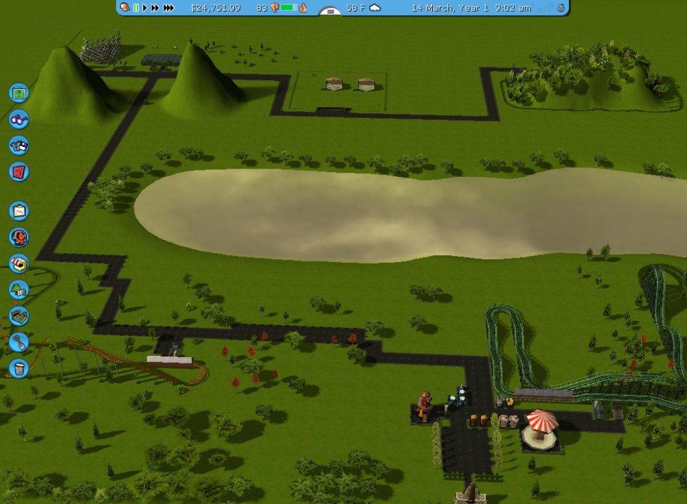 Hello again, This is Jacob Jones here with a new park of mine. (Let's hope it lasts longer than Smashing Heights.) So, you're probably wondering.....WHAT IN THE BLUE HECK IS THIS PARK CALLED? Well, I'm glad you asked. It's called....... I know, bland name. What are you gonna do? And i've added a good selection of rides for young and old. Mission: Avalanche This beauty called Mission Avalanche is a race to save yourself from the avalanche! (the first drop is the start of the avalanche) You twist and turn through 45mph of speed, and just over 2,000 feet of track! (2,036 ft) Free Fall Free Fall plunges you up 67 mph up a 150ft tower and back down again! There's also a Zero G Trampoline, but that's not an big ride. Medusa is basically an octopus ride, Rocking Tug just rocks ya around and Tilt A Whirl is.......well.....a Tilt a Whirl. Ring of Fire Back to the major rides, The Ring of Fire wil spin you round so hard, you might never know which way is up....or down again. Catterbird Catcher If you don't like thrill rides or are not the exact hide to ride the big rides, fret not. We have a small fun little rollercoaster just for you. Don't worry, it's only 27mph. Storm And now, the moment we've all been waiting for. The crown jewel of Florida Escape, clocking in at 44 mph with 3 inversions and at 2,187ft.......STORM! *chromes* We're not worthy....we're not worthy. And those are the rides of Florida Escape! Until next time, Keep reading for future updates!