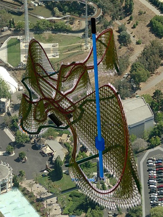 I hope the supports for the ride over the park's entrance aren't too intrusive. Nothing uglier than supports sporadically in the middle of a walkway. The portions of the ride that go over the gate itself look more or less symmetrical so hopefully it doesn't look too bad, and it looks like the structures for the keyholes will also act as aesthetically pleasingish support for the ride. It also seems that Space Spiral being taken out really had nothing to do with this ride. -