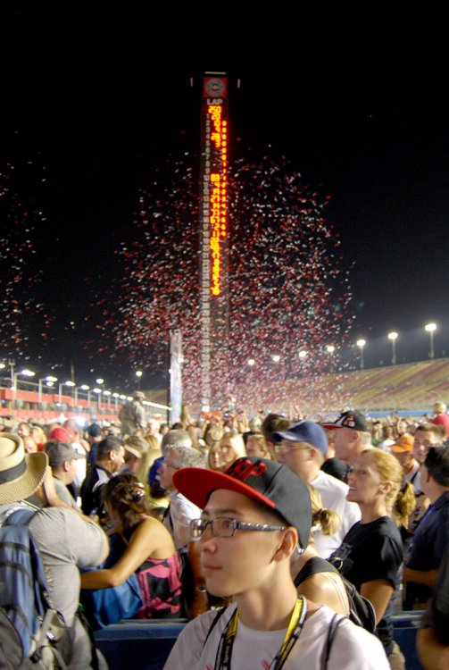 This past Saturday was the final Indy Car race of the season. I guess because of the crash last year in Las Vegas they opted to go to the AAA track in Fontana, CA instead. I should start this TR by saying that I'm not a fan of any USA racing series, and know little of Indy Car. My parents have been to the Indy 500 multiple times (we have family in Indianapolis that were on the Indy 500 board), but I have never gone. I am a fan of many European series's however, from a young age I have been a World Rally Championship fan and in the past couple years become a fan of Formula 1. My Mom invited me to the race though (she is an avid NASCAR and Indy fan) and so I went. This was the first major series race I have been to, I had been to a NASCAR Busch series race at Sonoma (friends Dad got free tickets for buying gas or something) and I went to F1 Friday practice at Indianapolis while visiting family in 2005. I wasn't a F1 fan at the time, so I didn't care about not going to the race, but in retrospect I'm glad I didn't anyways because that was the year of the tire fiasco. Here is a wiki link if nobody knows what I'm talking about http://en.wikipedia.org/wiki/2005_United_States_Grand_Prix. On with the TR! The Sacramento Airport has a new terminal that isn't even a year old, and that is where Southwest is now. The check in area has this crazy polygonal rabbit thing. After landing and getting the rental car I drove out to Riverside where I was staying for the night. Anytime your driving in CA for an hour or more a In-n-Out stop is mandatory (for me anyways). Stopping somewhere like this is pretty mandatory also. They had some other things going on outside the track, but we arrived a bit too late to really look at much of it. What is crazy is the parking lot opened at 7am and the race wasn't till 5pm. There were some people tailgating, but not that many. They had a little drifting area setup to promote Formula Drift. I think at some Indy Car races they actually have competitions but here they were just doing it for fun. People were lining up to get rides. I don't know how much it costs or anything but they just did a quick figure 8 then swapped passengers. They also had an area setup for motorcycle jumping but I never saw anyone over there. There was a bunch of booths you could visit where you could get free pens and that sorta crap. Stuff I'm not interested at all. The AAA booth here was giving out soda can koozies, good thing security didn't allow metal or glass drinks inside. We went up to our seats in the stands, and off the back you could get an overview of the stuff going on in the parking lot. This RC truck course must have been entertaining. This guy was getting some EXTREME!!! closeups. There are currently 2 former F1 drivers in the Indy Car series. Takuma Sato who's best and only podium finish in F1 was 3rd at the 2004 USGP, and former Ferrari driver Rubens Barrichello with 68 F1 podiums including 11 wins. Rubens' last year in F1 was 2011, and he hopped right into Indy Car for the 2012 season. They had this truck/stage out on the track which is where they introduced all the drivers and had some other things going on. I think in this photo they are about to do some taiko drumming, I have no idea why. Of course with any major sporting event, a jet flyover is mandatory. Here are the starting positions for all the cars. The only one I remember is that Rubens is number 8. Takuma was either 14 or 15. Here come the cars to start the first lap of the race. One thing (besides everything else) that I like about F1 over Indy is that F1 does standing instead of rolling starts. The big battle for the championship was between Will Power and Ryan Hunter-Reay. Will Power was who everyone (my Mom at least) was hoping would win. Last season I guess he would have won the championship if it weren't for them canceling the race after the crash. He would have won this year if he finished better than 6th (I think) but not even 1/3rd of the way though the race he basically took himself out by hitting the wall. So close yet so far once again. Since the race started at 5pm it got dark pretty quickly and taking photos became pretty hard. Since I didn't have a tripod I just started spraying and praying that one of them wasn't blurry. I had been paying attention to Rubens and rooting for him to place well, but shorty after Will Power crashed his car started to noticeably go slower and then suddenly his car was kinda on fire. He was up to 3rd at one point though. I was kinda bummed but obviously not as much as he was, I didn't really know who to pay attention to until the final laps of the race. For some reason they repaired Will Power's car and brought him back out on track, he only did a small number of laps before they pushed him back into the garage again. I have no clue what that was about. With about only 10 laps to go there was a pretty heavy crash by one of the cars and they red flagged the race. I noticed that every time there was some small incident on track they waved yellows and brought the safety car out. I kinda understand why, because the speeds are so high at every point of the track and after the cars spread out there is pretty much constant traffic. It's different from F1 though, because while yellows get waved all the time, its only for the speficic portion of track where the incident was, and if they bring the safety car out that means something totally bad happened. All the cars were brought into the pits. I don't think they had to red flag the race, but I think they did it because under yellow the laps count and with only 10 laps or so to go they didn't want the championship race to end that way. Ed Carpenter won the race, and the 2 Target cars 2nd and 3rd. Ryan Hunter-Reay came in 4th and secured the championship. After the race was over they opened up a gate and let everyone who wished go out on the track and view the ceremonies. For such an event I found it odd that very few people actually stay