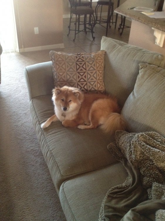 Here's a few pictures of my dog, lexi, she's a 3 year old Shiba Inu. Being lazy as usual Go Cats! Taking up all the couch Lexi probably doing what she does best, begging for food