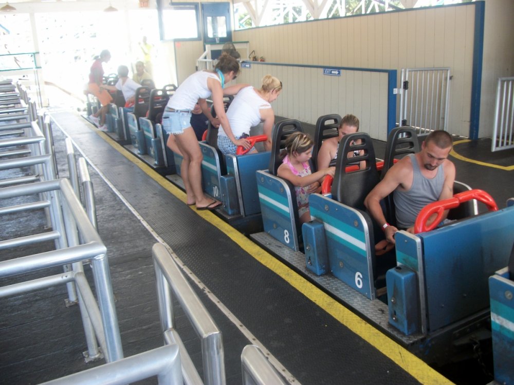 ^I heard one day it got stuck at the top of the lift and they had to evac. Yikes! I got my DDD credit during a special event when Piedmont Hospitals bought out the park one night for their employees back in 2011. The line was long but it was constantly moving so it only took an hour to get on. I definitely under estimated DDD. I didn't expect it to be as good as it was. It craps all over Goliath IMO and its so smooth. They could easily increase the Riders per hour rate if they utilized their entire station. Currently when a train returns to the station it stacks behind the train being loaded BUT its actually inside the station. They could easily use that area to unload a train while the one in front of it is loading, that way when the train is moved up it would be ready to load waiting guests immediately. I think that would also bring down wait times.