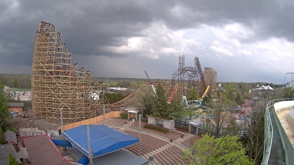 Unless most of that work has been completed already and we are just waiting on the track, the chain lift, and the electrical on that unfinished lift structure. Popping the track into place is the easiest and quickest process in this construction site. Its all lined up ready to go and they can install several hundred feet of track a day. Getting everything else ready is what takes longer. Theyve already done work on the break run, the station, the transfer track, and they can load trains into the station whenever. Six flags Great America likes to pour cement for queue lines and finish landscaping the day before. I grew up in gurnee since 2000 and I remember being at v2's opening, superman's, and hurricane harbor's and it is always the case.