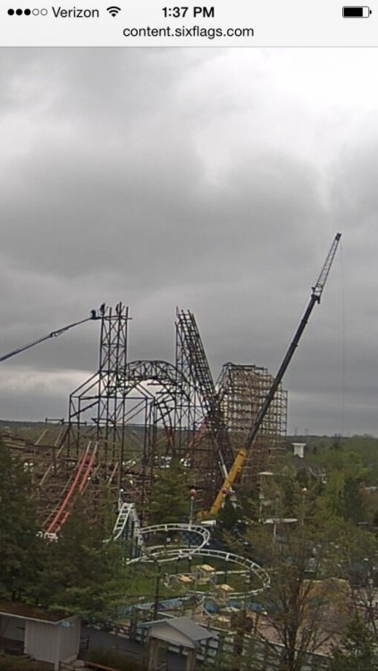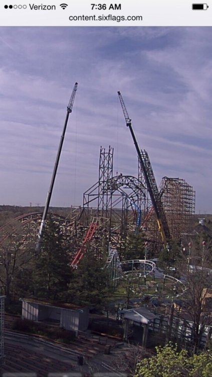 Shocking update, Goliath fans!! It is 7:30 am on SUNDAY, and not just any Sunday, but MOTHER'S DAY, and the construction crew is hard at work right now to keep this coaster on schedule!!! Perhaps they made the call to get work done this morning, goven that tomorrow there might be thunderstorms. Thank you RMC and Great America! Any doubt about opening or their seriousness about this may 29th media day date can be squandered by this serious gesture to its dedication. Share your gratitude for their Sunday and Holiday sacrifice here on the forum!