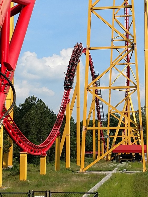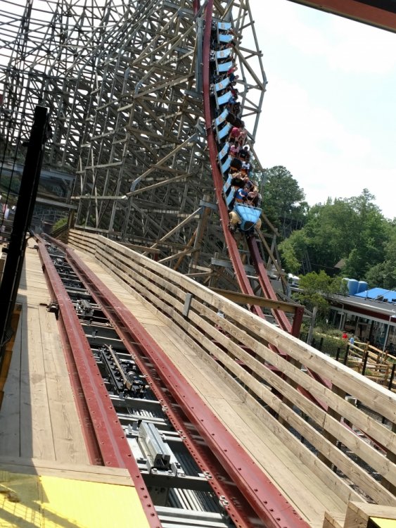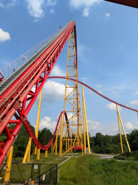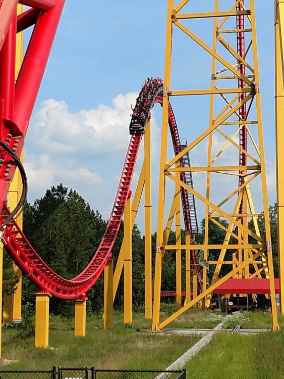 Hey I'm actually staying on top of my trip reports.... At least for now. Kings Dominion Day 1: Driving through Fredericksburg on I95, there was a ton of traffic, as per usual. The area felt crowded. That, and it was a Saturday in the summer made it seem obvious that Kings Dominion would be packed, so we didn't expect much. Getting off the highway we quietly prepared ourselves to lay eyes on a completely full parking lot.... But... We didn't. The parking lot was maybe a quarter of the way full. I didn't believe it. I thought there had to be more parking somewhere that we weren't seeing or like 72827 busses of tourists and school groups and the like hiding. But there wasn't. The park was miraculously empty, and many of those who were there found themselves in the waterpark on this 90+ degree day. So off we went to Twisted Timbers trying to make sure we didn't end up missing out on rides on it like we did back in April. We got to the ride, and still not believing that the park was actually that empty, expected an hour wait in front of us. Not so. The line was only in the station and within 15 minutes we were sitting in the front seat. After an amazing ride back in line we went, except this time we sat in the back row. Another amazing ride. Having ridden Steel Vengeance over 20 times, I can confidently say that this ride is obviously no Steel Vengeance, but that being said it's still an absolutely brilliant ride. It's almost like a mini steel vengeance with some of the same elements but smaller and not as intense​. After this we decided it was time to make a lap around the park. Not encountering any lines at all, we got on just about everything. Very productive day at Kings Dominion. One down side was that Volcano was down the whole day but that was to be expected. With the other three amazing coasters this park has, it wasn't a huge loss. Especially after riding it a few times back in April. Ride ops were above average. Friendly, courteous, and great at getting trains out quickly. Par for the course at Cedar Fair parks. Food can use some improvement, but the Mac and cheese place is still amazing. Really great amusement park food. Our day was cut a little short by a large thunderstorm, but that didn't put a damper on our day at all. Overall a great day to start a long trip. Busch Gardens tomorrow. Hopefully the weather cooperates. Scorecard: Twisted Timbers 2x Drop Tower 2x Grizzly 2x Racer75​ 3x Drop Tower 2x Apple Zapple 1x Windseeker 1x Flying Eagles 1x Antique Cars 1x Flying Ace 1x Anaconda 1x I305 2x Backlot 1x Boo Blasters 1x Dominator 1x Avalanche 1x Thanks for reading and here's some pictures... Hopefully. My kind of station You're welcome Bill. -