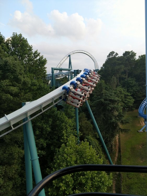 Busch Gardens time. After our surprise visit in April in the rain/sleet/snow/I don't know but this really sucks, we were really ready to return to Busch Gardens and the beautiful weather made it a wonderful day. The weather was in the low 90s all day and it didn't rain until right before the park closed. It wasn't crowded at all and we got plenty of rides in. The park itself is obviously above and beyond beautiful. I can't even imagine the time and effort Busch Gardens puts in to make the park look as amazing as it does. Invadr is really a fun ride. Yes it is clearly toned down from other GCIs, it still has a wild and out of control feeling that I've come to love from riding GCI coasters. I still don't get Alpengeist. I really want to love the ride, and my usual taste in coasters would make one think that I would love Alpengeist. But I just don't. I don't know why but it just doesn't do it for me. Oh well. Griffon and Apollo's Chariot are still amazing. The more I ride Griffon the more I like it better than Valravn. Verbolten, Nessie, and Tempesto were all fun as usual, but I still don't understand the "comfort" collar on Tempesto but whatever. Another huge standout at Busch Gardens is the food. It's just absolutely amazing and slightly cheaper than a lot of amusement park food. The more I visit this park, the more I realize how much I love it and definitely think it's one of my favorite couple amusement parks. It's always a good day at Busch Gardens. Light crowds made for a ton of rides. Here's the scorecard: Apollo's Chariot 12x Griffon 3x Alpengeist 1x Le Scoot 1x Tempesto 1x Nessie 2x Verbolten 1x Battle for Eire 2x Invadr 6x Skyride from France to Germany 1x Escape from Pompeii 2x That's all from Busch Gardens. Tomorrow is Kings Dominion in the morning then a drive to Carowinds for some evening rides on Fury! Here's some pictures, don't be afraid to leave some comments! 2 months ago I took this same picture and it was 40 degrees Happy 40th Nessie! Don't get it but it's still a beautiful ride -