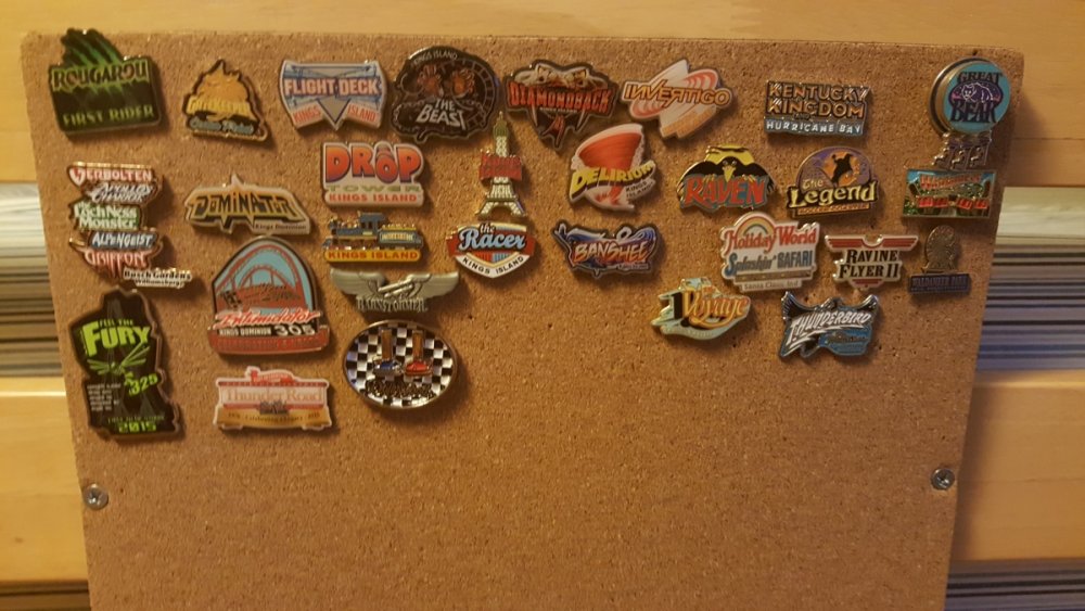 Does anybody on here have a collection of pins like the modest one I have below? If so post a pic a maybe give a quick run down of what you have! My collection of 29 pins... hopefully that'll grow this summer! Lol